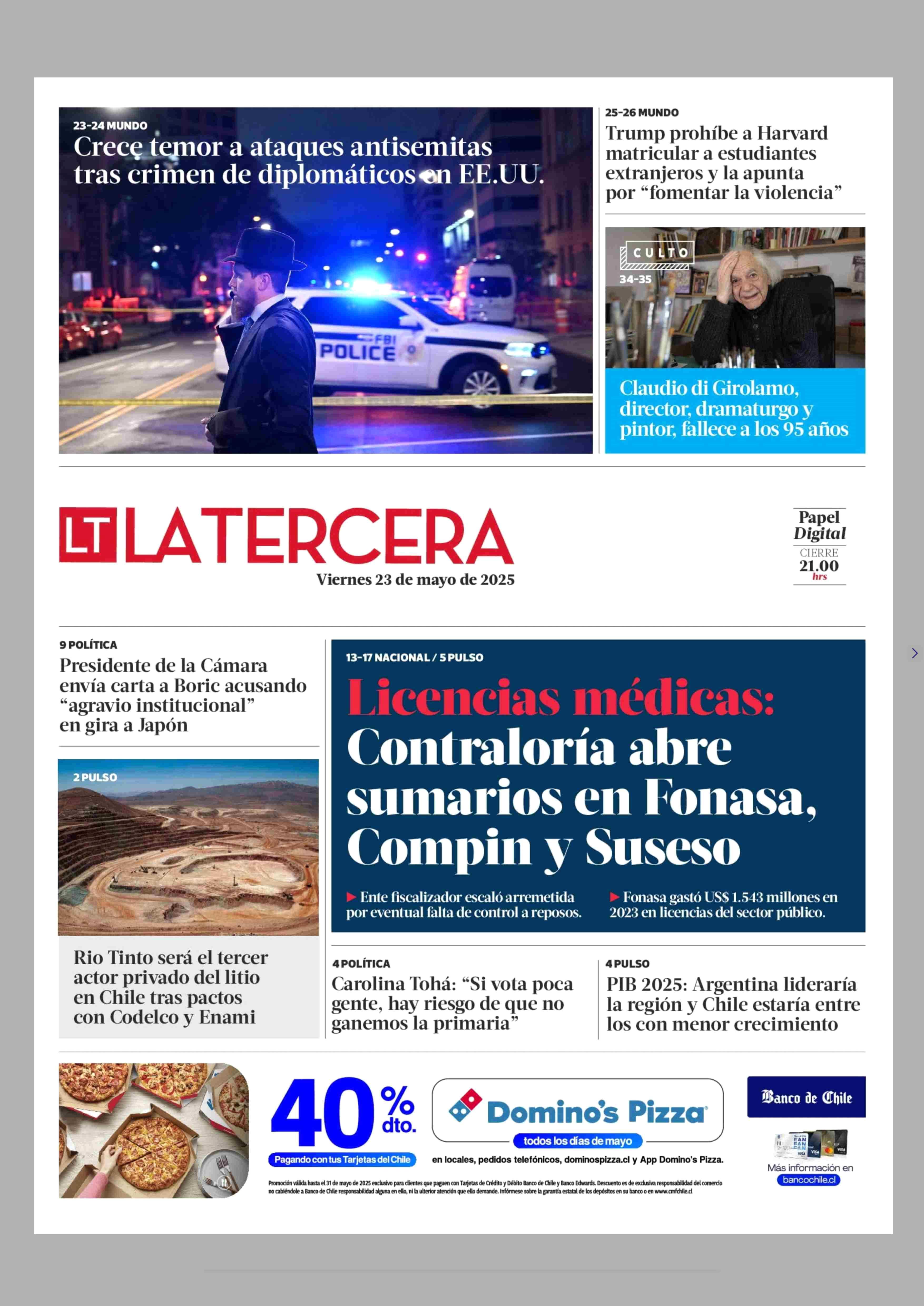 | Fecha: | 23-05-2025 | Sector: | Portada | Región: | Región Metropolitana de Santiago |