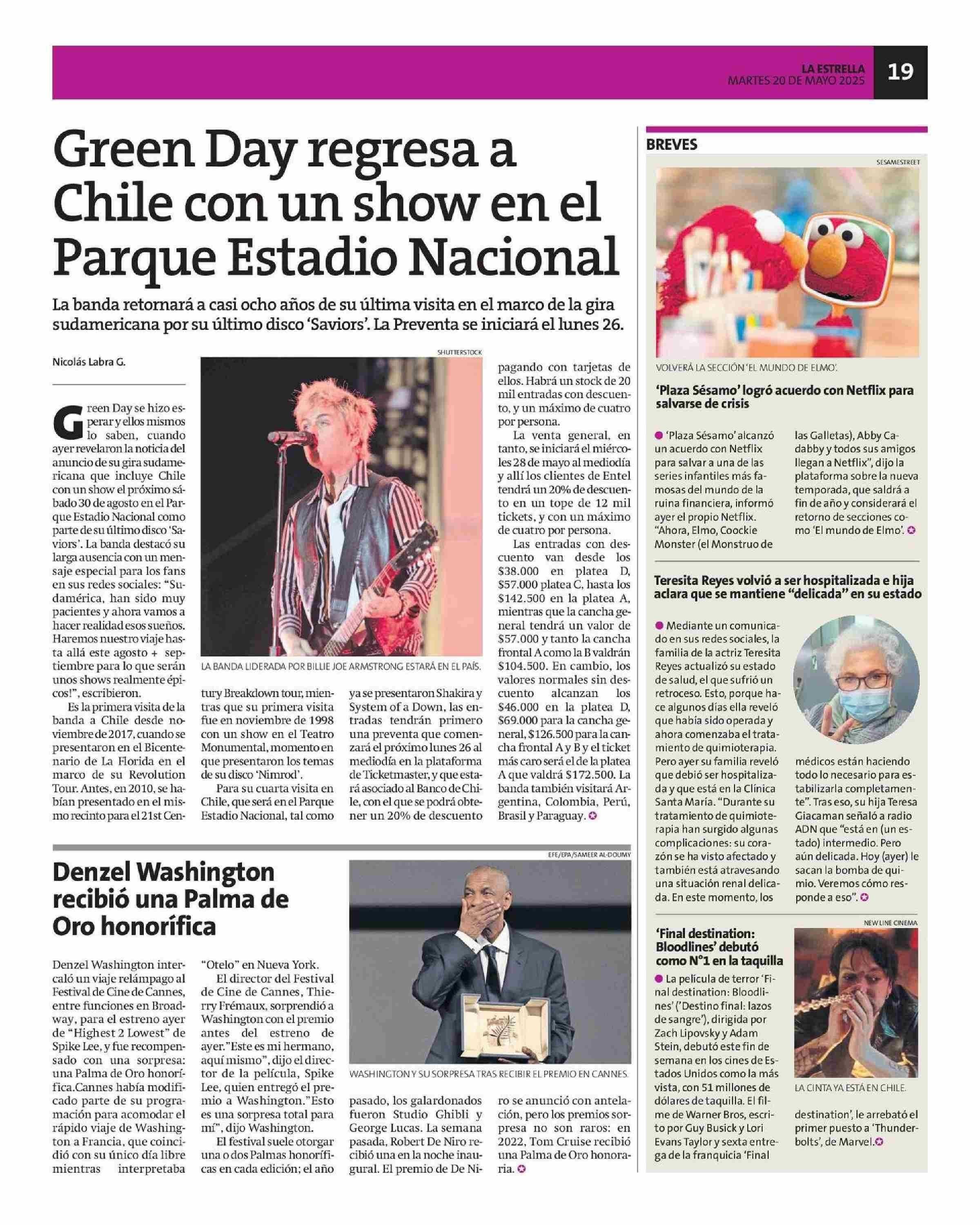 Teresita Reyes volvió a ser hospitalizada e hija aclara que se mantiene “delicada” en su estado 20-05-2025 La Estrella de Antofagasta |