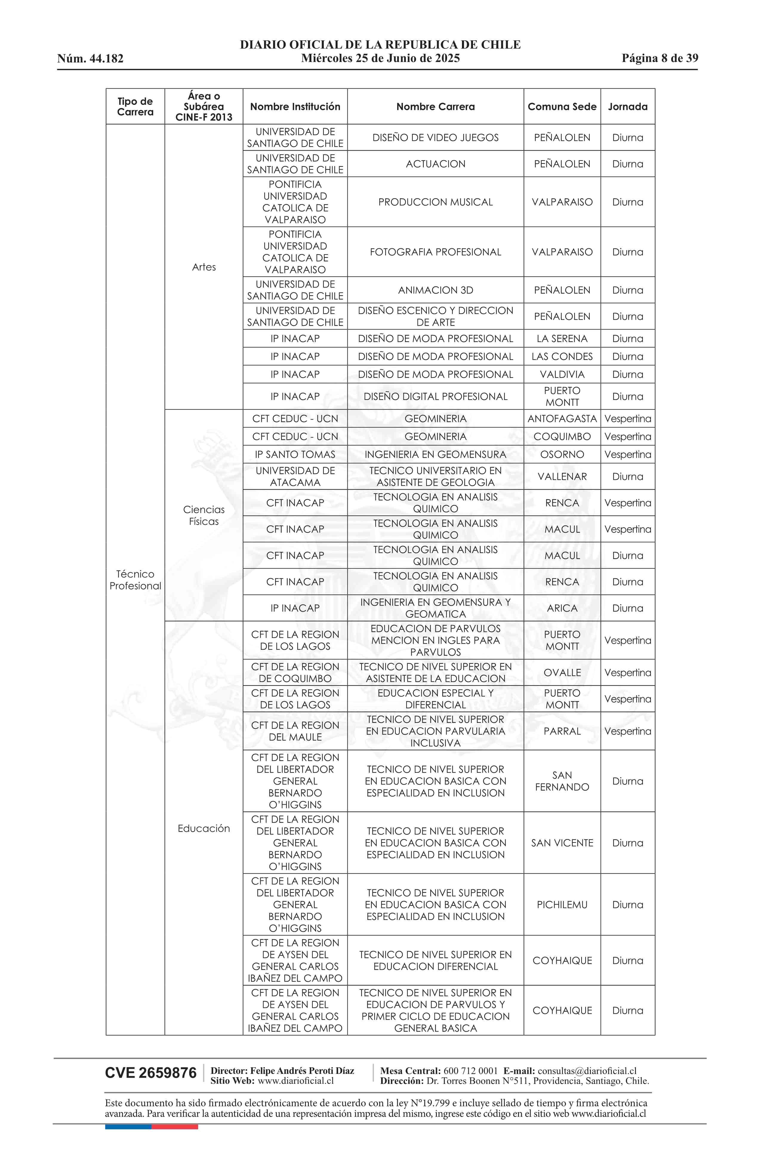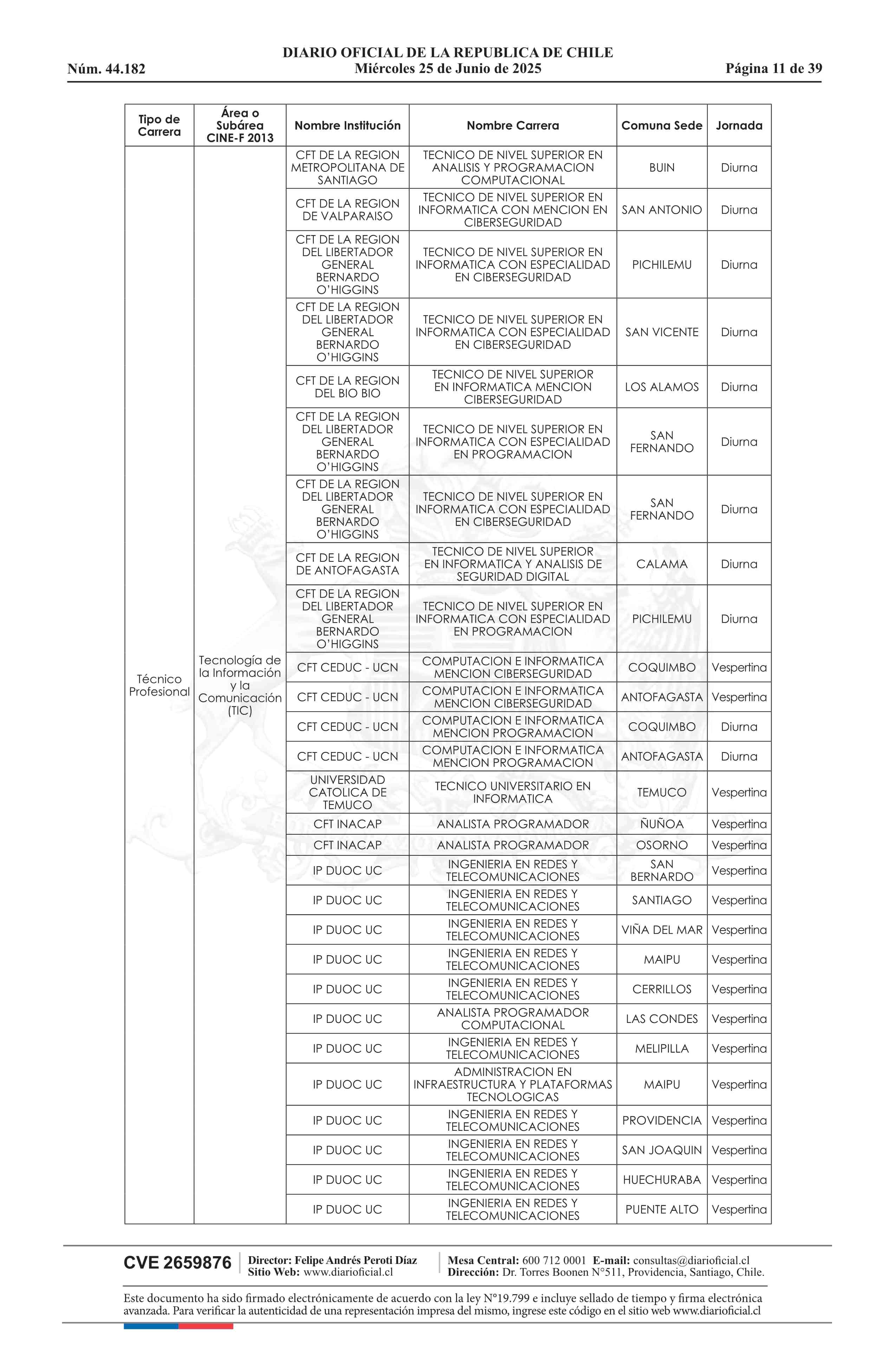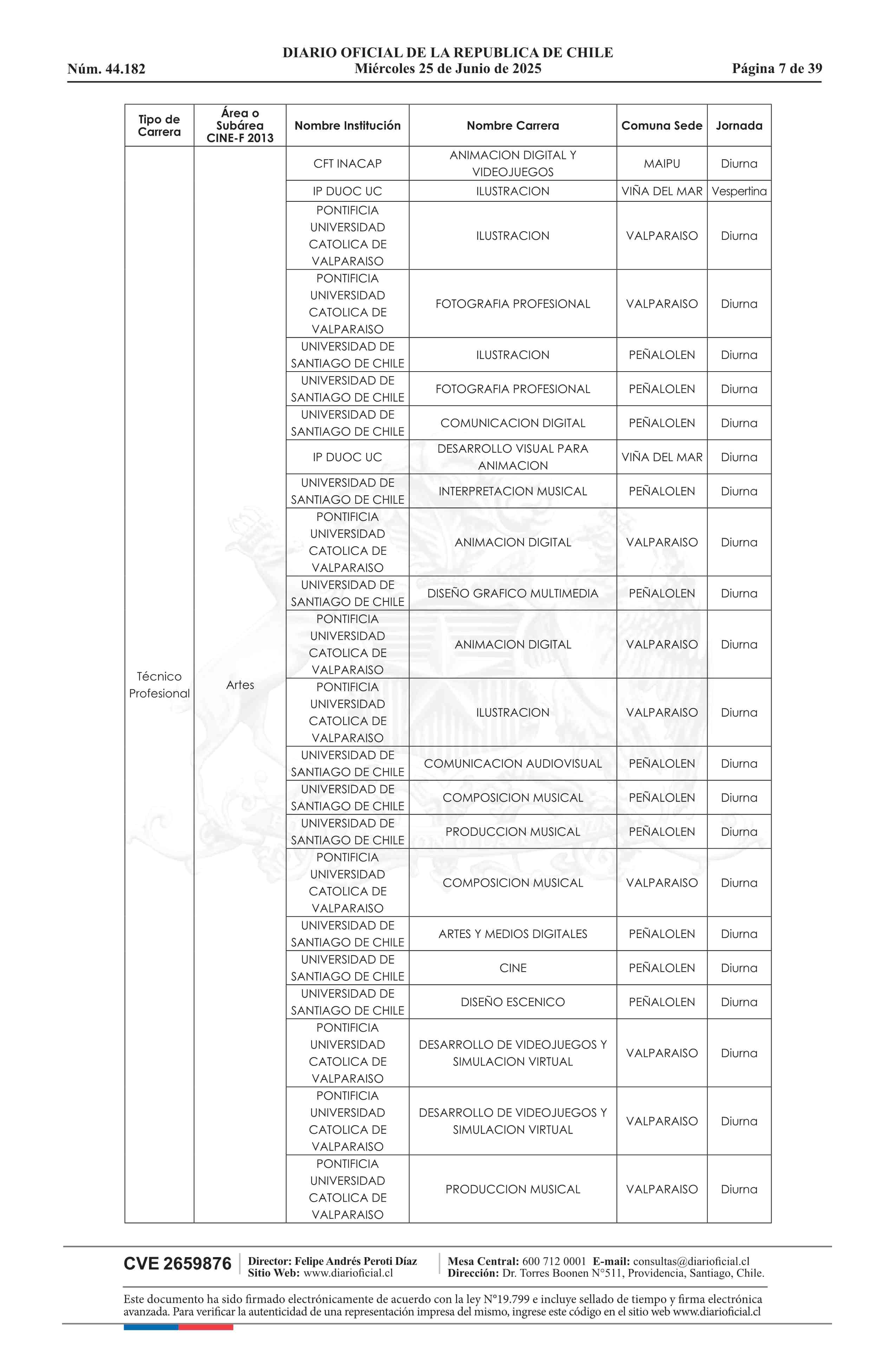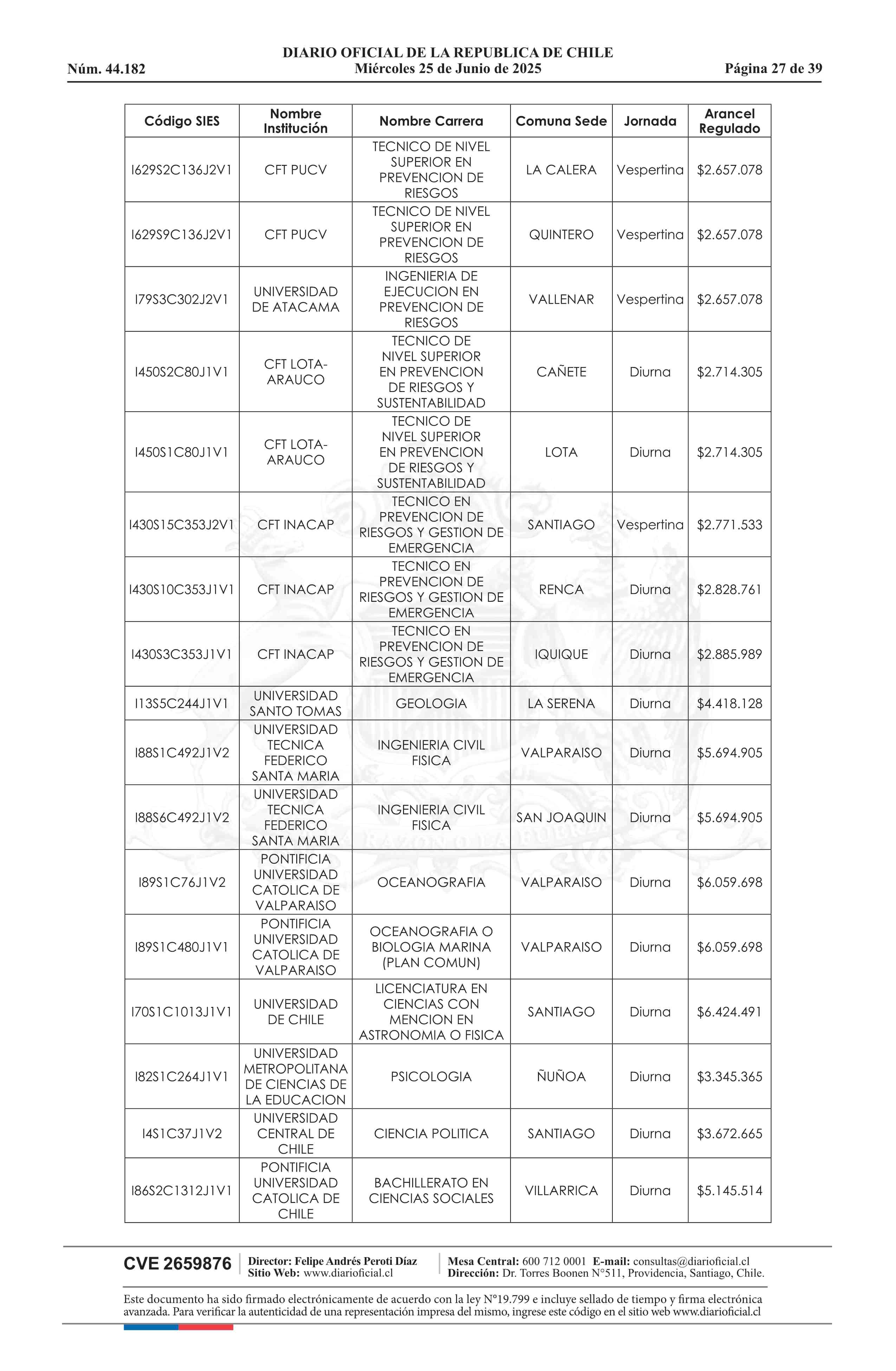 Título: Resolución exenta número 7.182, de 2025.- Complementa las resoluciones exentas N°s. 2.483, de 2023, y sus modificaciones; 3.882, de 2024, y sus modificaciones, y 8.088, de 2024, y sus modificaciones, incorporando los valores regulados de las carreras y programas de estudio que comienzan a impartirse