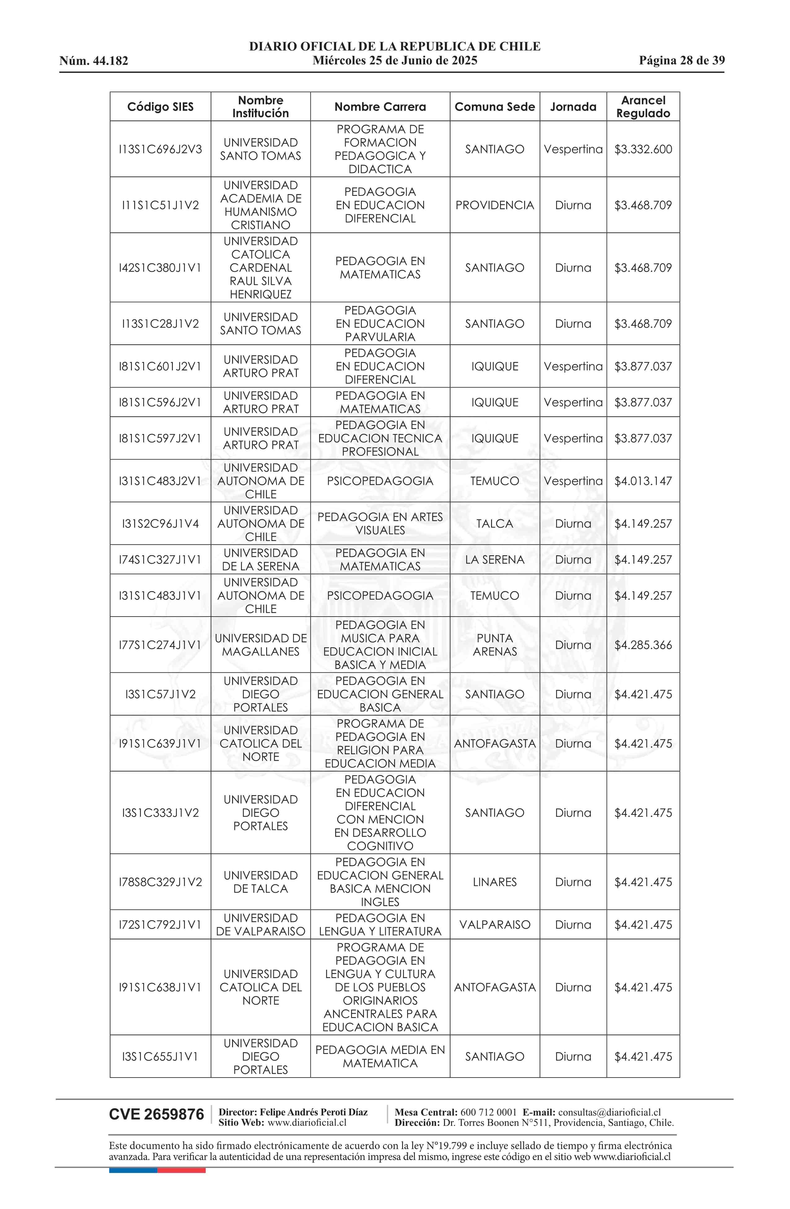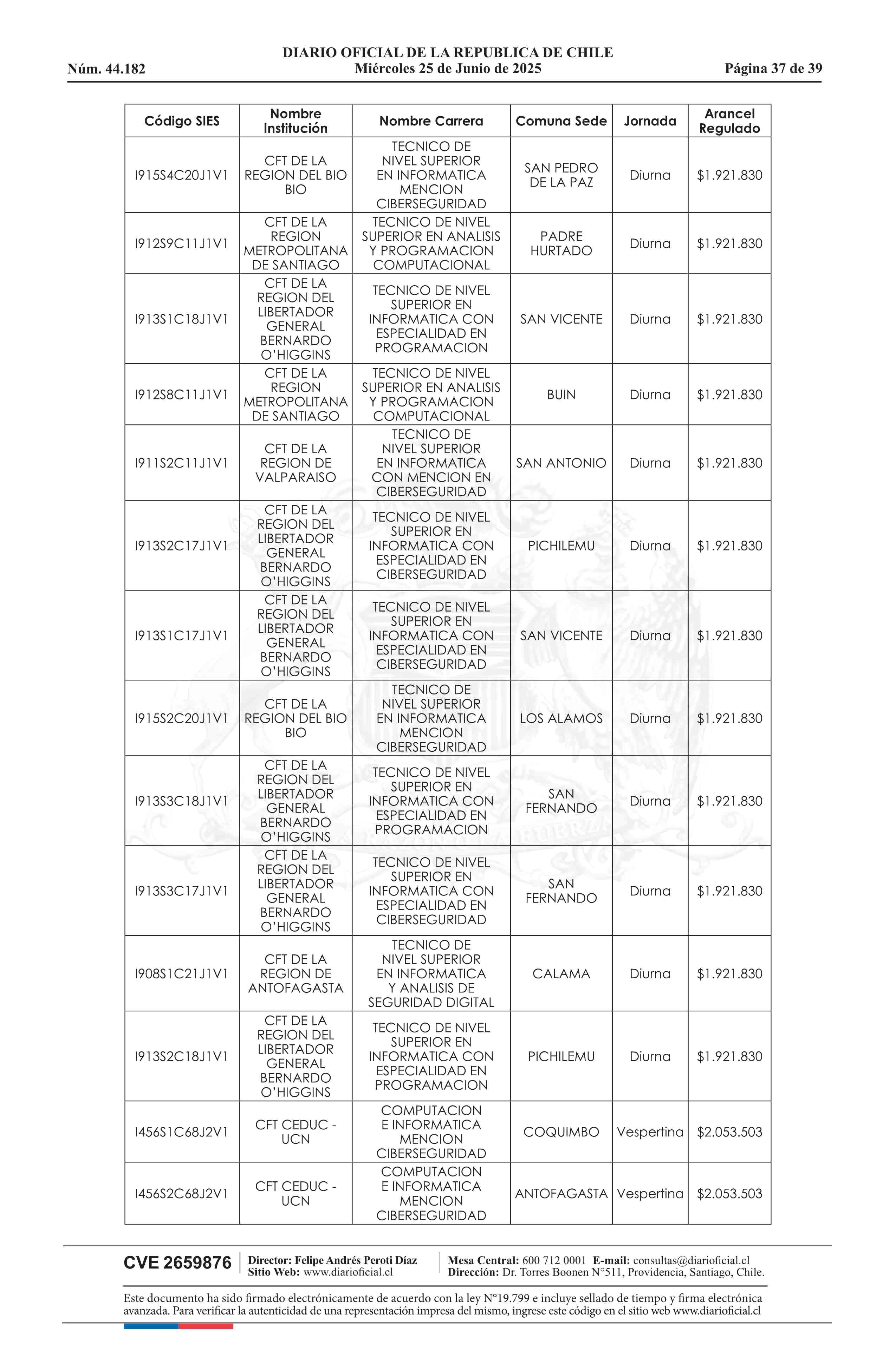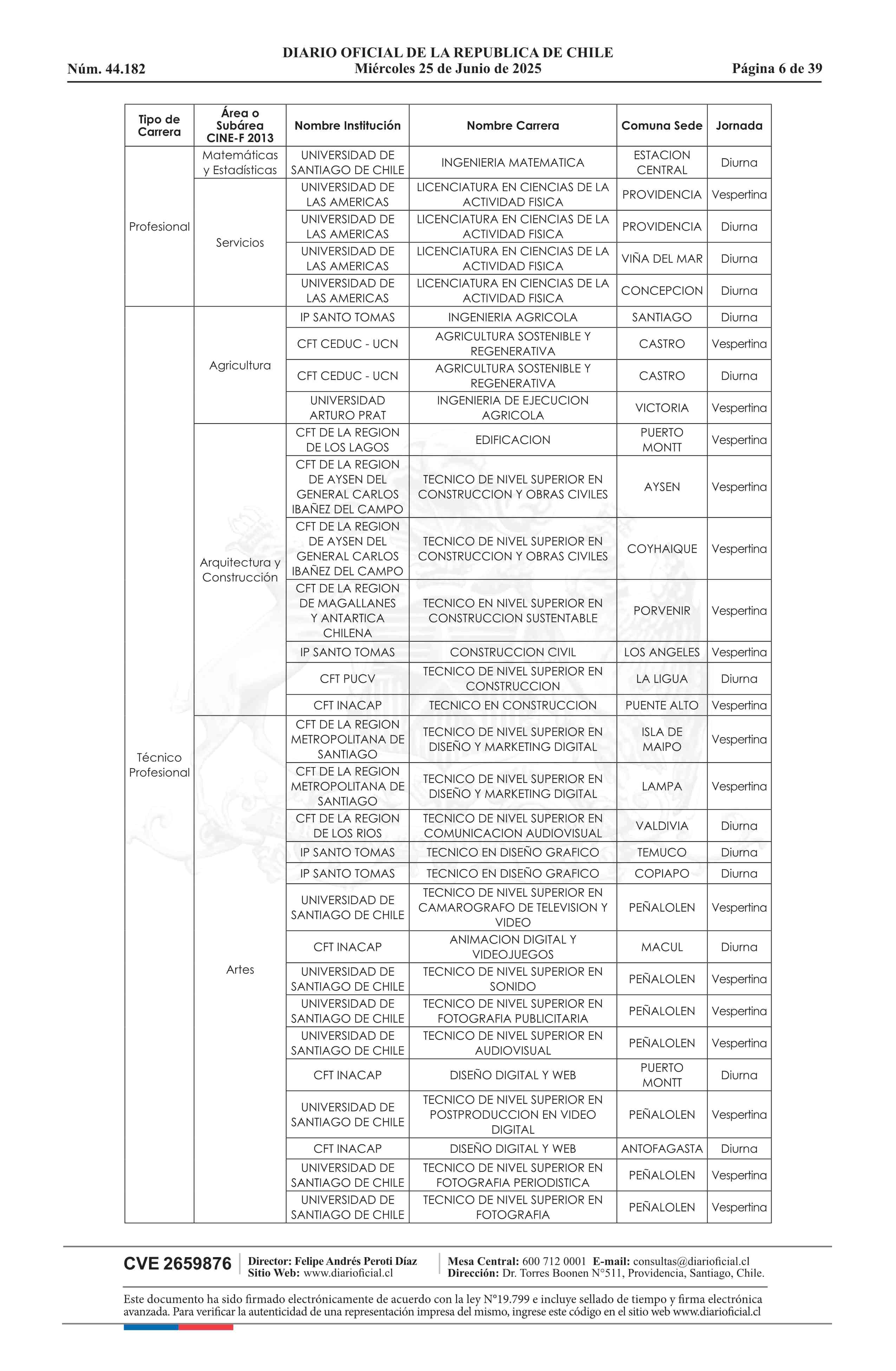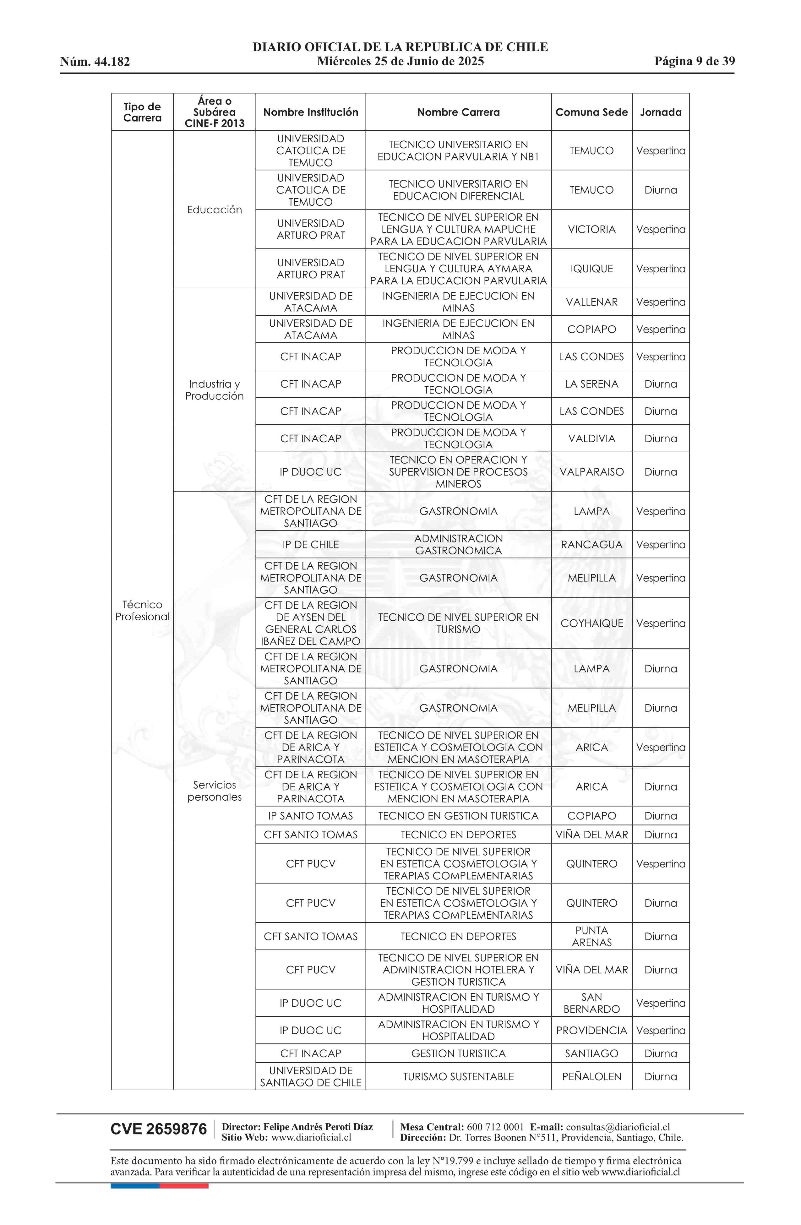 Título: Resolución exenta número 7.182, de 2025.- Complementa las resoluciones exentas N°s. 2.483, de 2023, y sus modificaciones; 3.882, de 2024, y sus modificaciones, y 8.088, de 2024, y sus modificaciones, incorporando los valores regulados de las carreras y programas de estudio que comienzan a impartirse