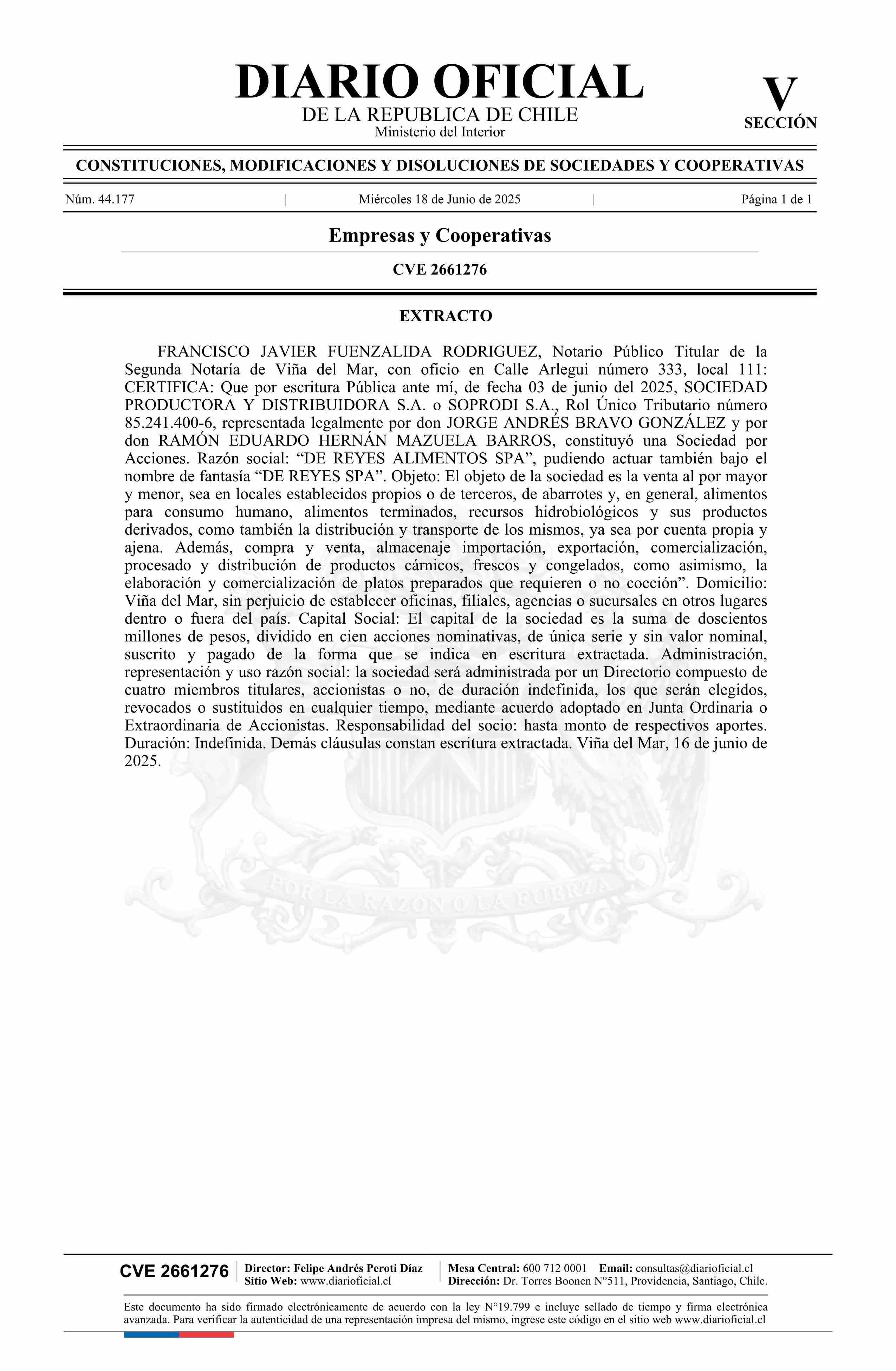 DE REYES ALIMENTOS SpA 18-06-2025 Diario Oficial Edición Electrónica |