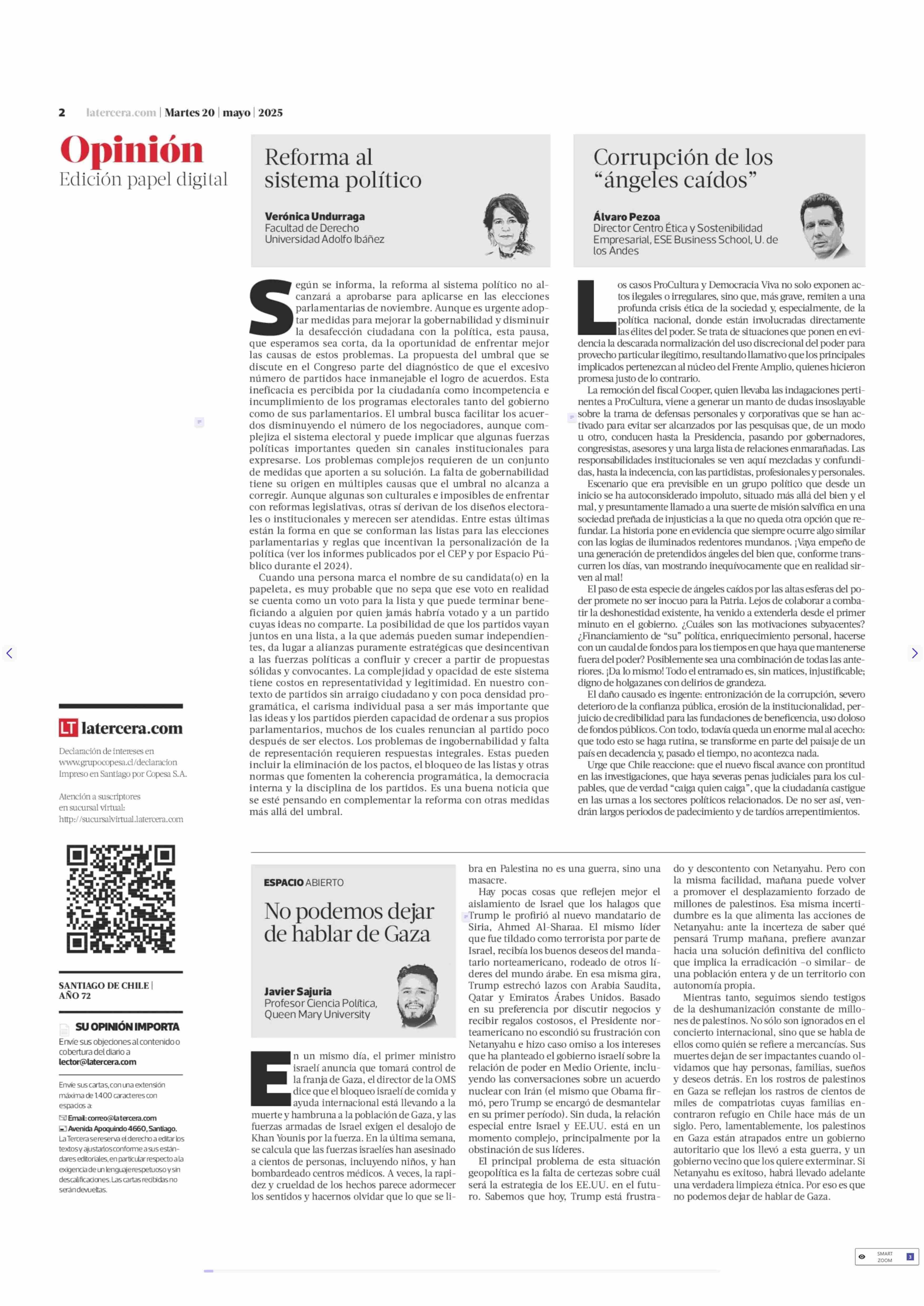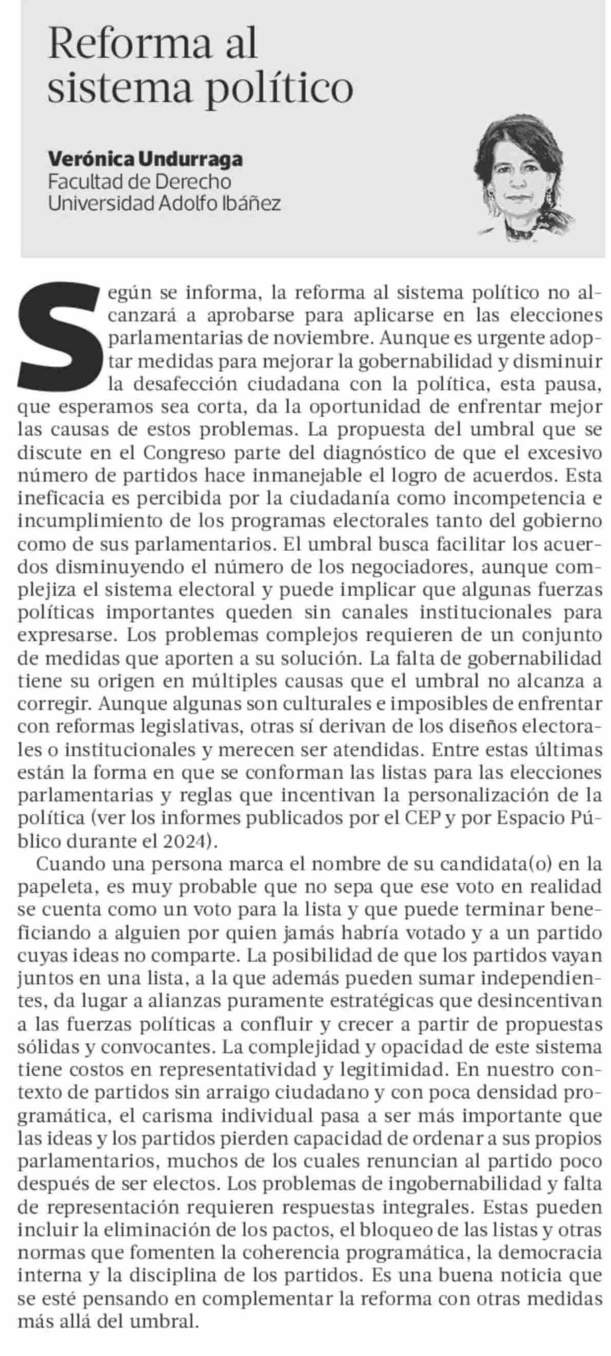 Columnas de Opinión: Reforma al sistema político 20-05-2025 La Tercera |