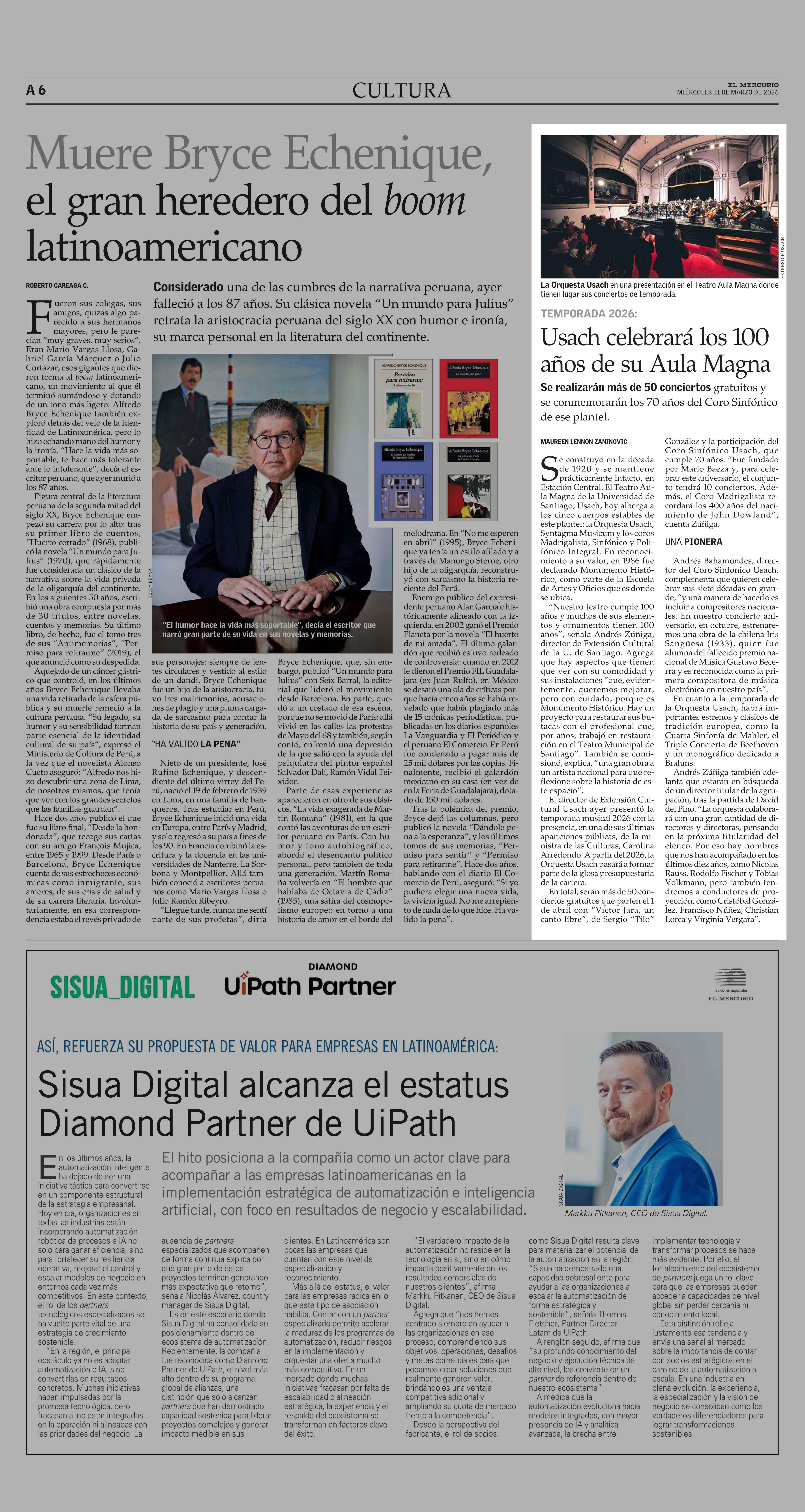 Usach celebrará los 100 años de su Aula Magna 11-03-2026 El Mercurio |