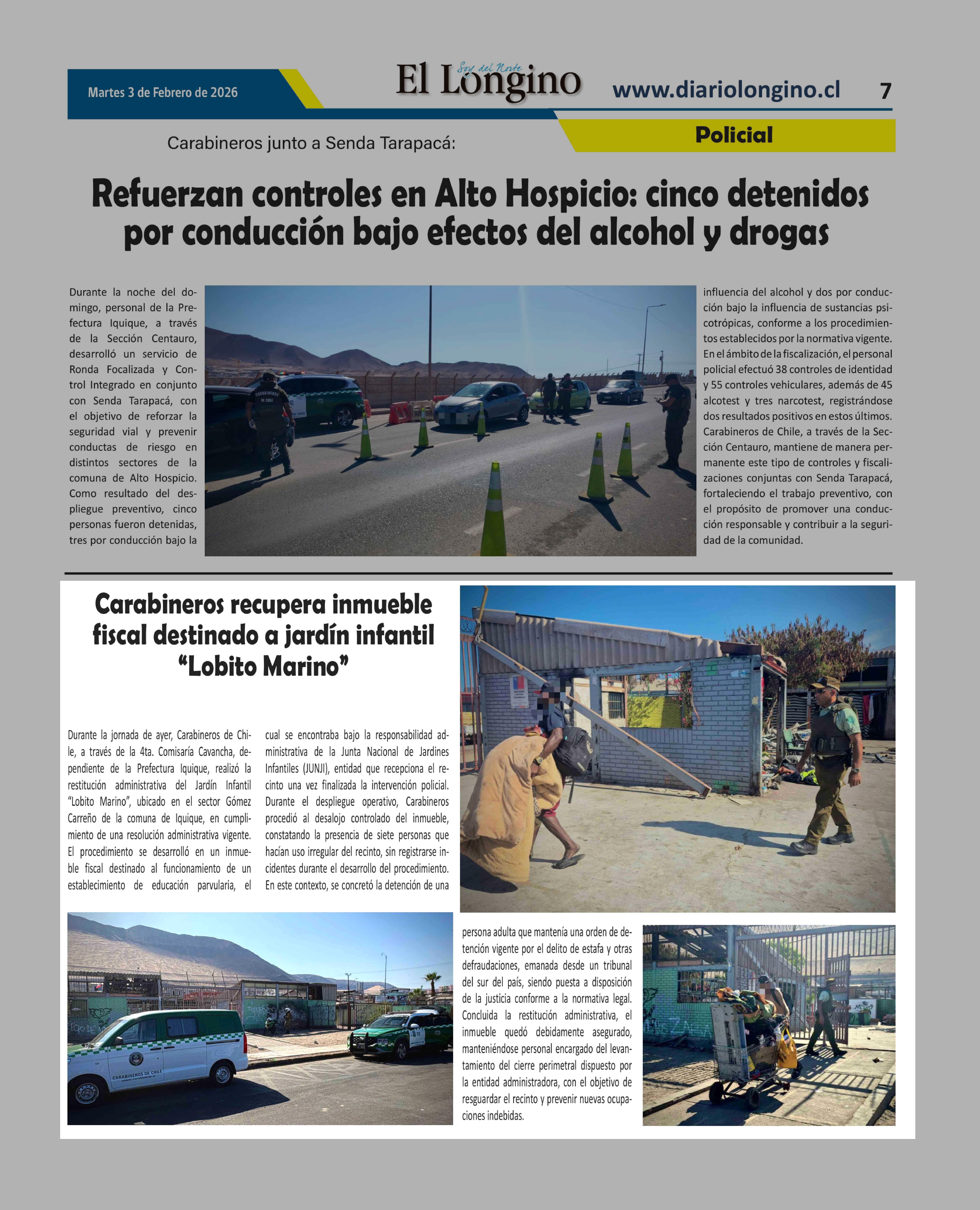 | Fecha: | 03-02-2026 | Sector: | Noticia general | Región: | Región de Tarapacá |