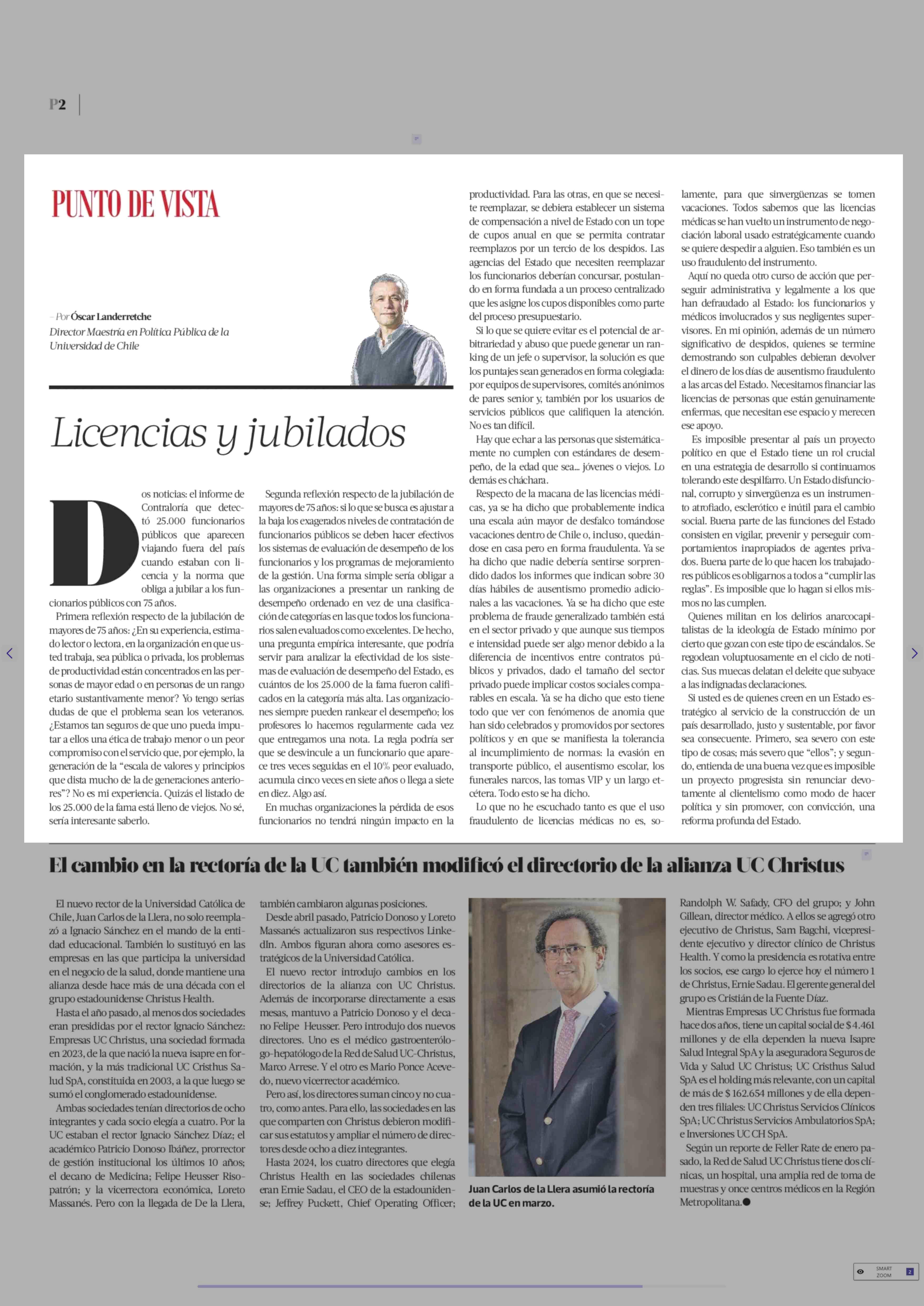 COLUMNAS DE OPINIÓN: Licencias y jubilados 25-05-2025 La Tercera |