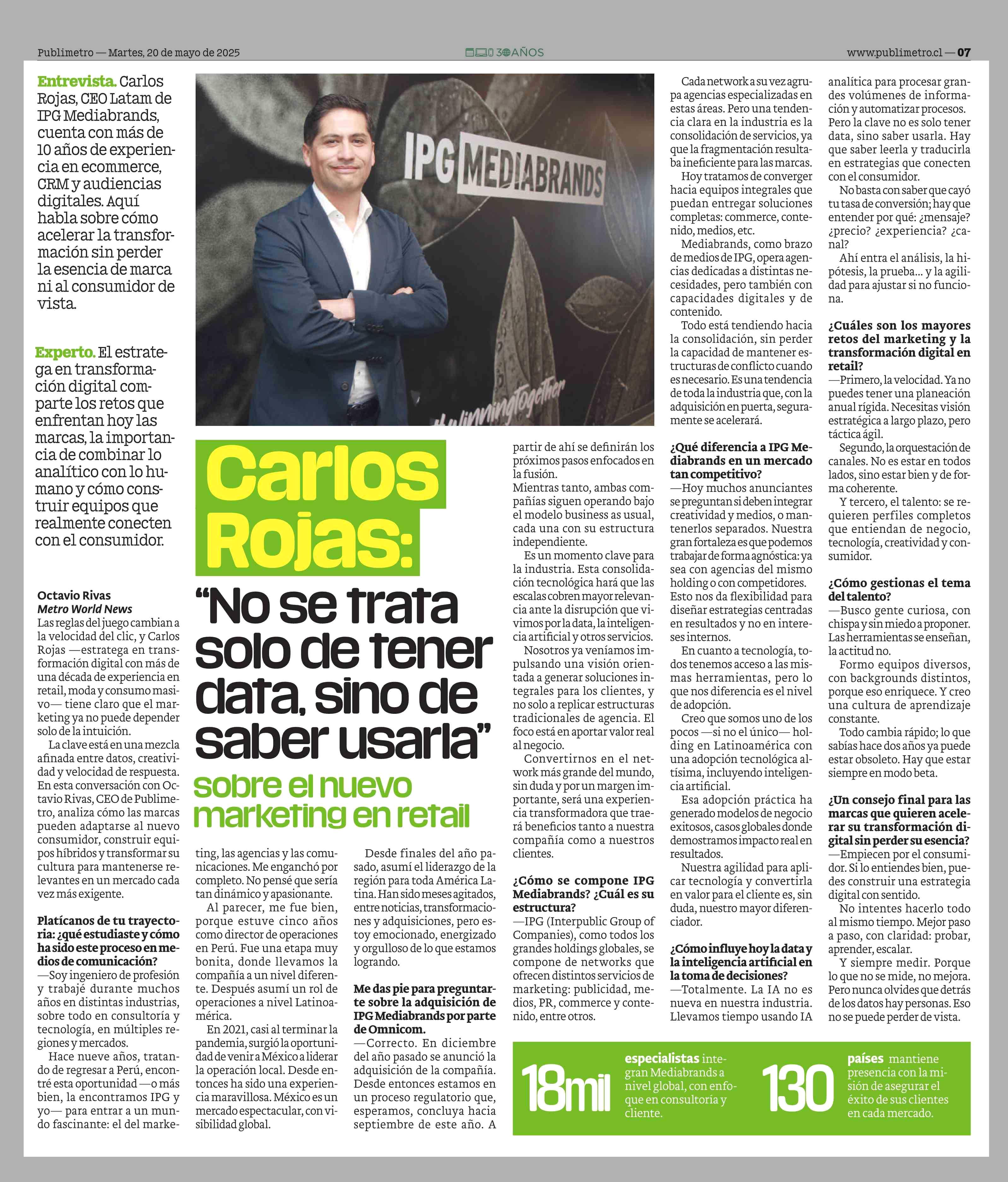 Carlos Rojas: saber usarla” data, sino de solo de tener “No se trata 20-05-2025 Publimetro |