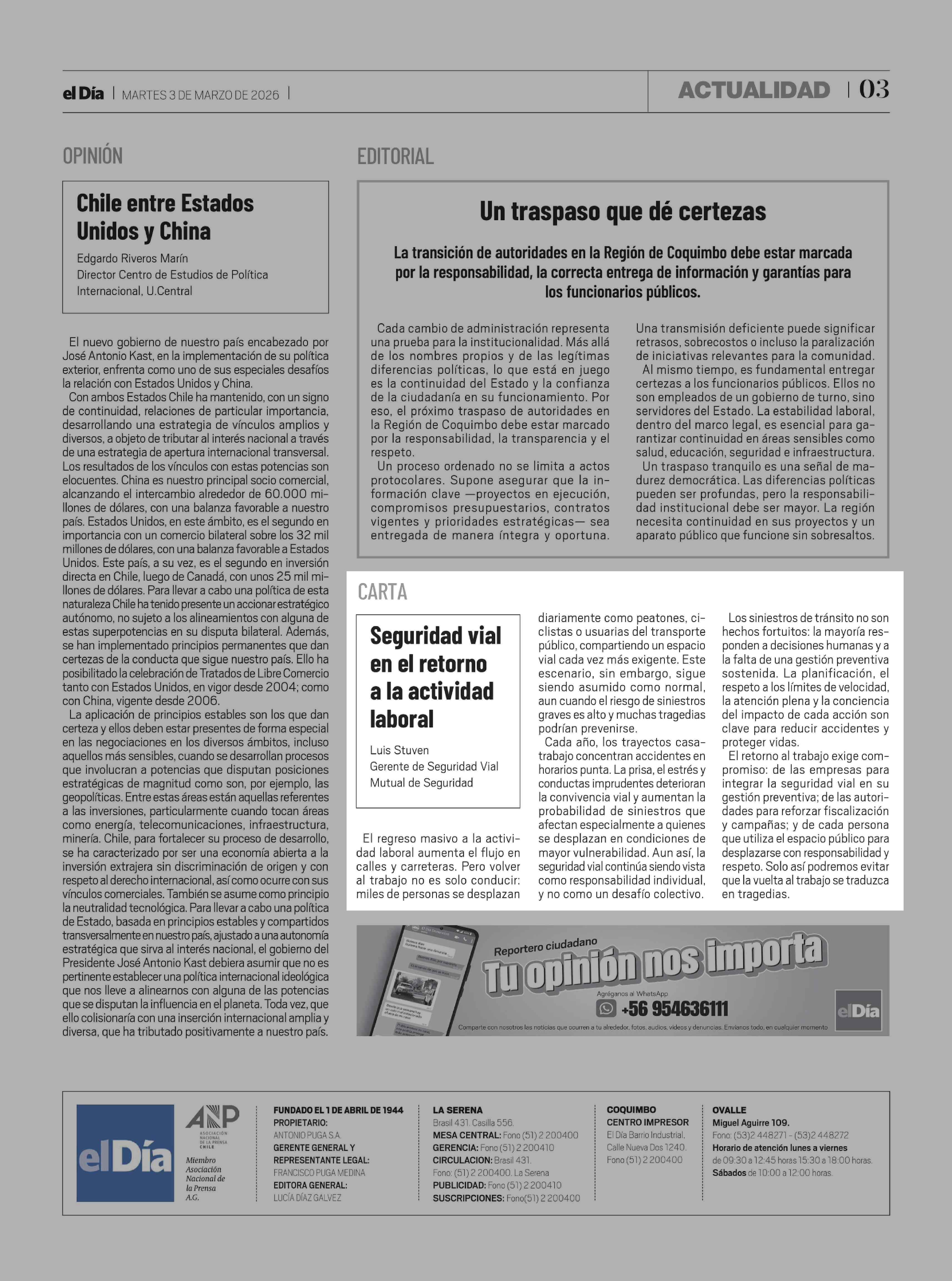 | Fecha: | 03-03-2026 | Sector: | Columnas de Opinión | Región: | Región de Coquimbo |