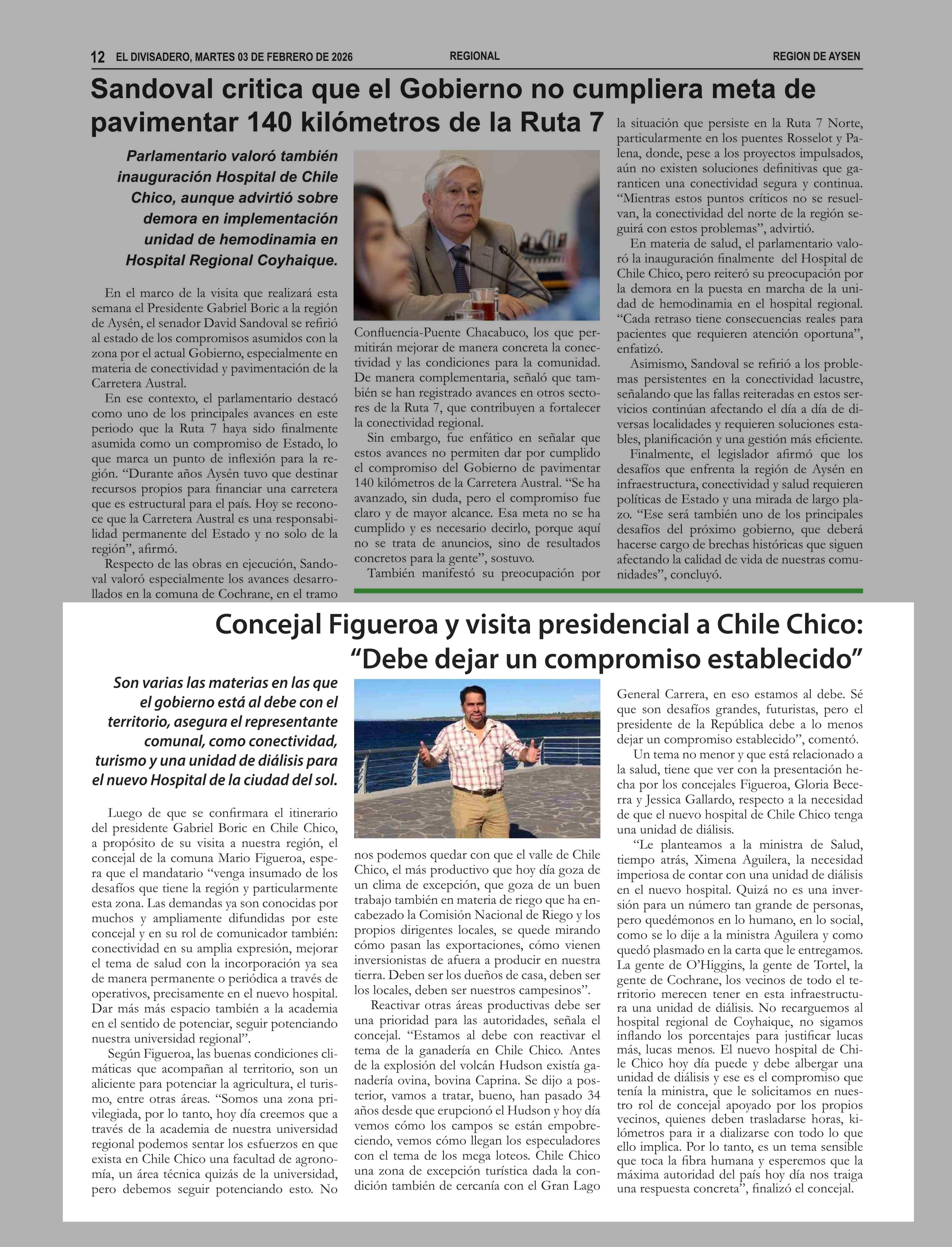Concejal Figueroa y visita presidencial a Chile Chico: “Debe dejar un compromiso establecido” 03-02-2026 El Divisadero |