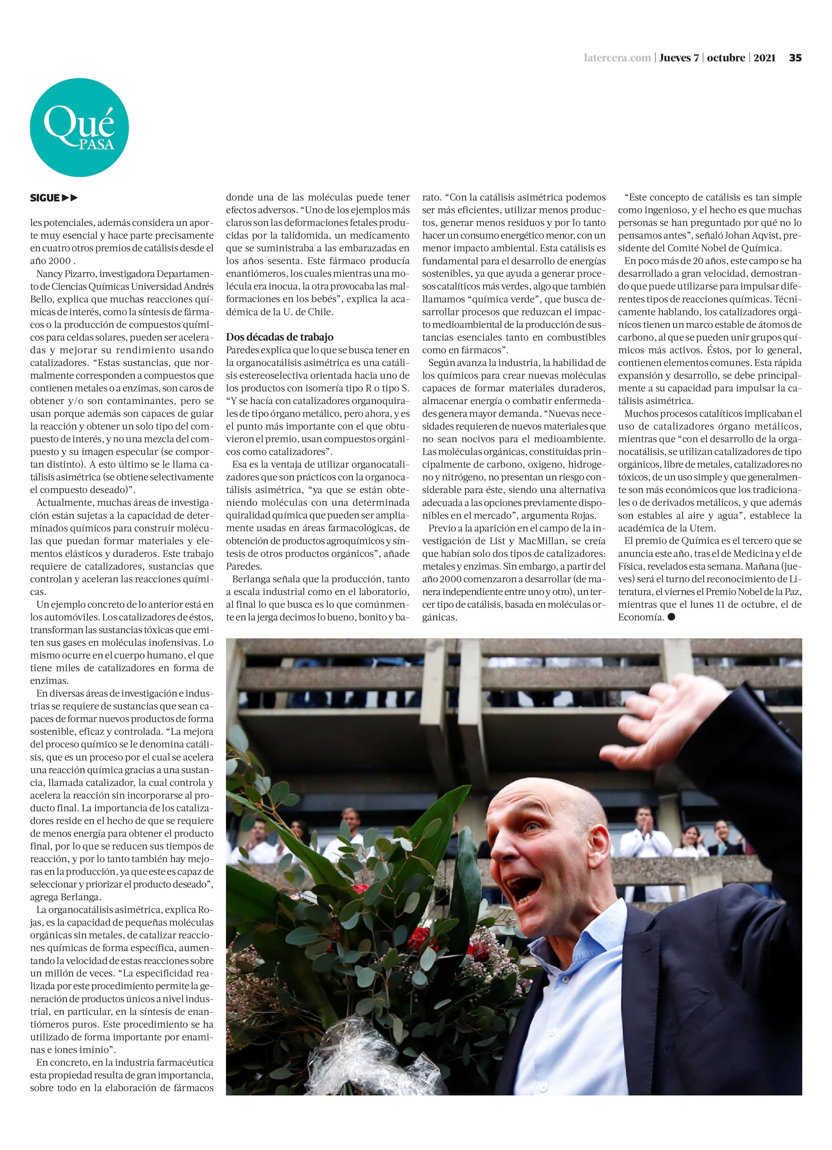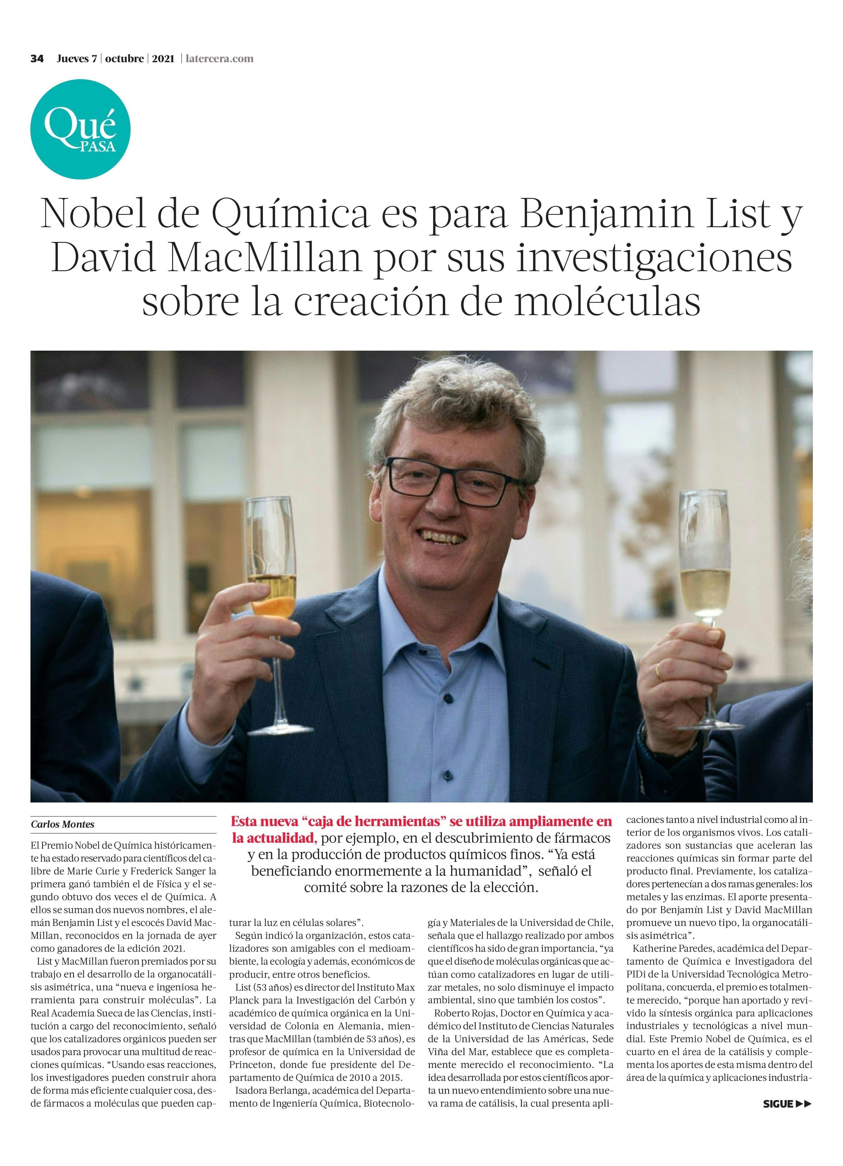 Nobel de Química es para Benjamin List y David MacMillan por sus investigaciones sobre la creación de moléculas 07-10-2021 La Tercera |