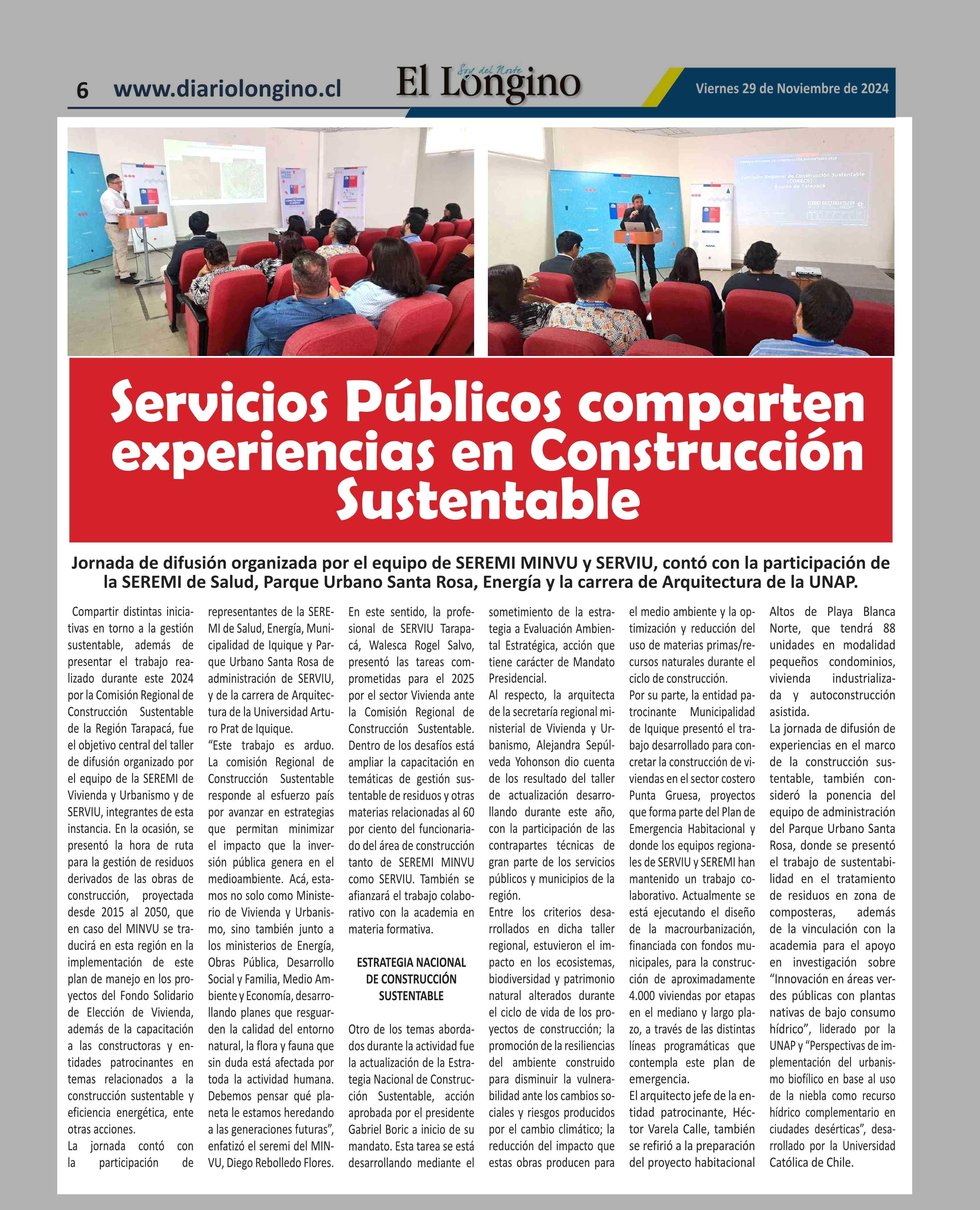 Servicios Públicos comparten experiencias en Construcción Sustentable 29-11-2024 El Longino |