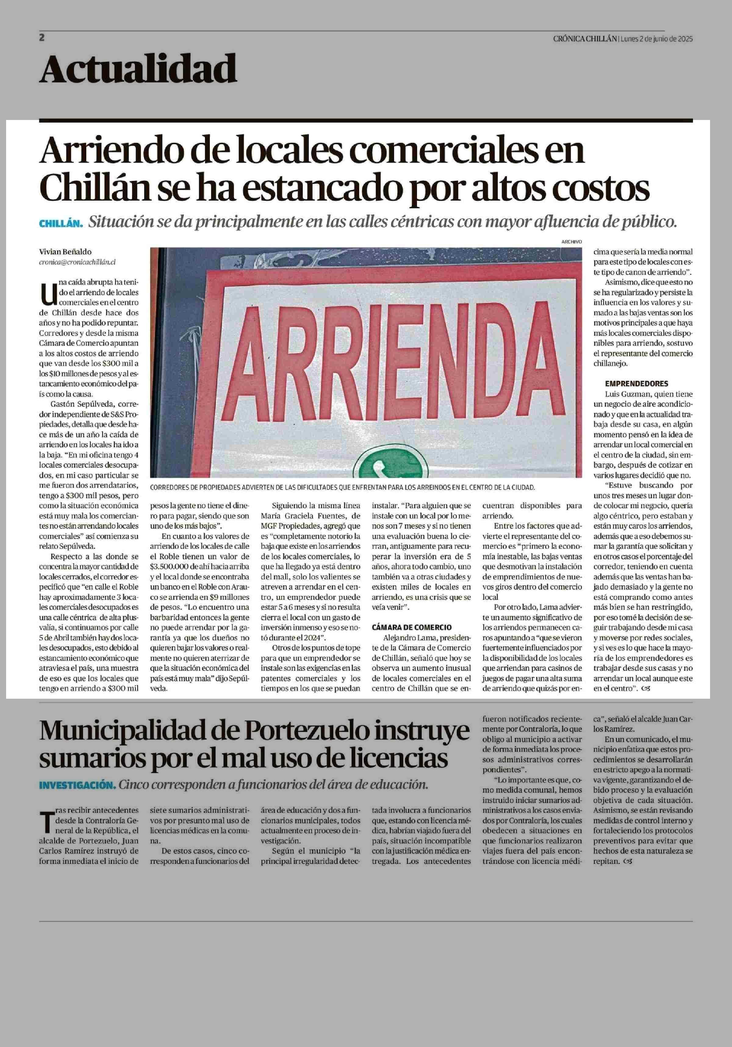 | Título: | Arriendo de locales comerciales en Chillán se ha estancado por altos costos |