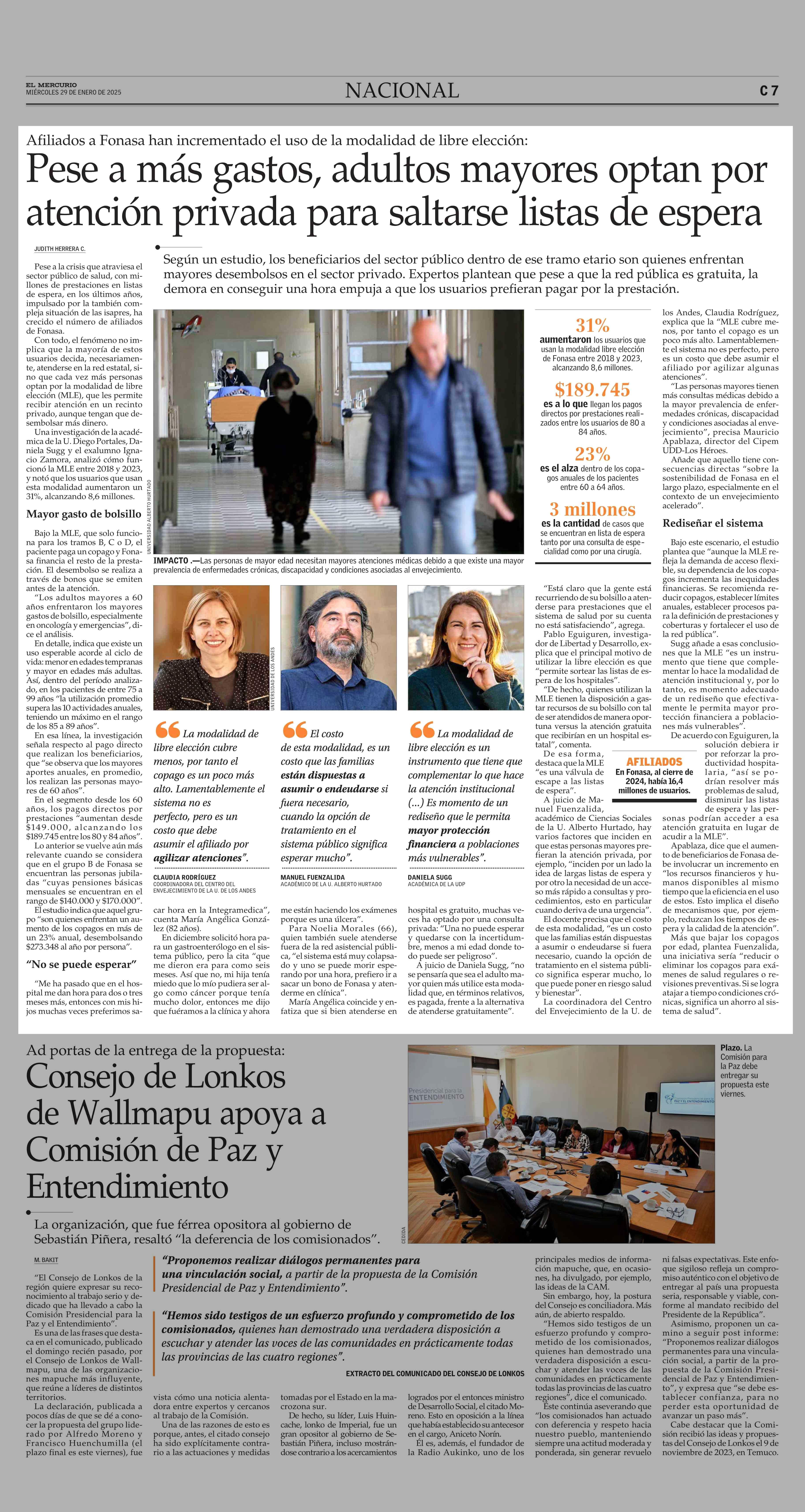Pese a más gastos, adultos mayores optan por atención privada para saltarse listas de espera 29-01-2025 El Mercurio |