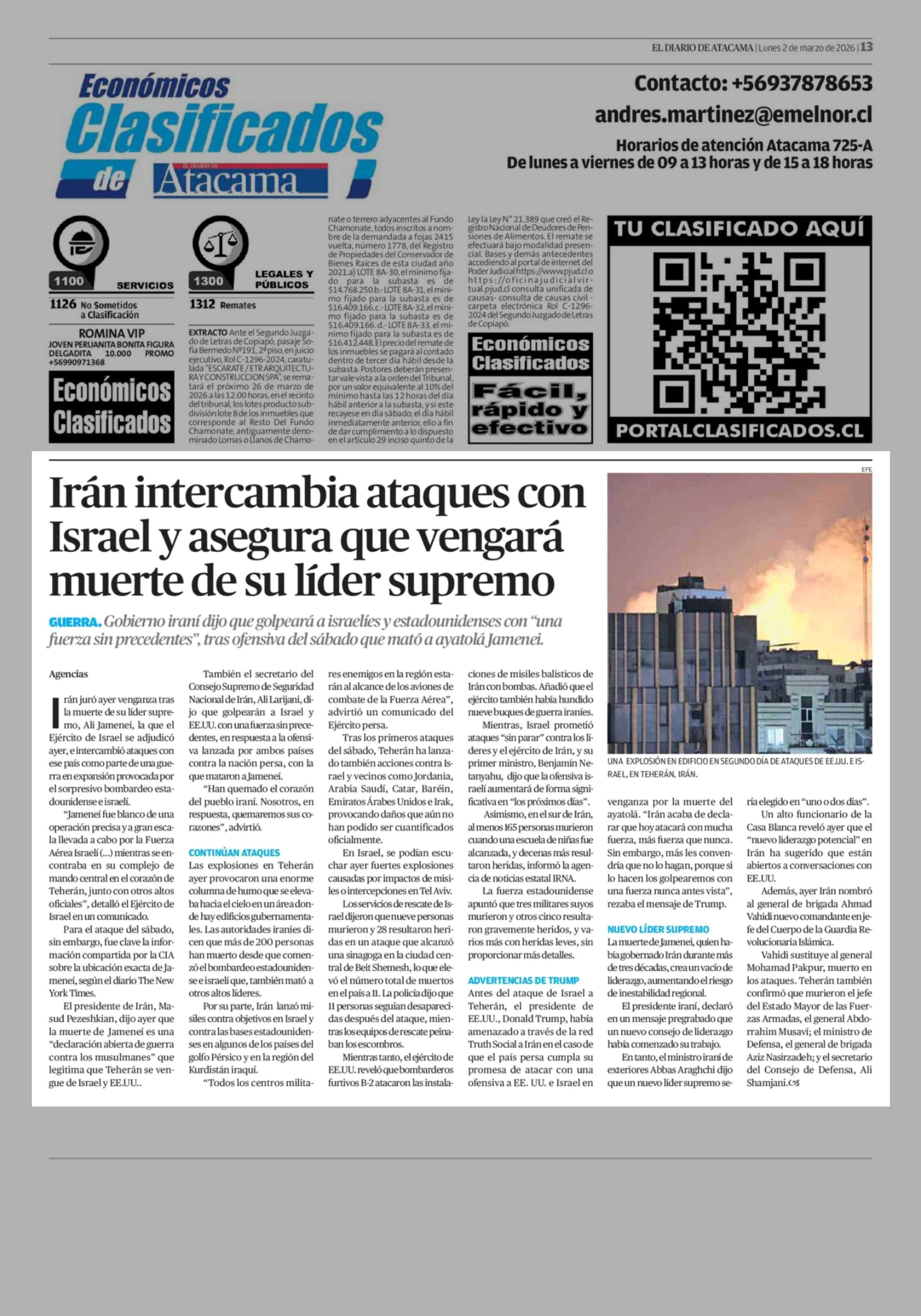 Fuente: El Diario de Atacama (El Diario de Atacama) Página(s): 13