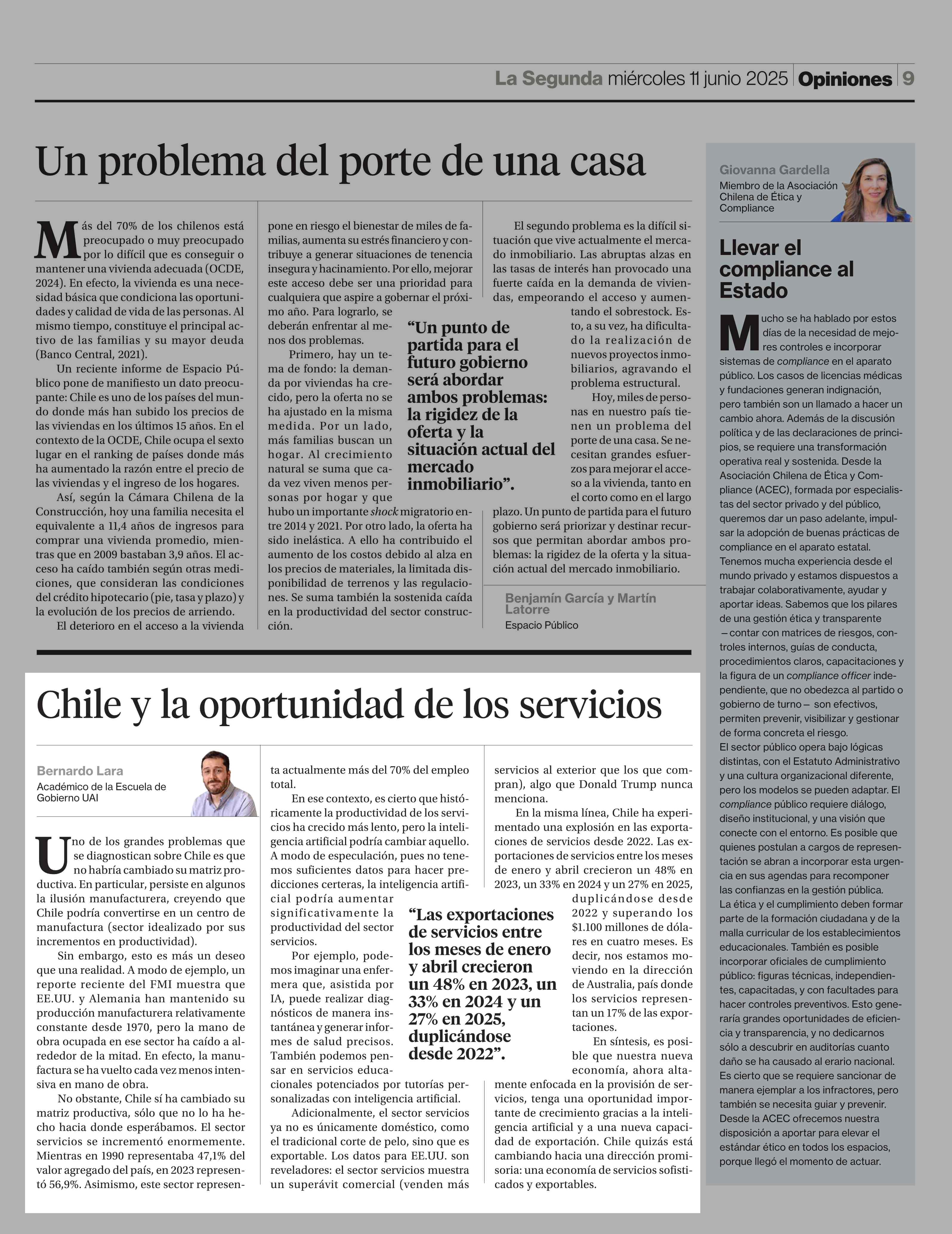 COLUMNAS DE OPINIÓN: Chile y la oportunidad de los servicios 11-06-2025 La Segunda |
