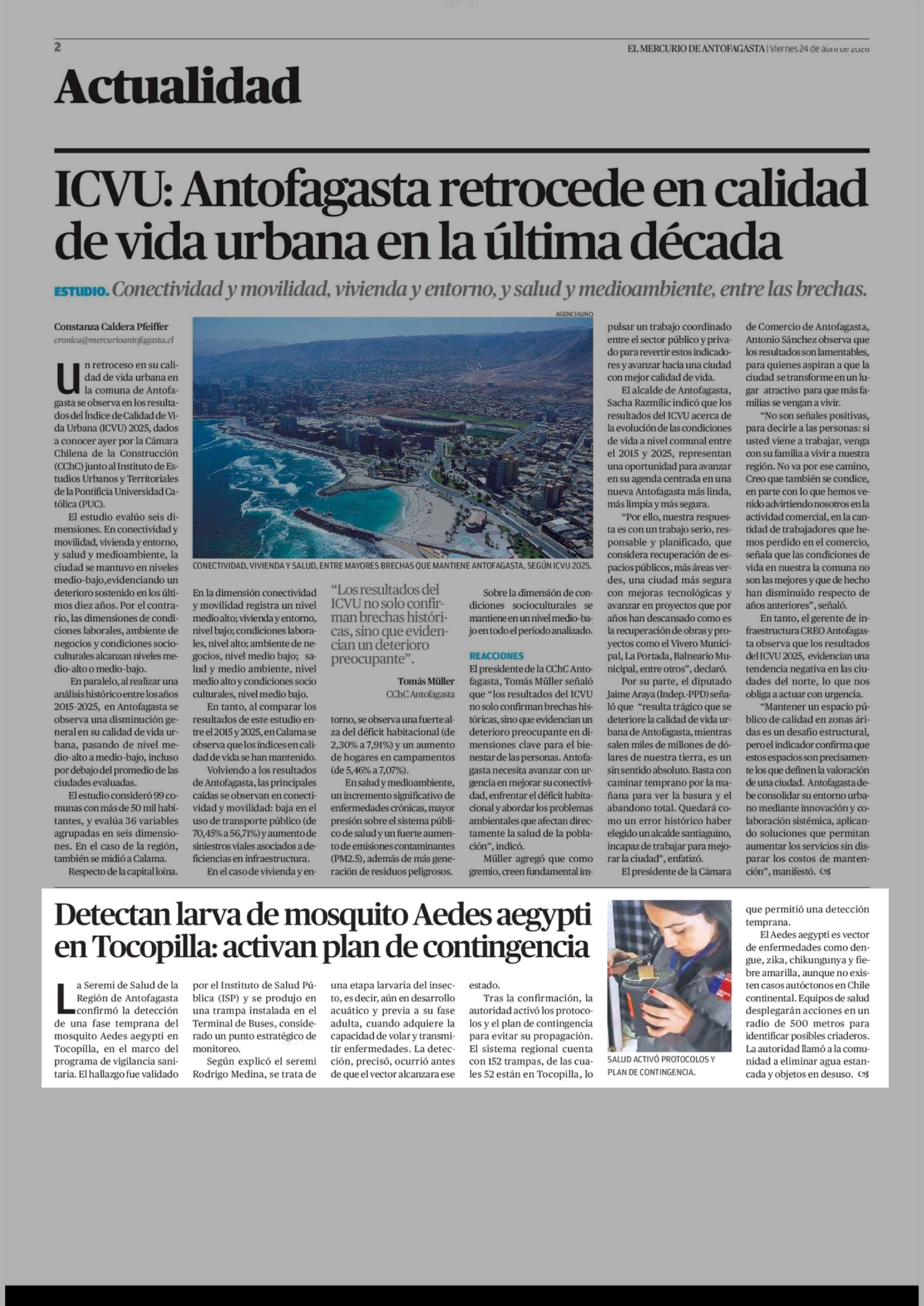 Detectan larva de mosquito Aedes aegypti en Tocopilla: activan plan de contingencia 24-04-2026 El Mercurio de Antofagasta |