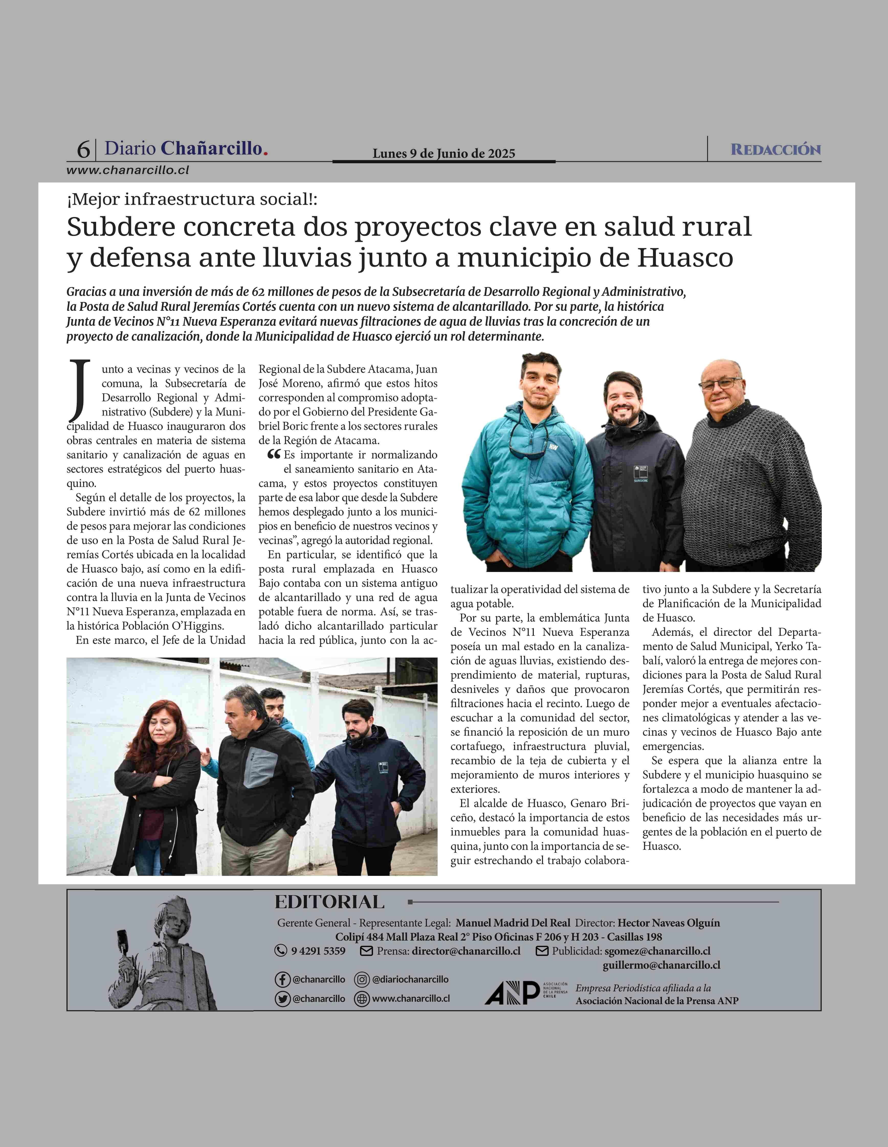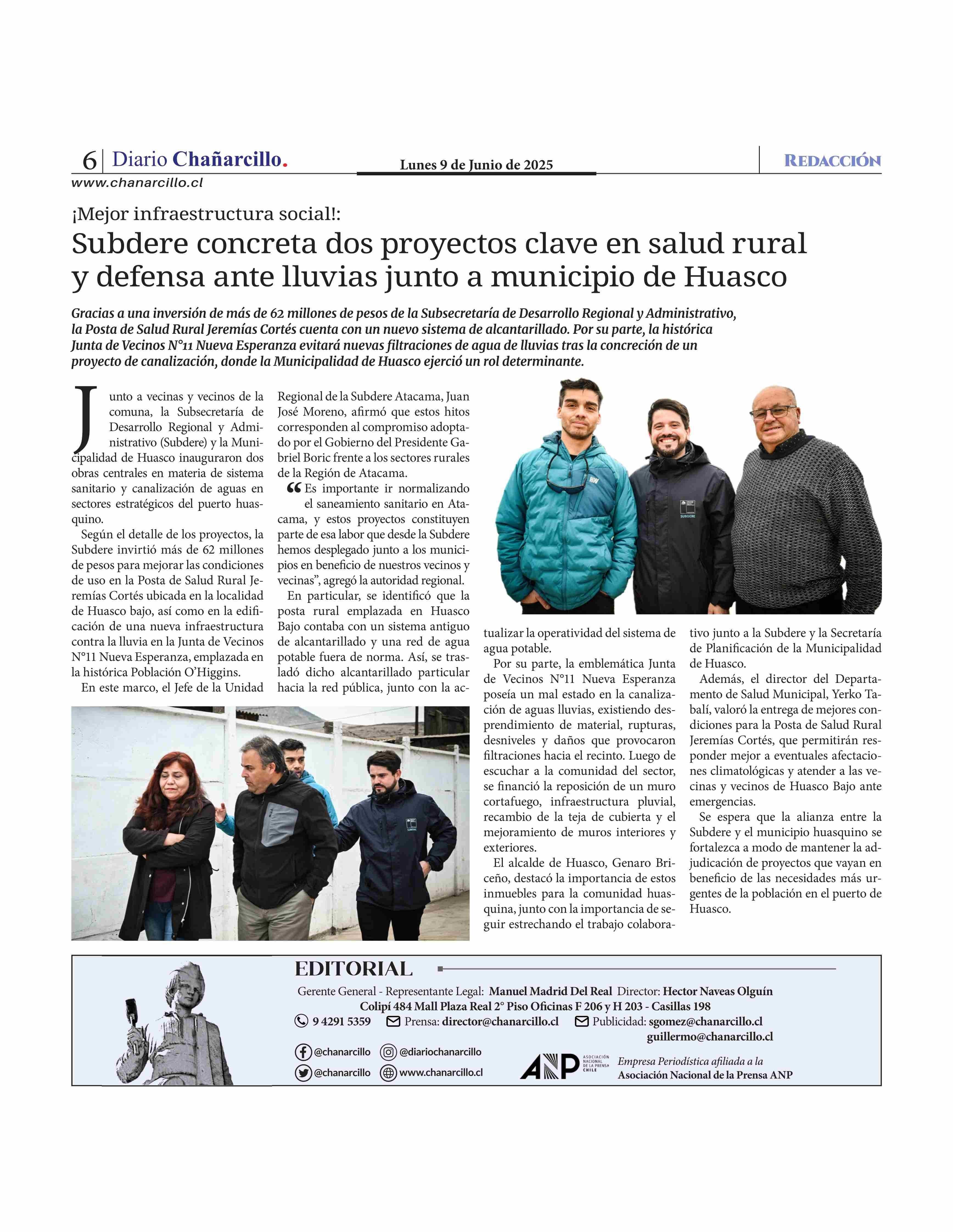Subdere concreta dos proyectos clave en salud rural y defensa ante lluvias junto a municipio de Huasco 09-06-2025 Diario Chañarcillo |