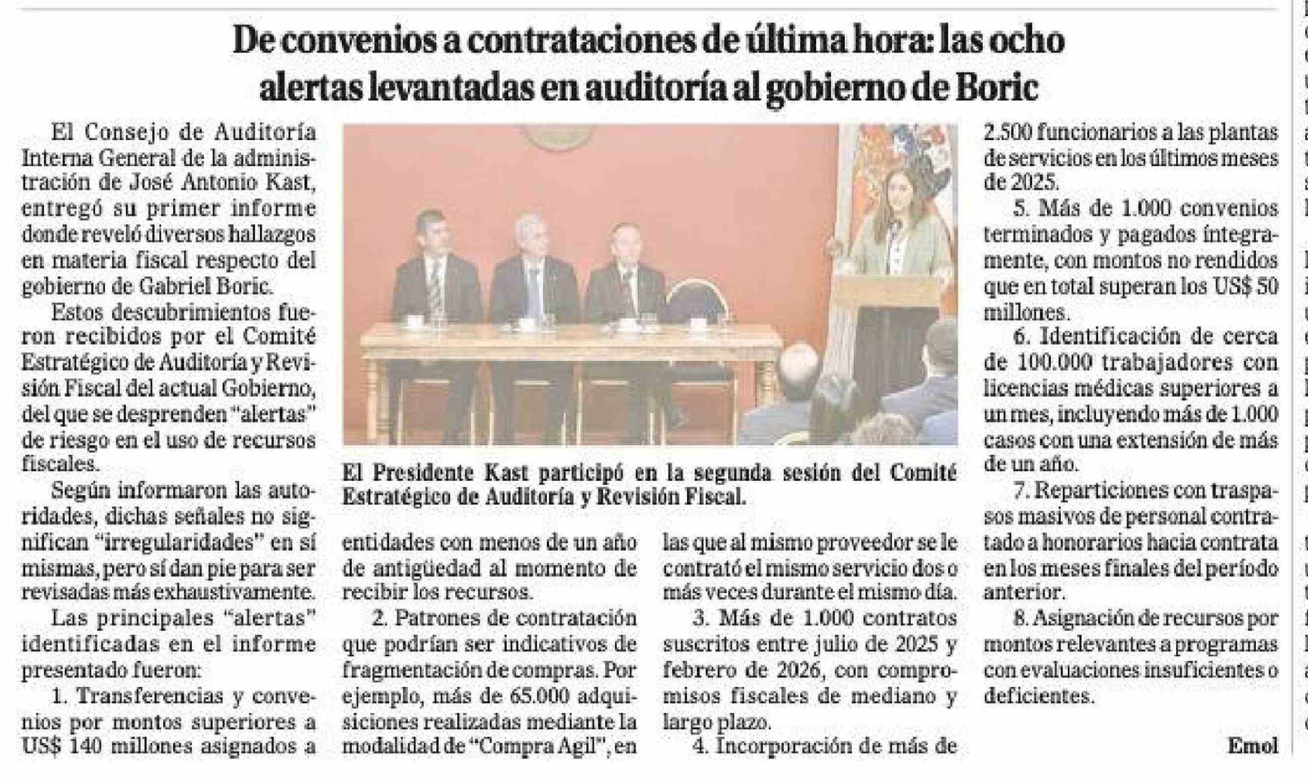 De convenios a contrataciones de última hora: las ocho alertas levantadas en auditoría al gobierno de Boric 12-04-2026 El Magallanes |