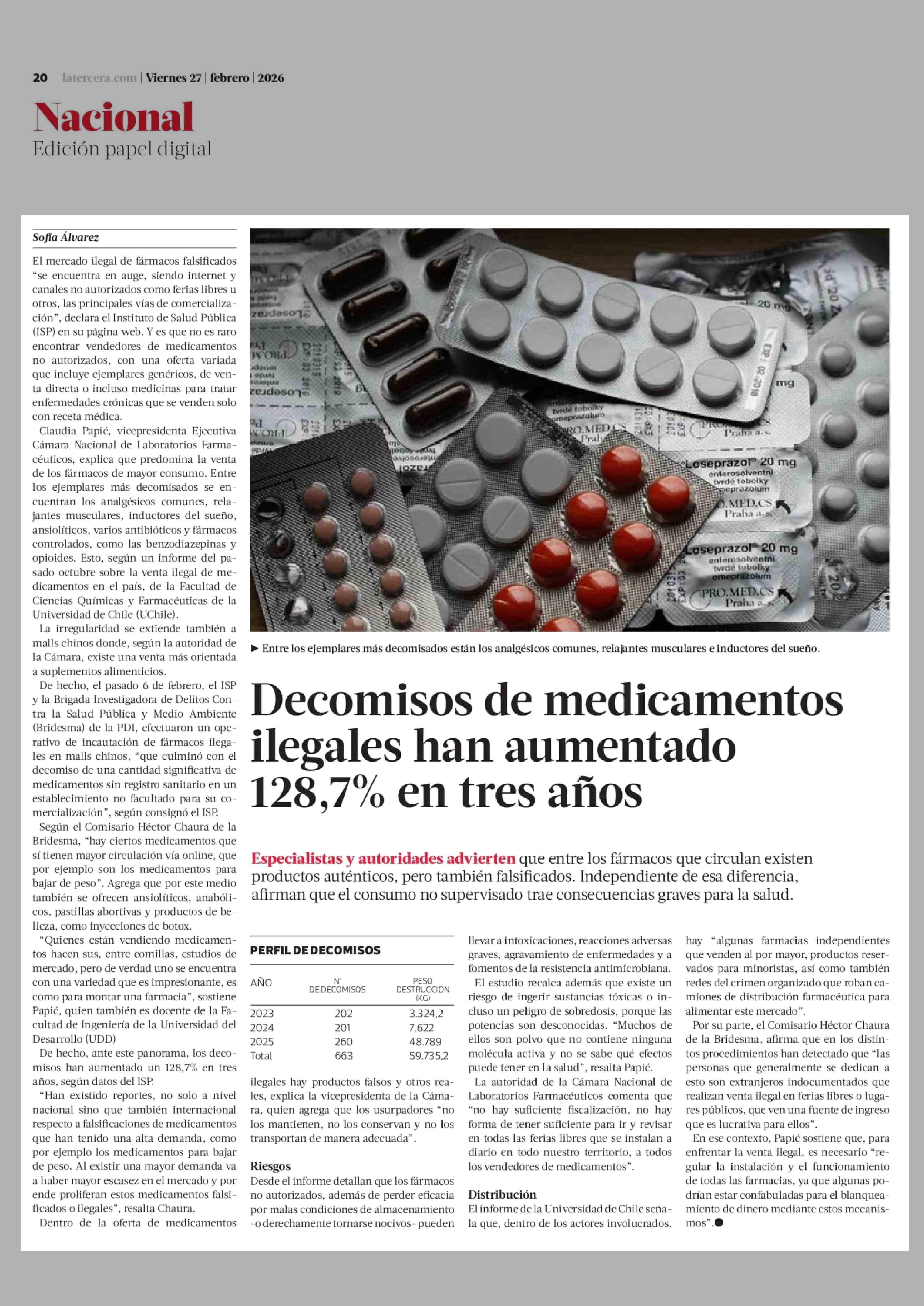 Título: Decomisos de medicamentos ilegales han aumentado 128,7% en tres años