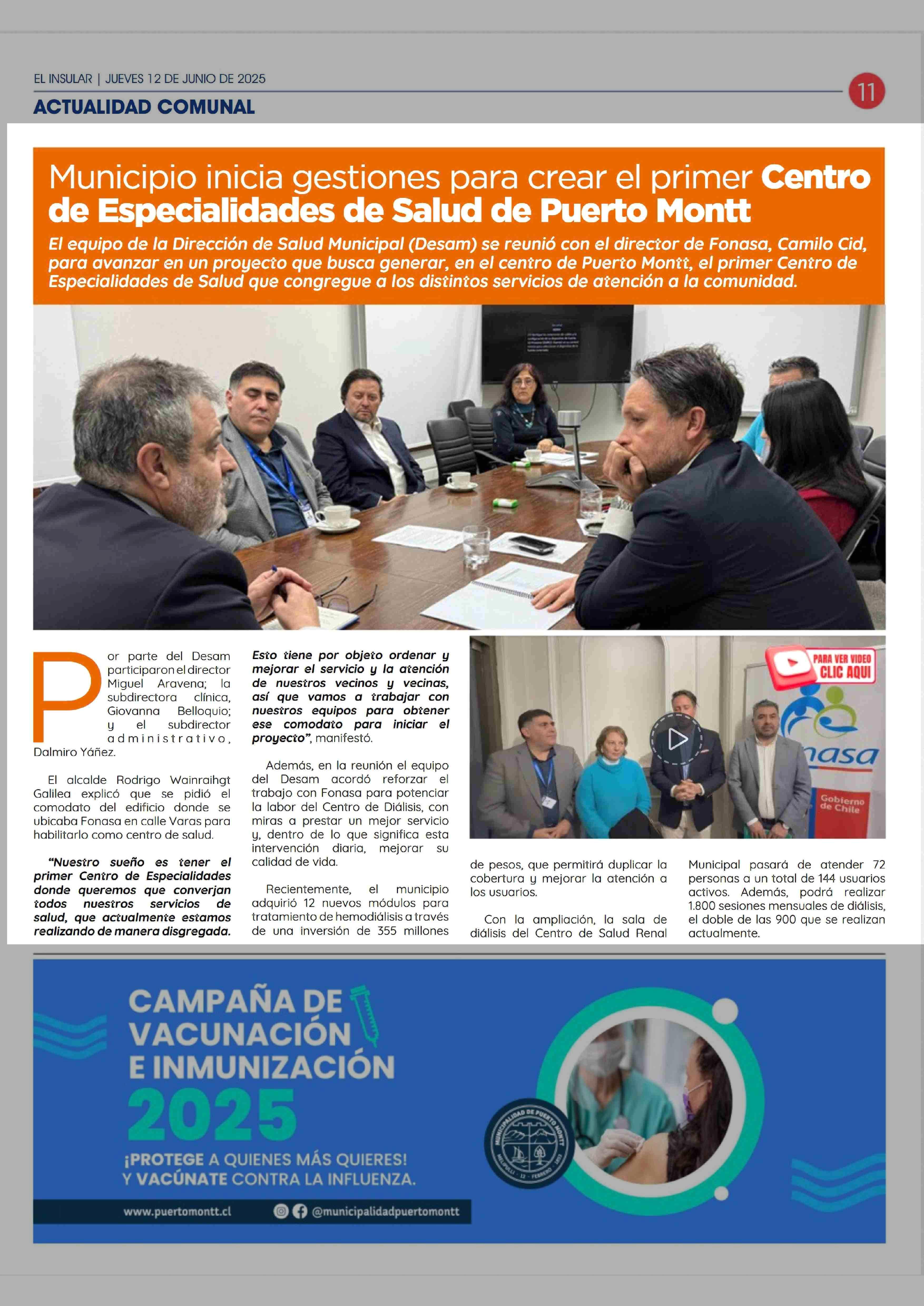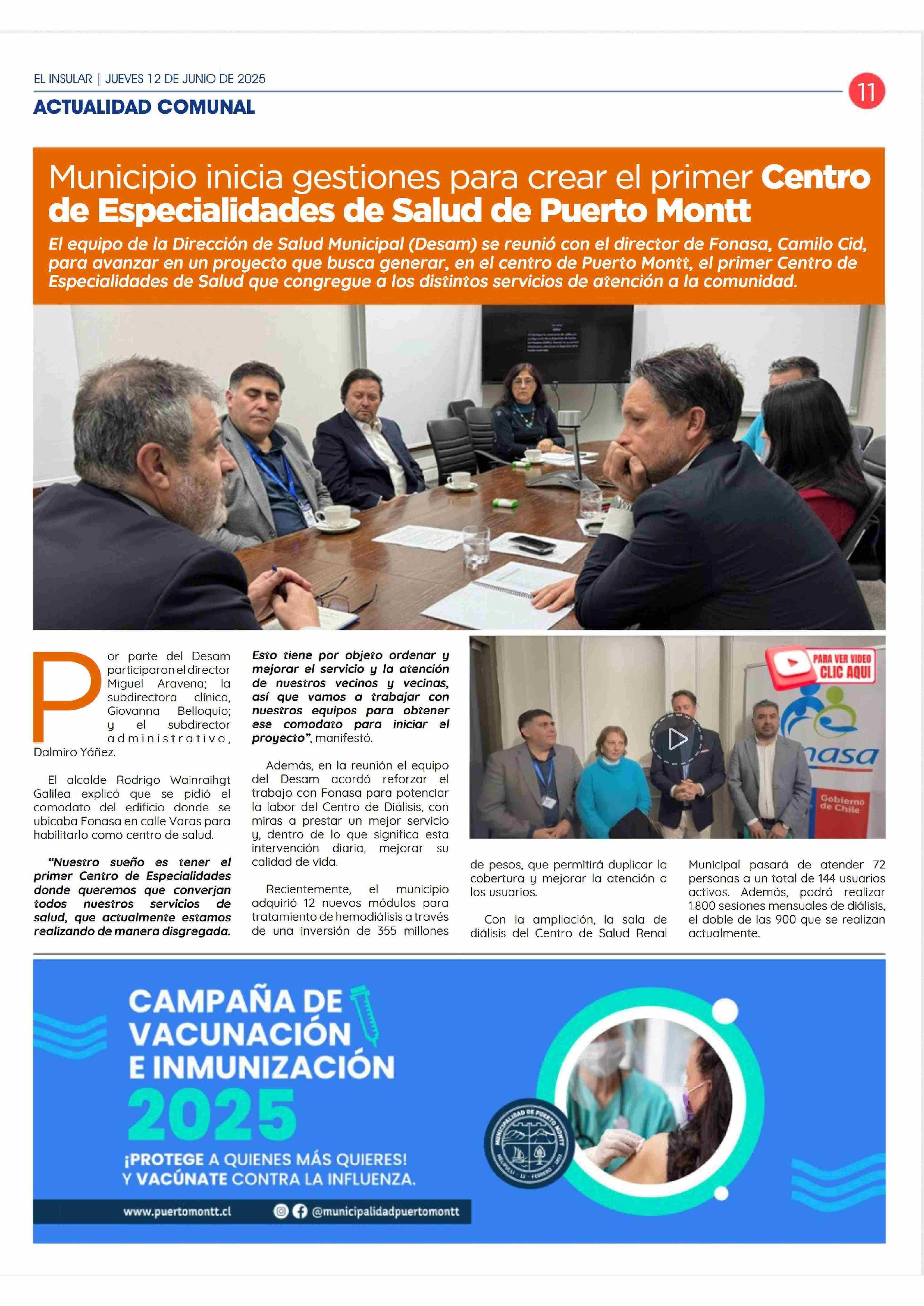 Municipio inicia gestiones para crear el primer Centro de Especialidades de Salud de Puerto Montt 12-06-2025 El Insular |