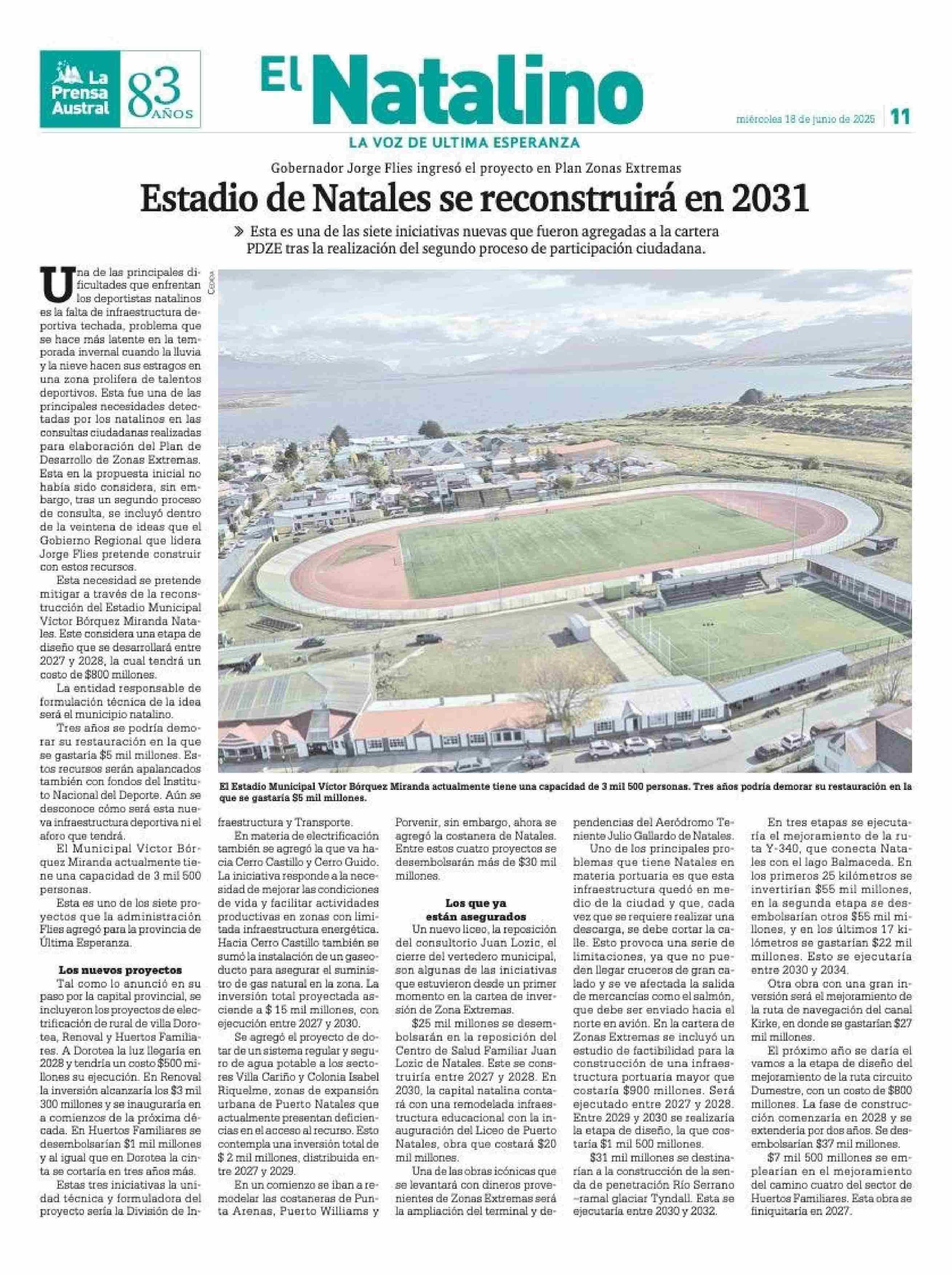 | Título: | Estadio de Natales se reconstruirá en 2031 |