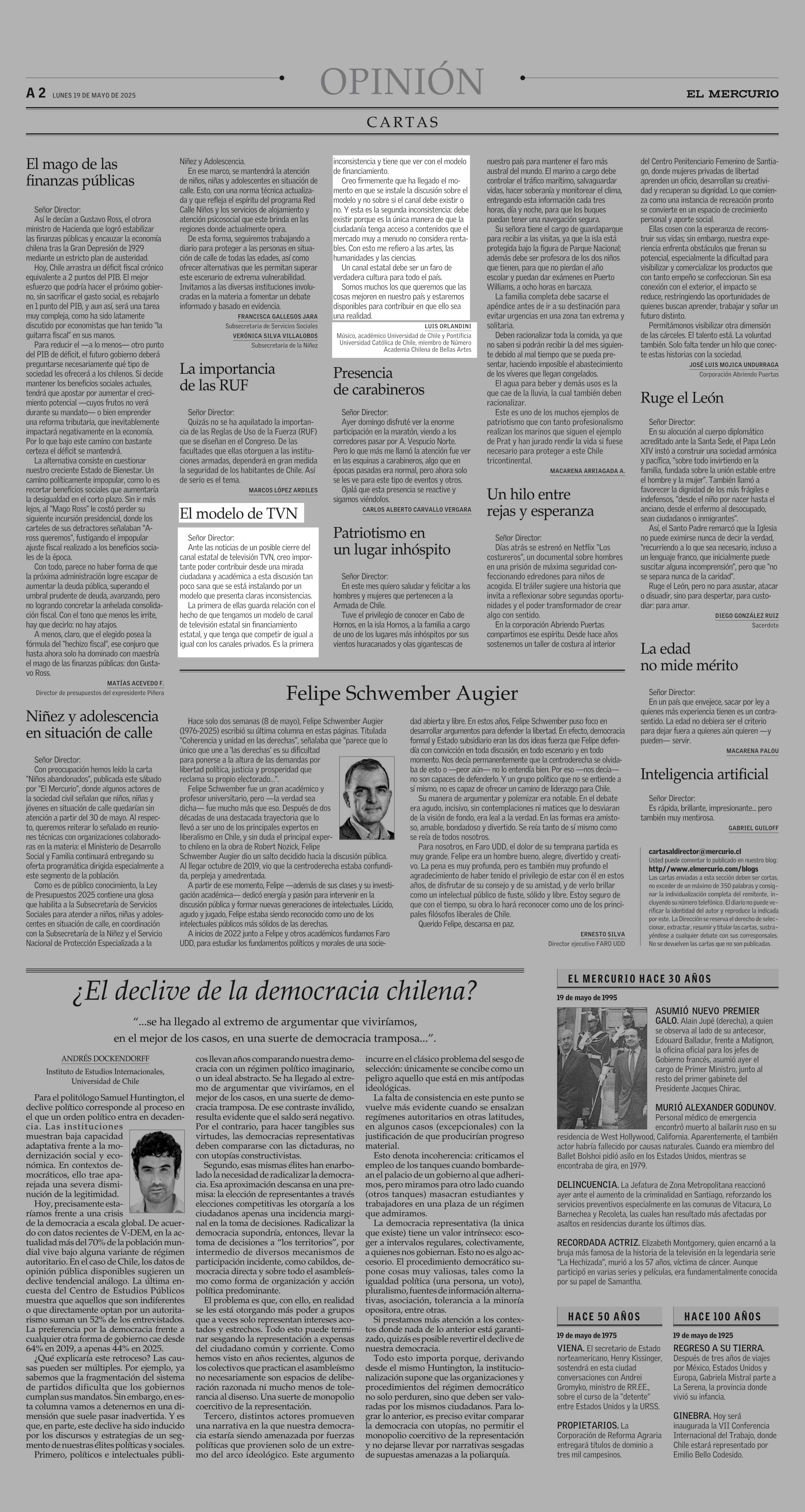 CARTAS: El modelo de TVN 19-05-2025 El Mercurio |