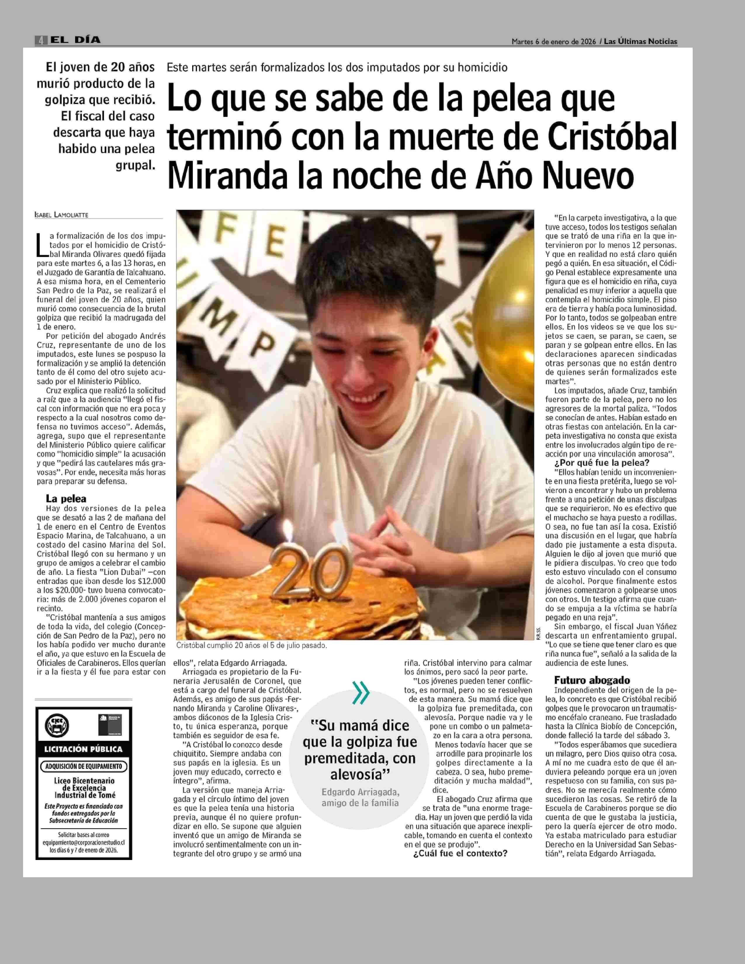 Lo que se sabe de la pelea que terminó con la muerte de Cristóbal Miranda la noche de Año Nuevo 06-01-2026 Las Últimas Noticias |
