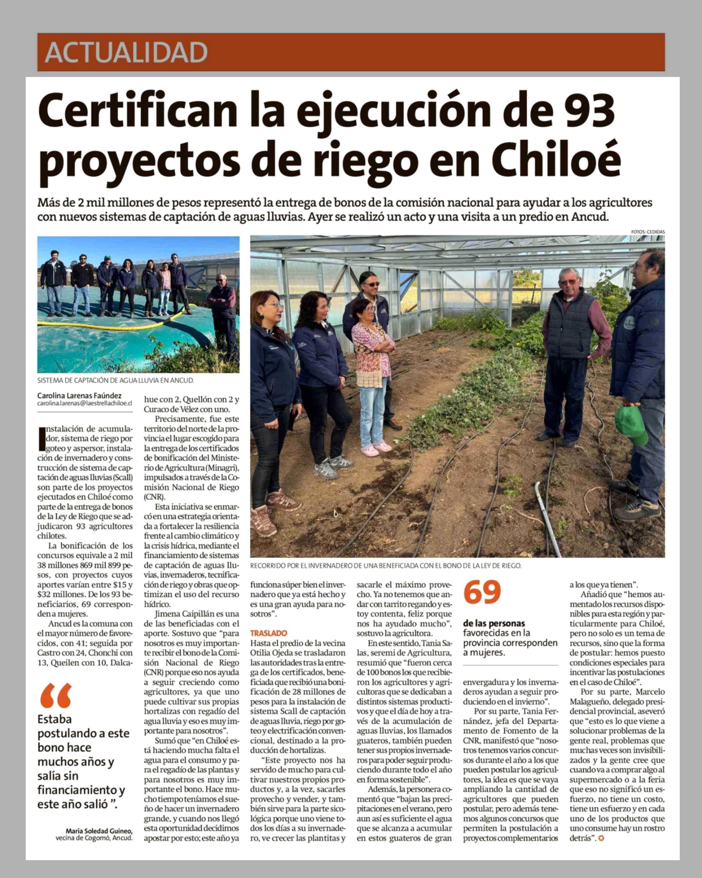 Título: Certifican la ejecución de 93 proyectos de riego en Chiloé