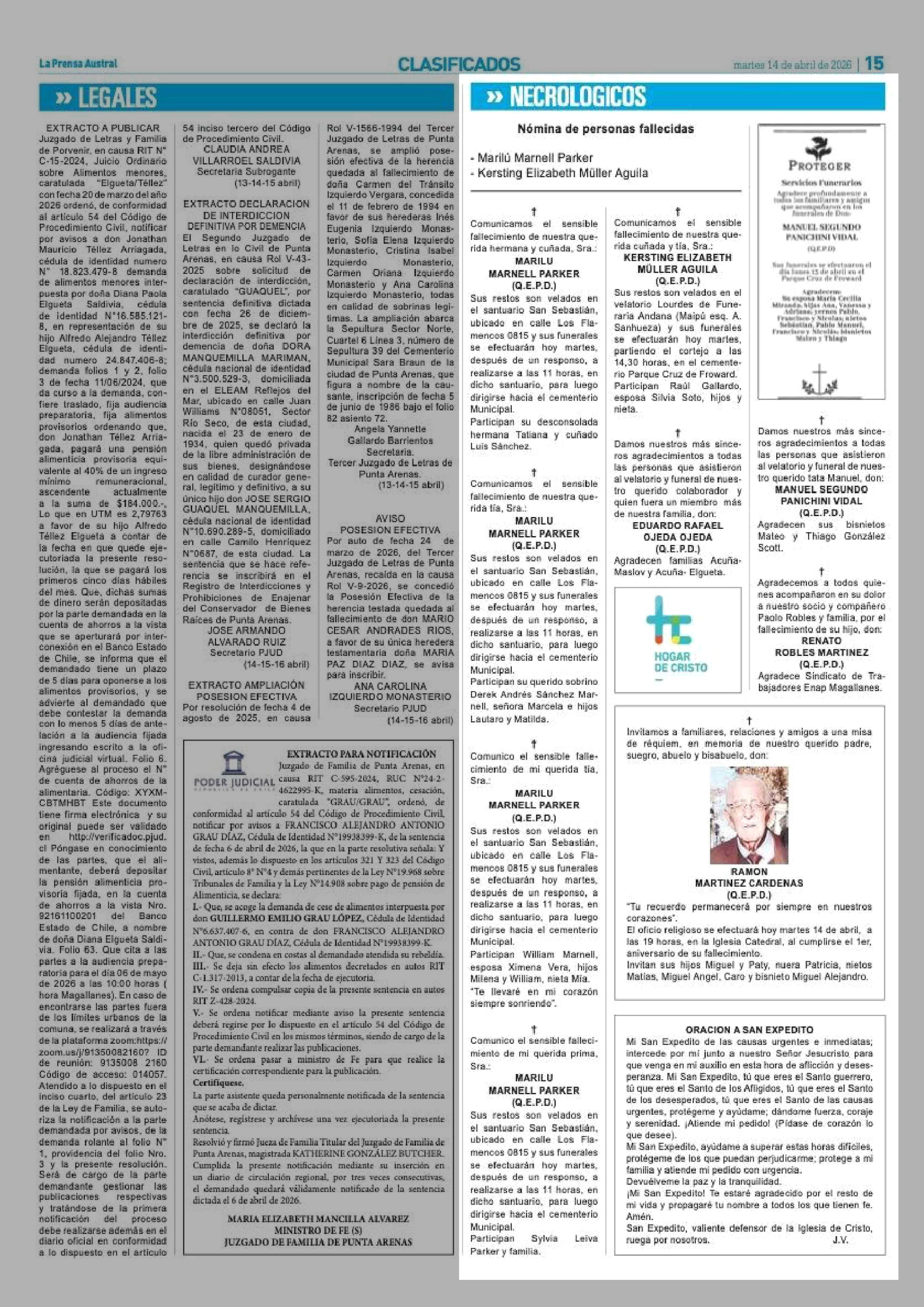 NECROLOGICOS 14-04-2026 La Prensa Austral |