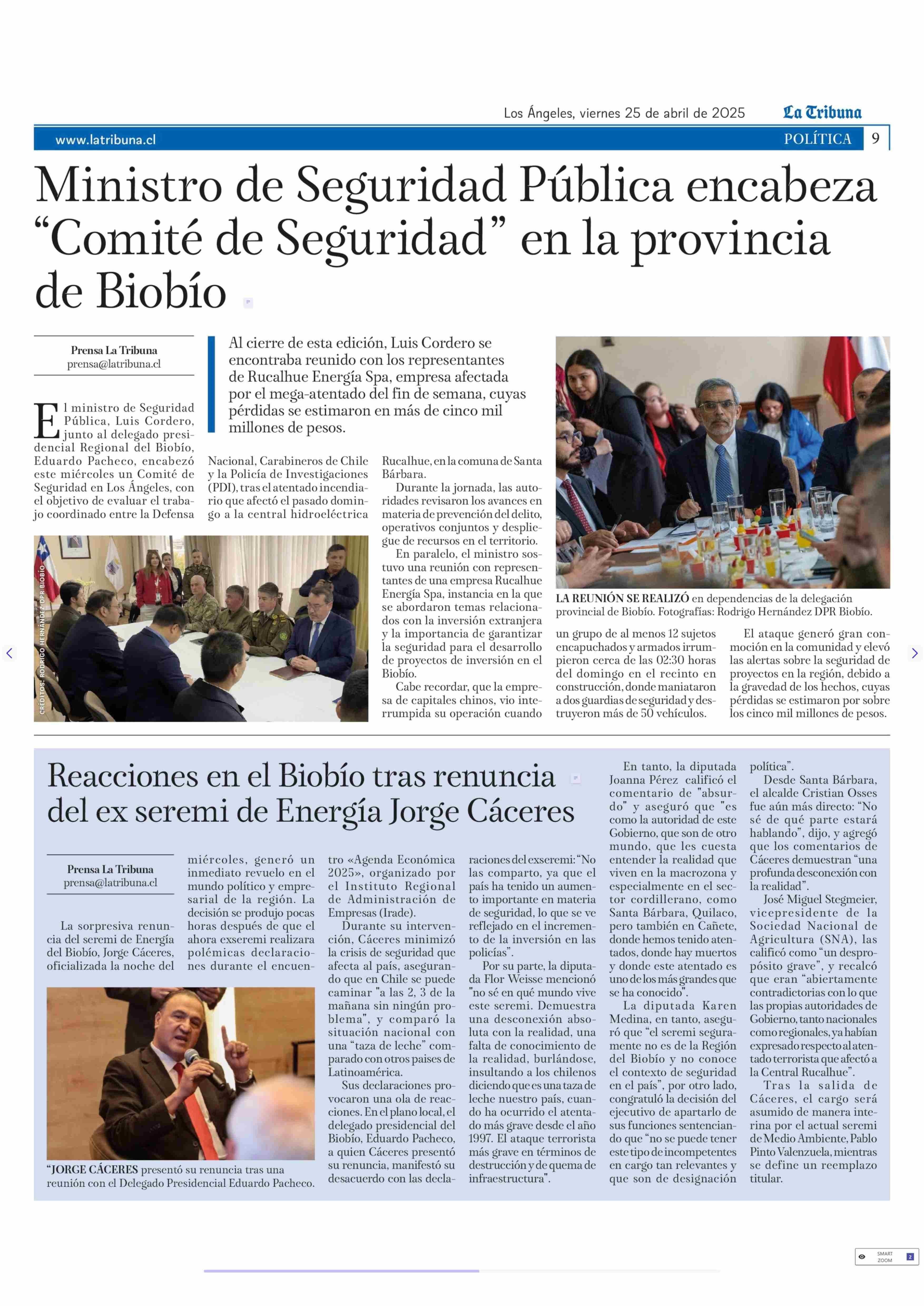 Reacciones en el Biobío tras renuncia del ex seremi de Energía Jorge Cáceres 25-04-2025 La Tribuna |