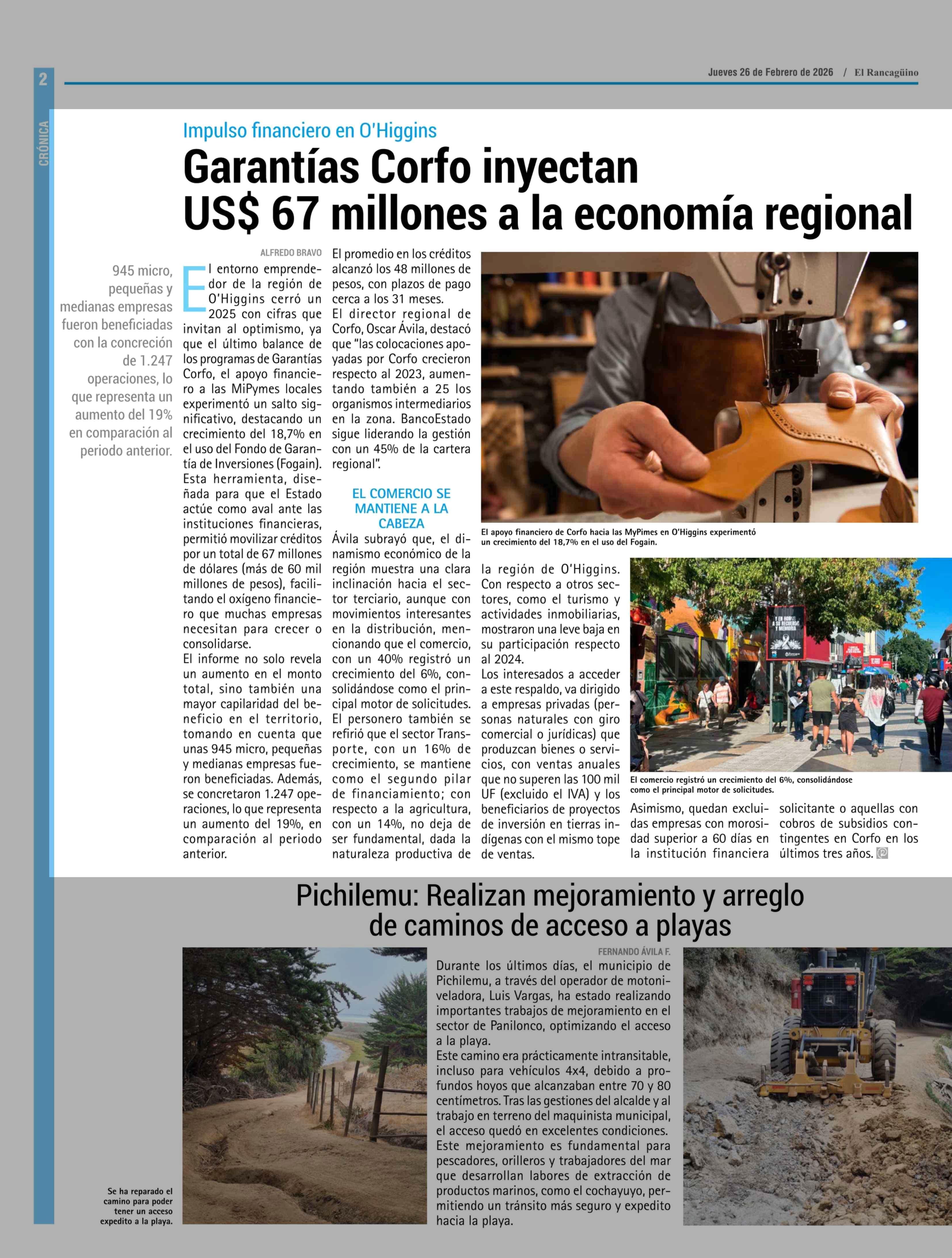 Garantías Corfo inyectan US$ 67 millones a la economía regional 26-02-2026 El Rancagüino |
