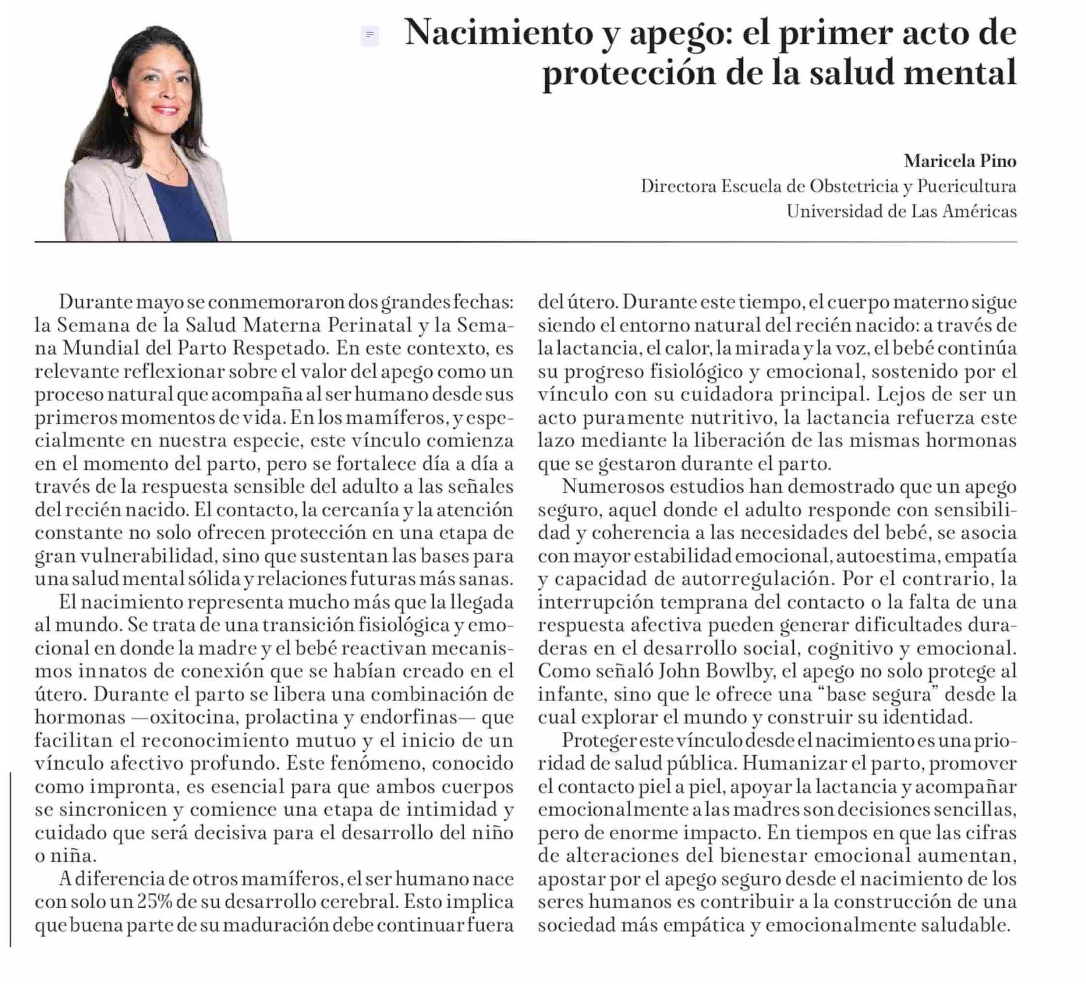 Título: Nacimiento y apego: el primer acto de protección de la salud mental