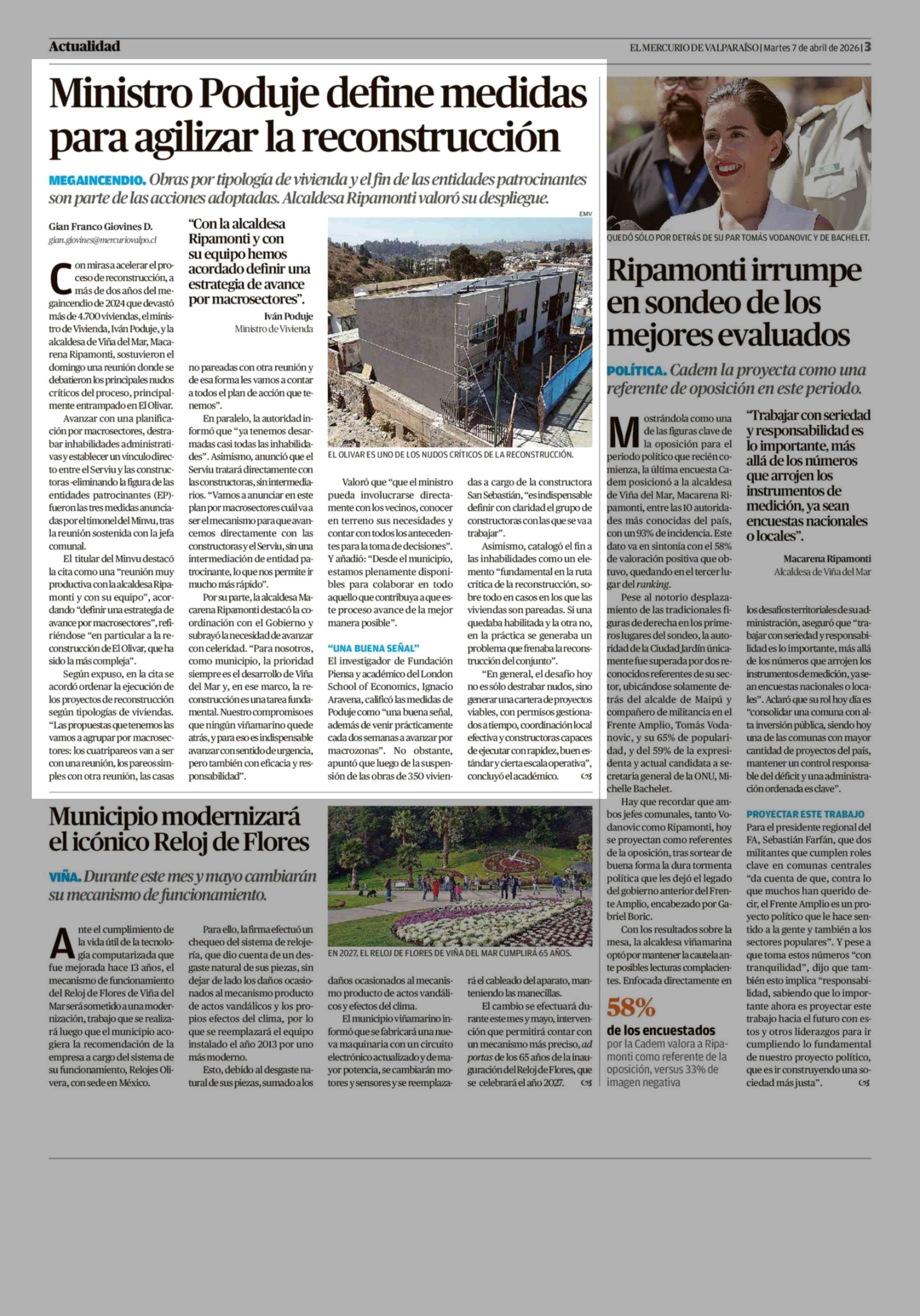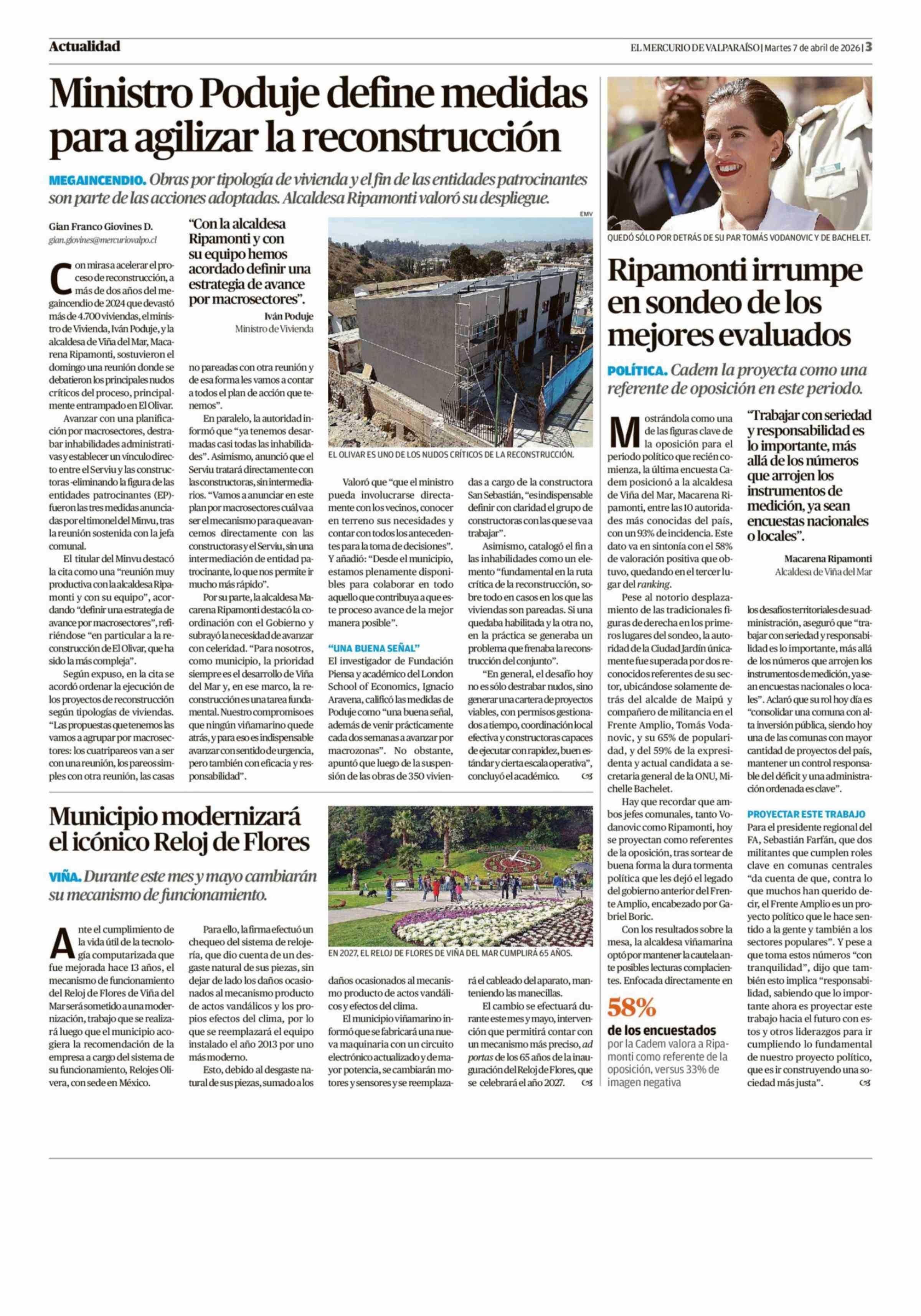 Ministro Poduje define medidas para agilizar la reconstrucción 07-04-2026 El Mercurio de Valparaíso |