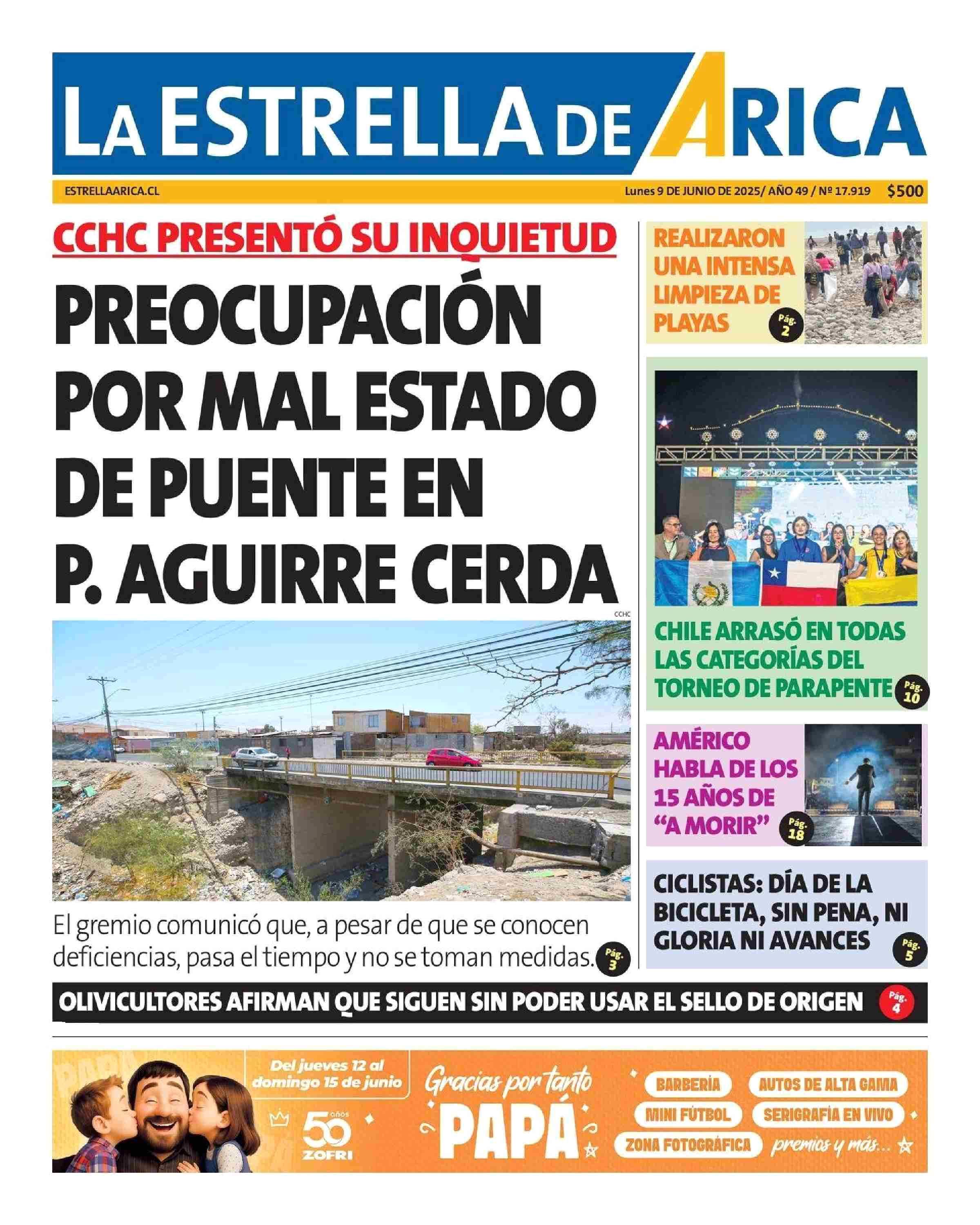 | Fecha: | 09-06-2025 | Sector: | Portada | Región: | Región de Arica y Parinacota |