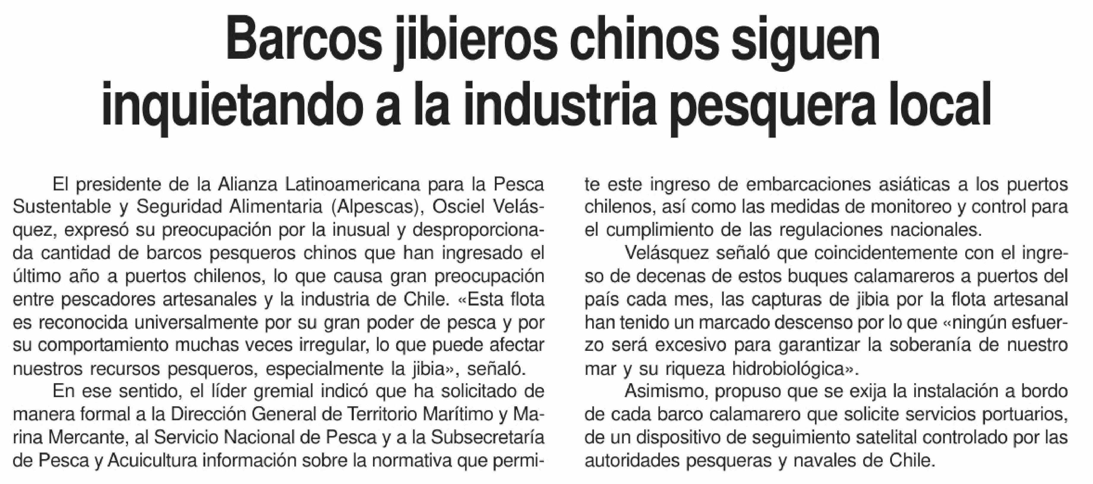 | Título: | Barcos jibieros chinos siguen inquietando a la industria pesquera local |