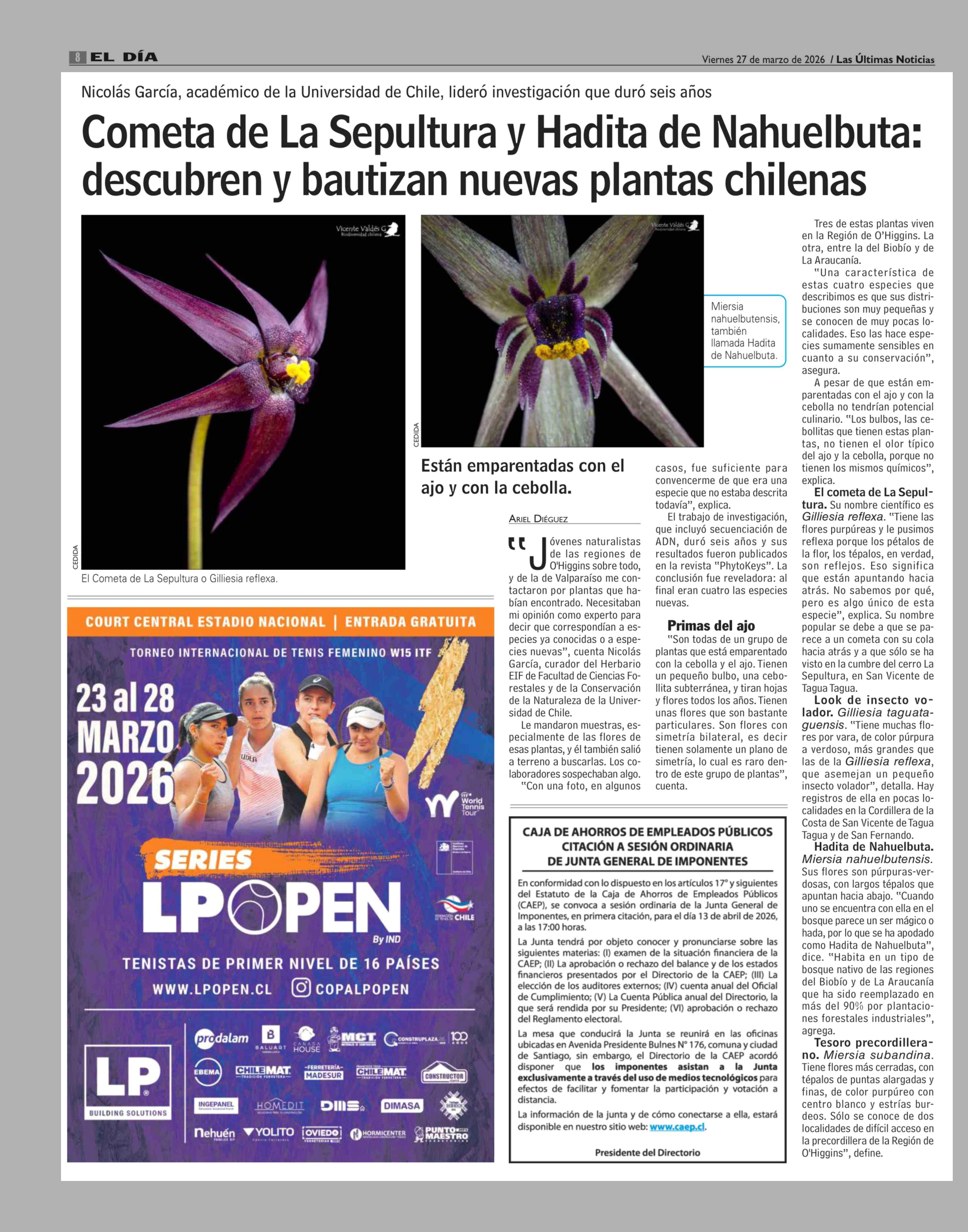 Título: Cometa de La Sepultura y Hadita de Nahuelbuta: descubren y bautizan nuevas plantas chilenas