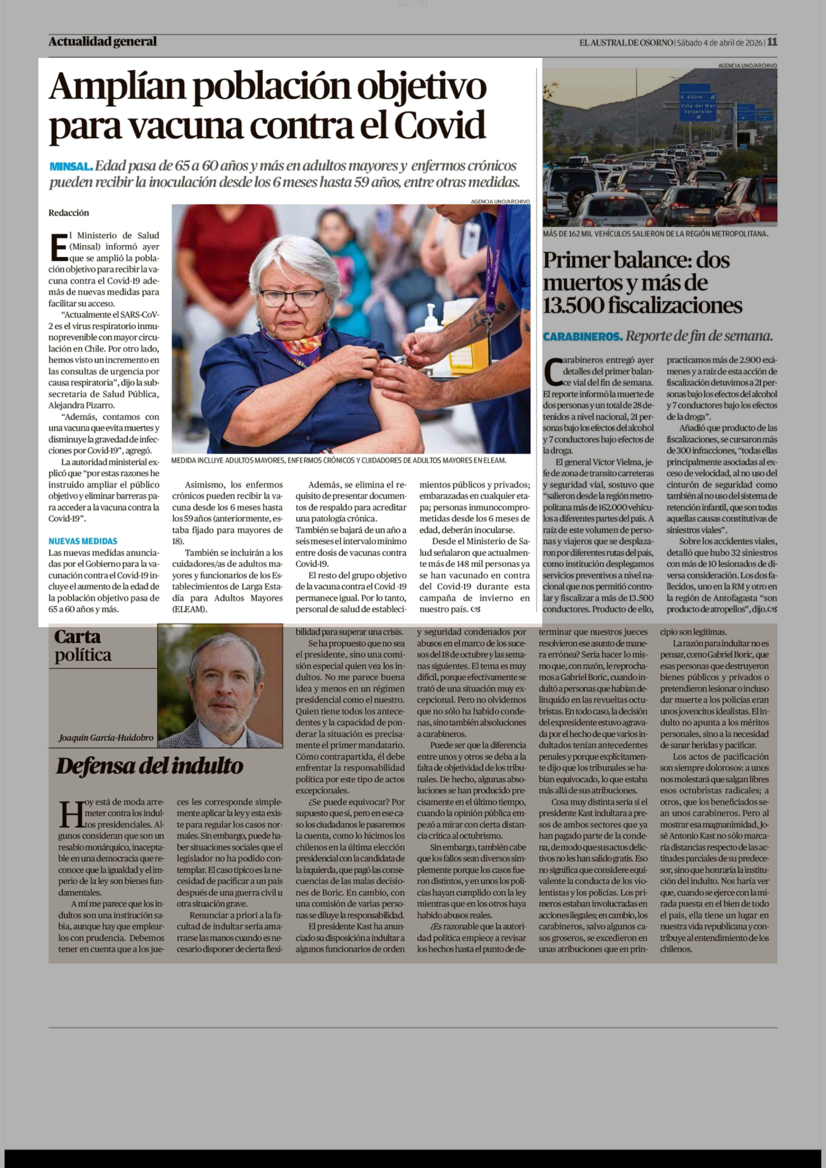 Fuente: El Austral de Osorno (El Austral de Osorno) Página(s): 11