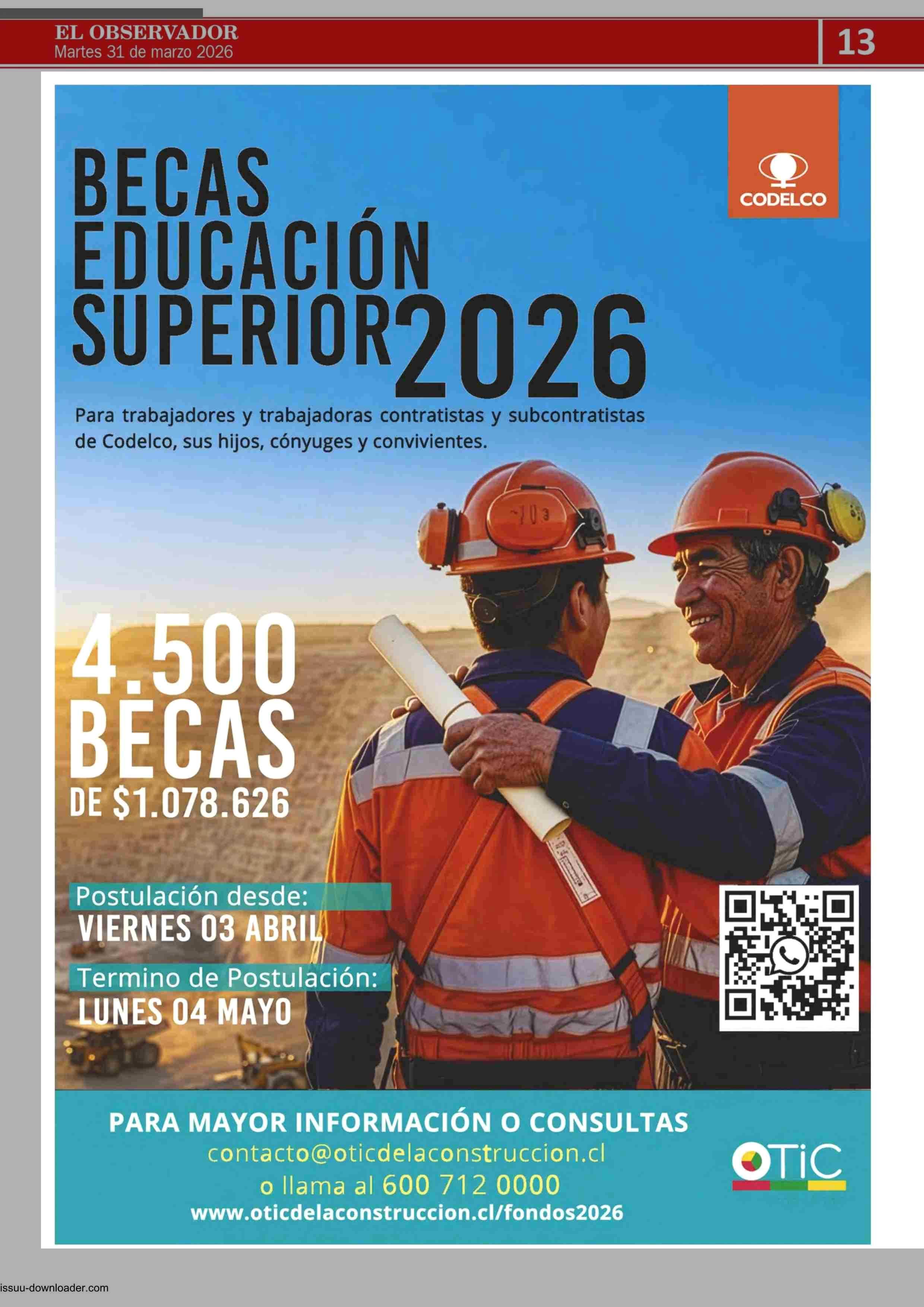 AVISO PUBLICITARIO: CODELCO 31-03-2026 El Observador Vespertino |