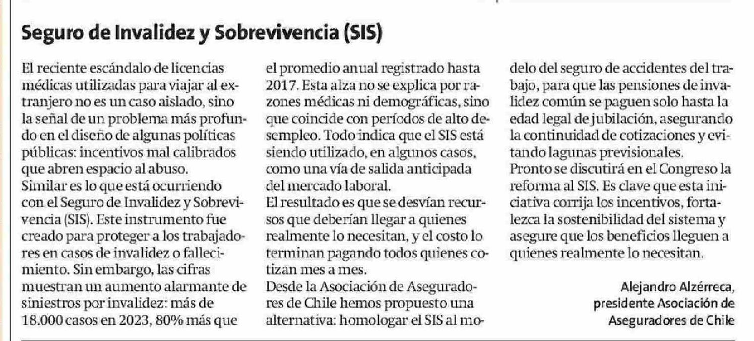 Cartas: Seguro de Invalidez y Sobrevivencia (SIS) 18-06-2025 La Estrella de Iquique |