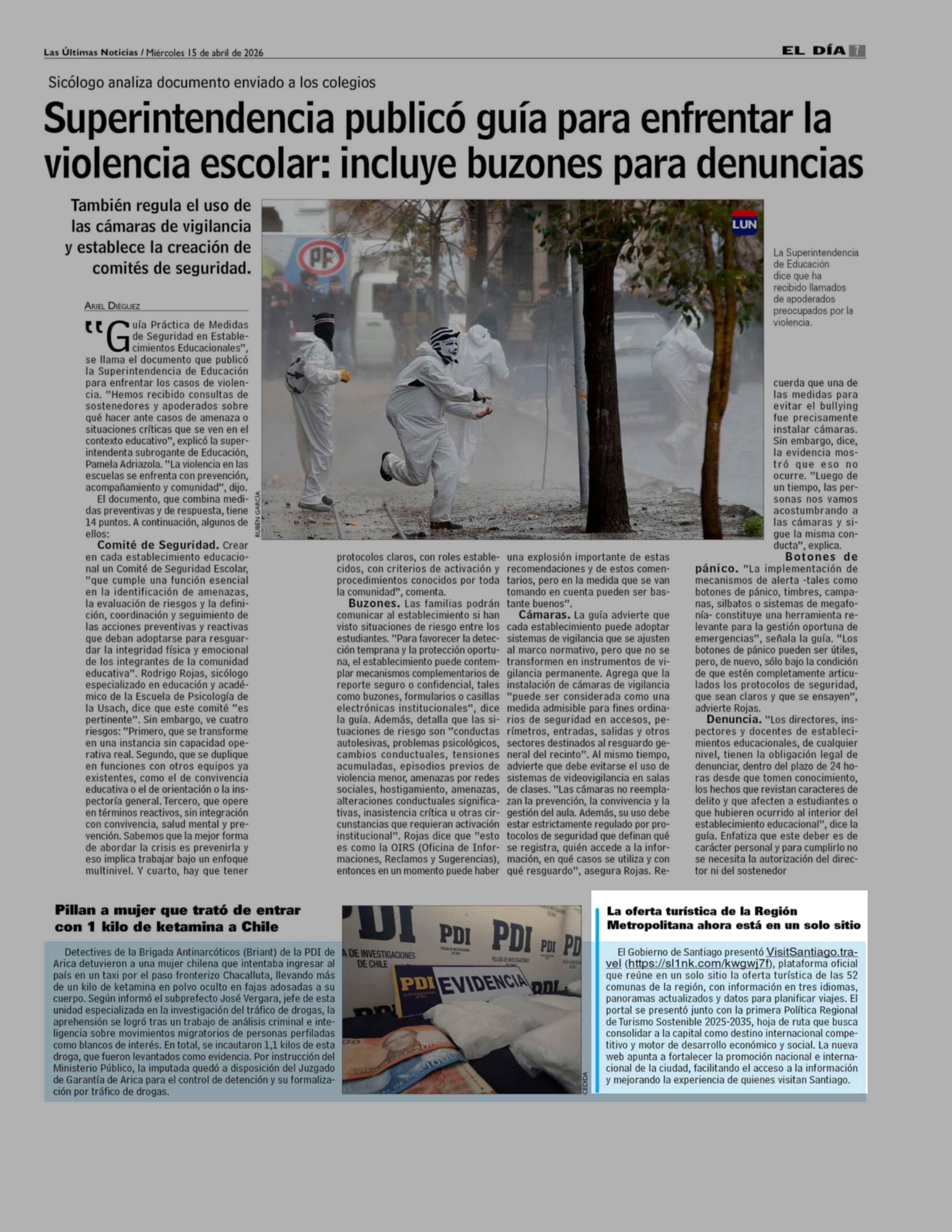 | Fecha: | 15-04-2026 | Sector: | Noticia general | Región: | Región Metropolitana de Santiago |