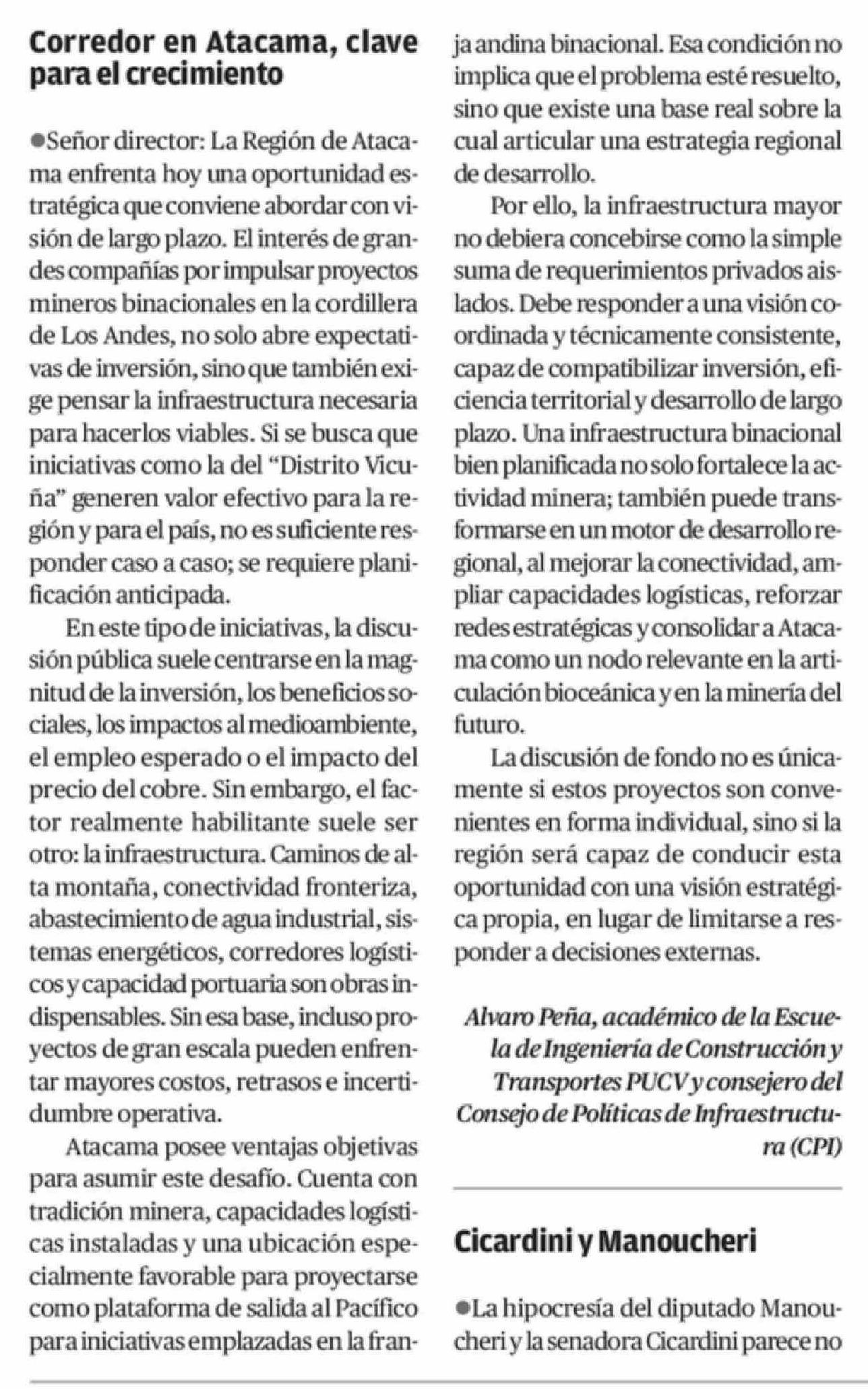 Cartas: Corredor en Atacama, clave para el crecimiento 16-04-2026 El Diario de Atacama |