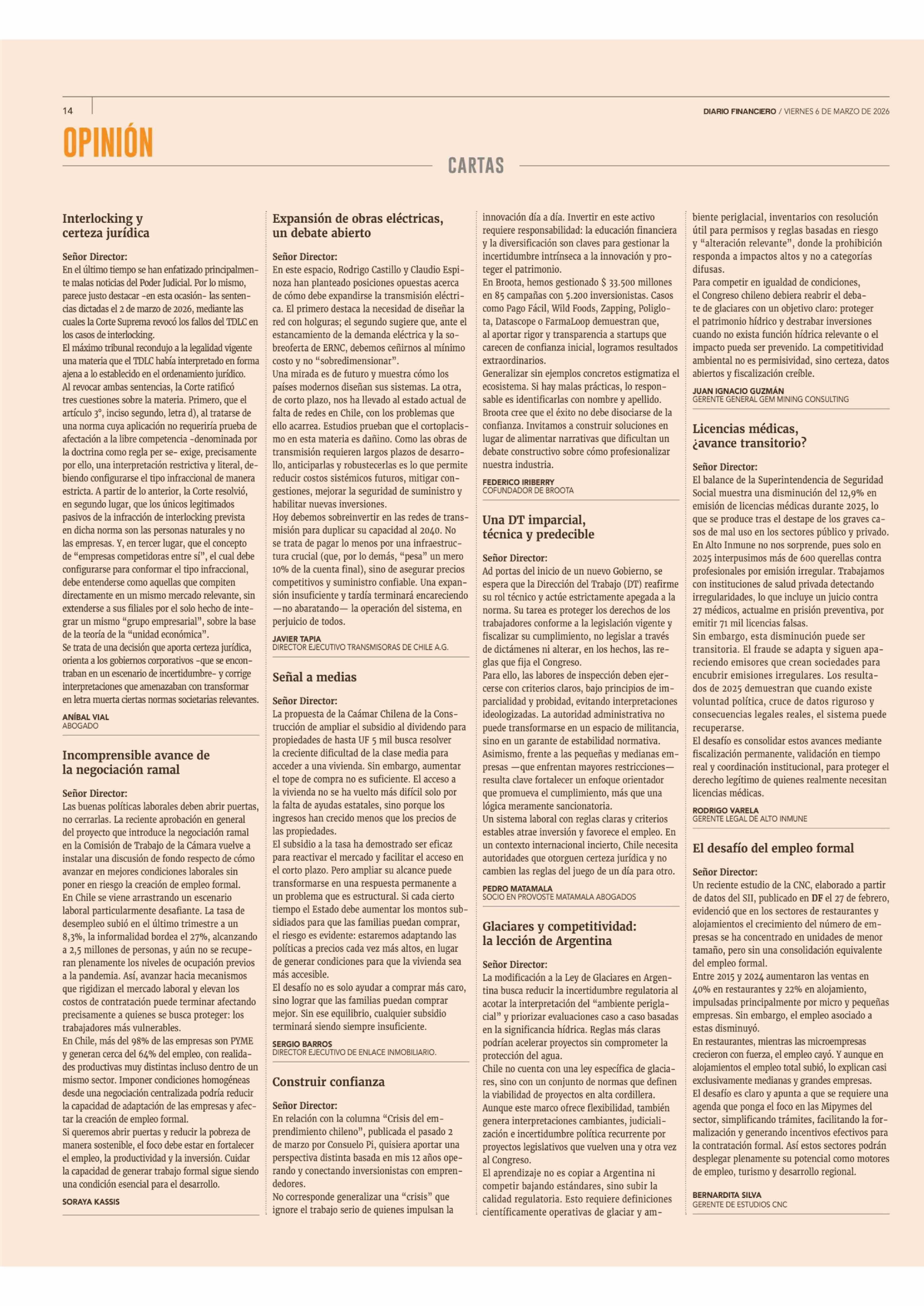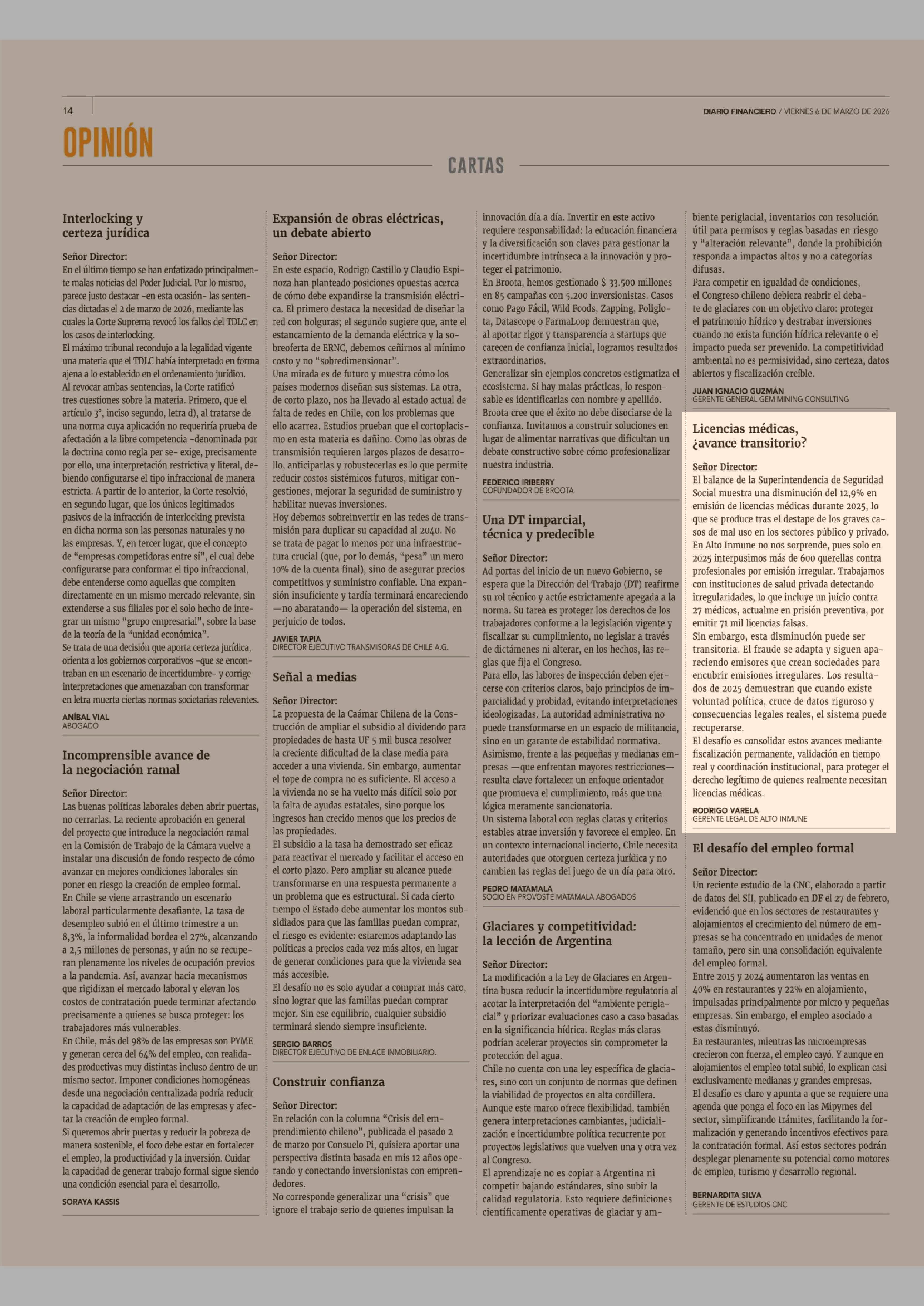 Cartas: Licencias médicas, ¿avance transitorio? 06-03-2026 Diario Financiero |