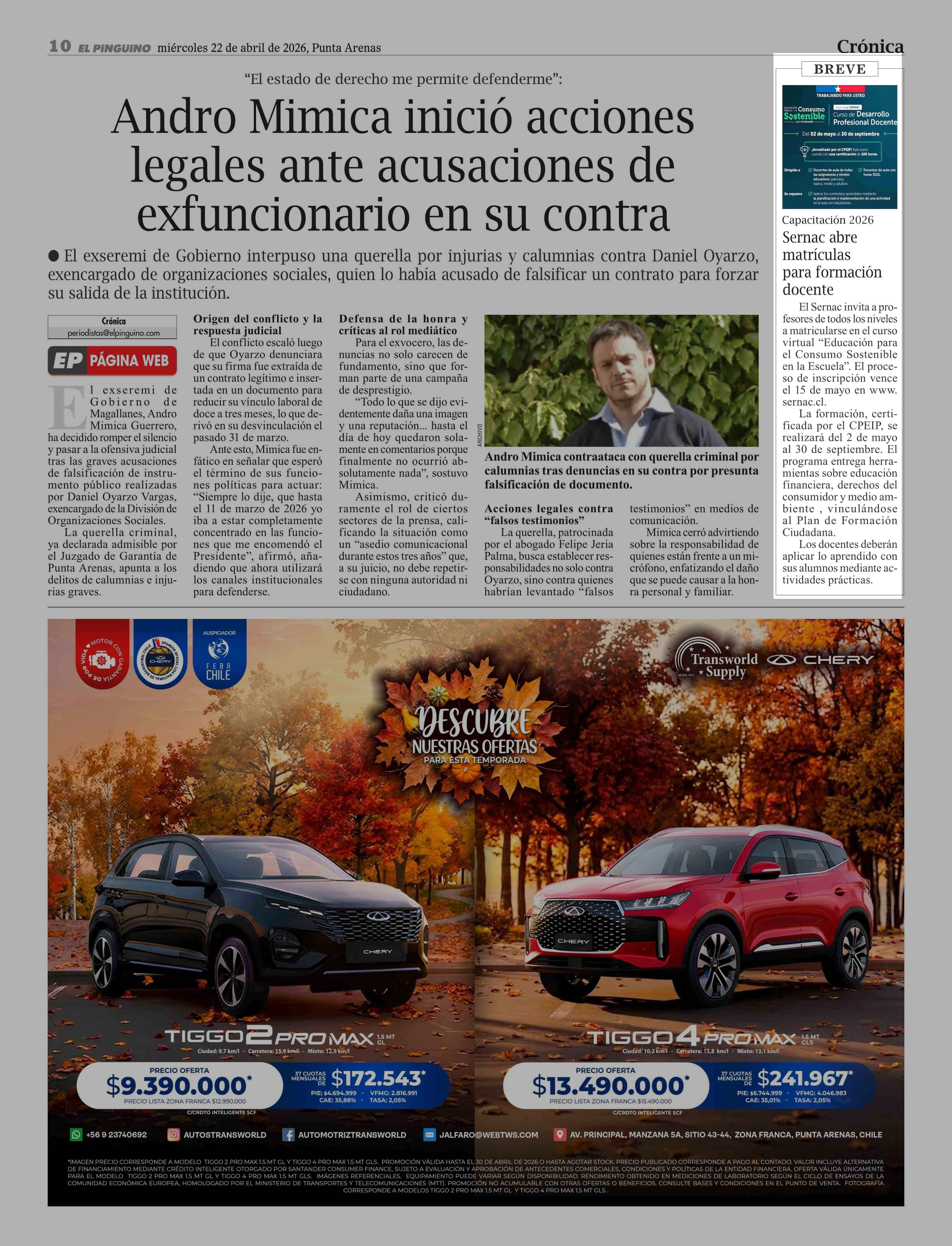 Sernac abre matrículas para formación docente 22-04-2026 El Pingüino |
