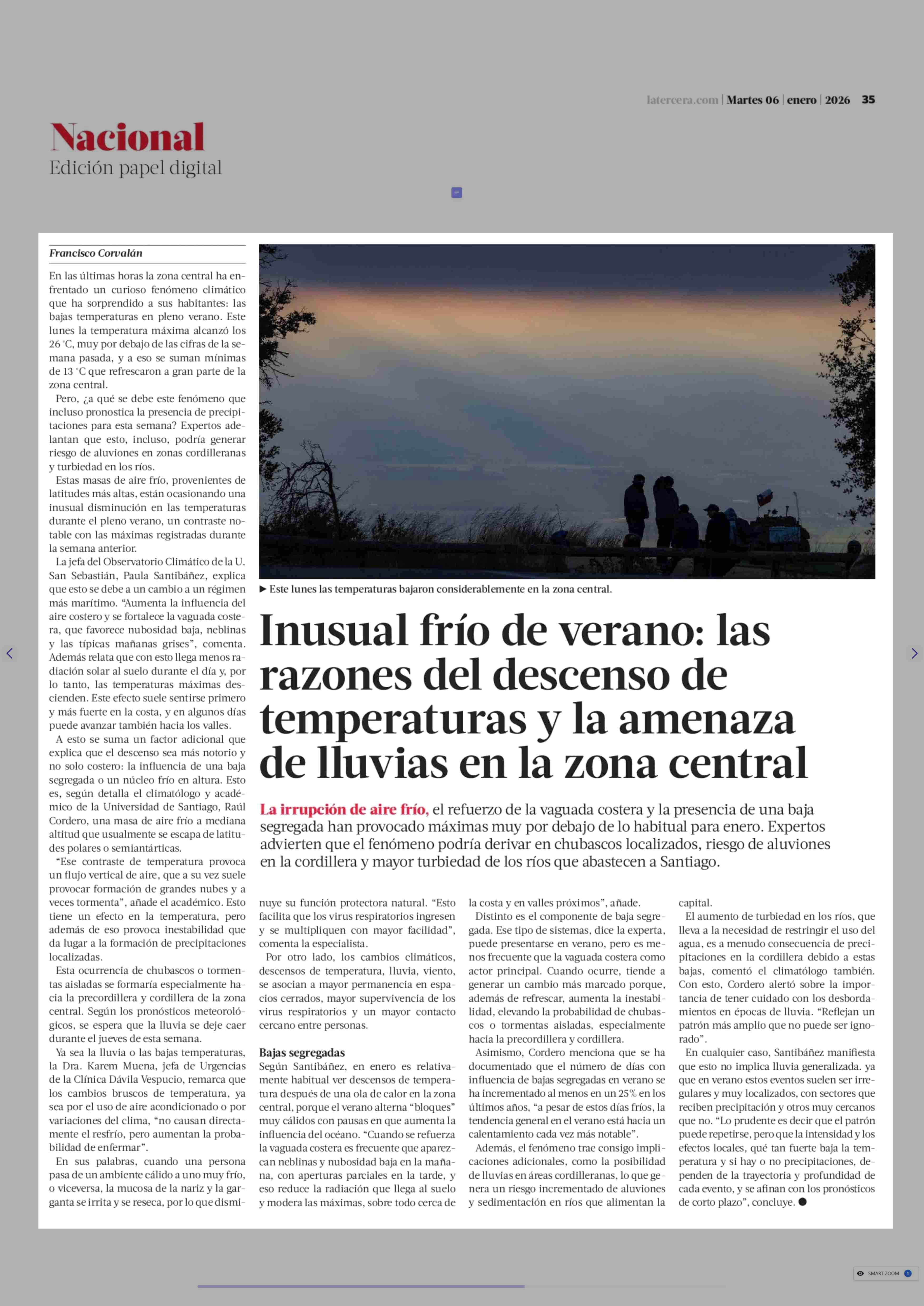 Título: Inusual frío de verano: las razones del descenso de temperaturas y la amenaza de lluvias en la zona central