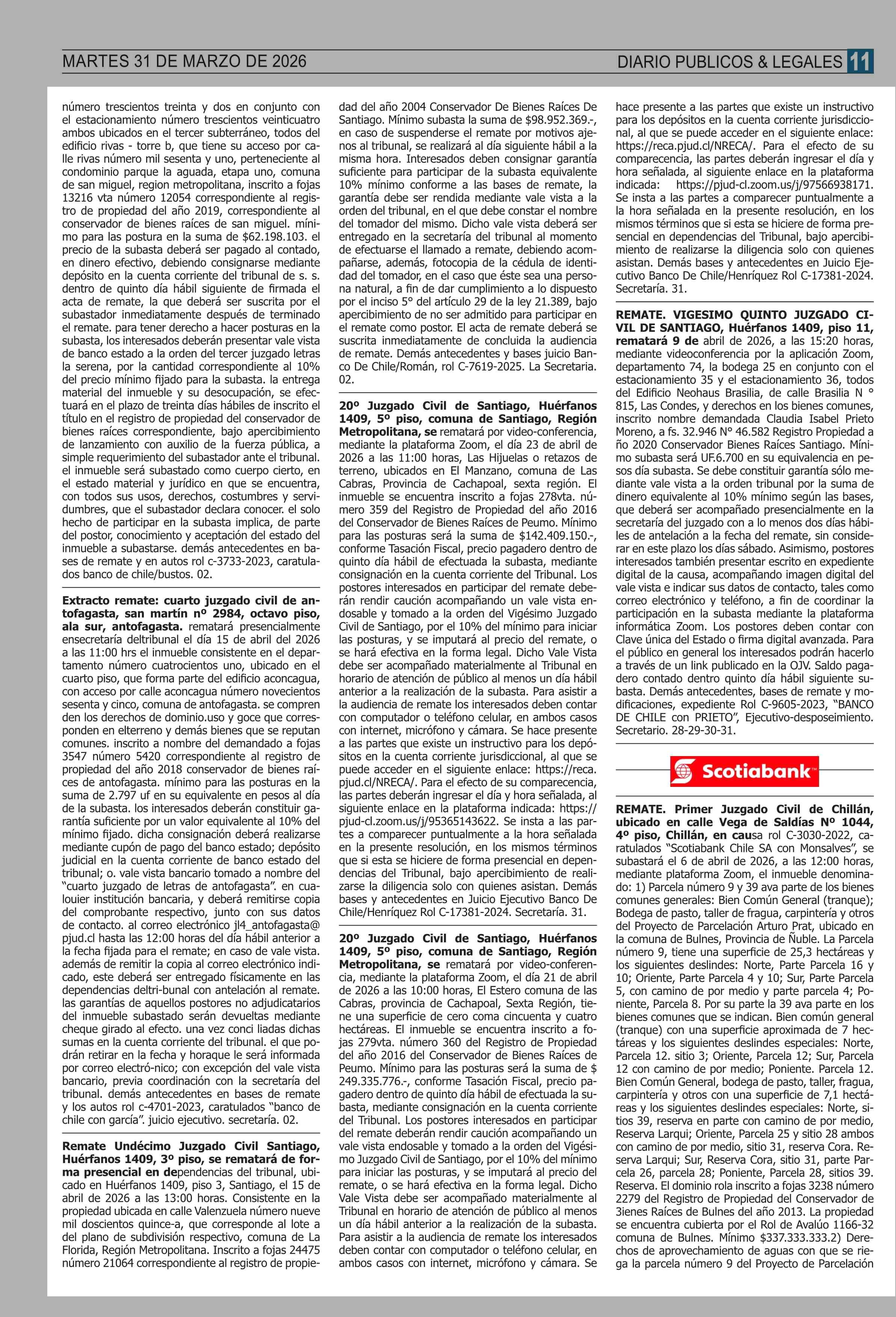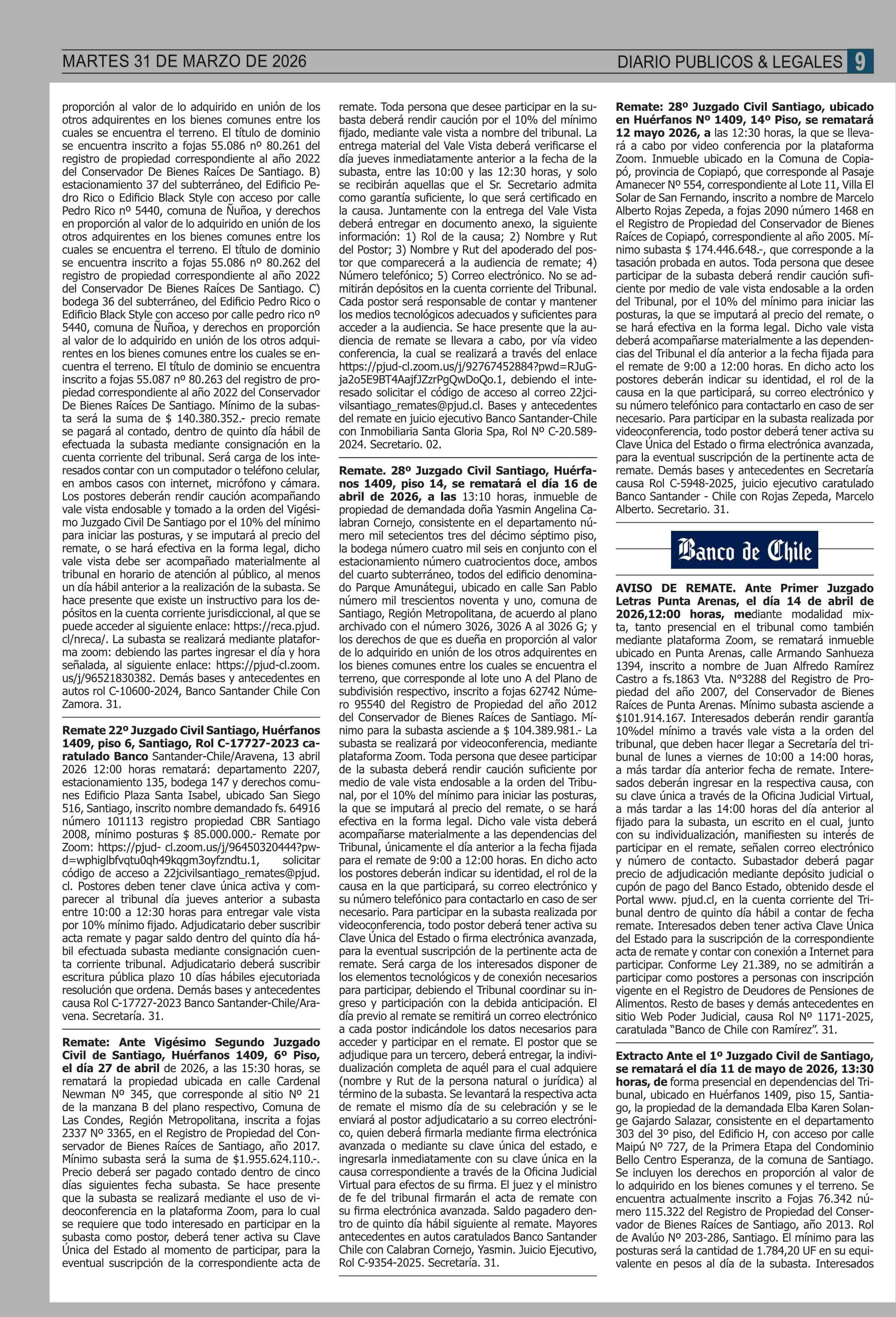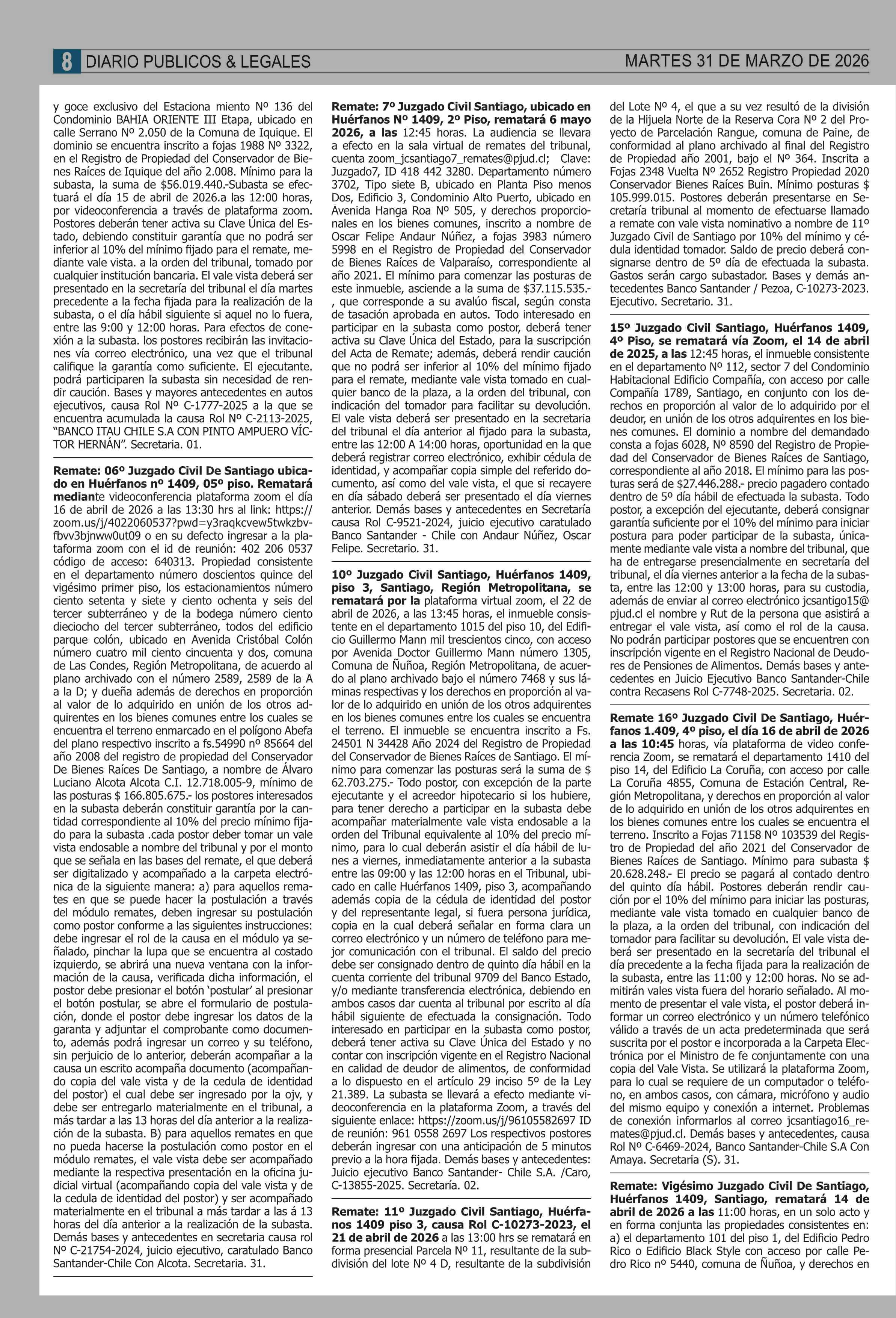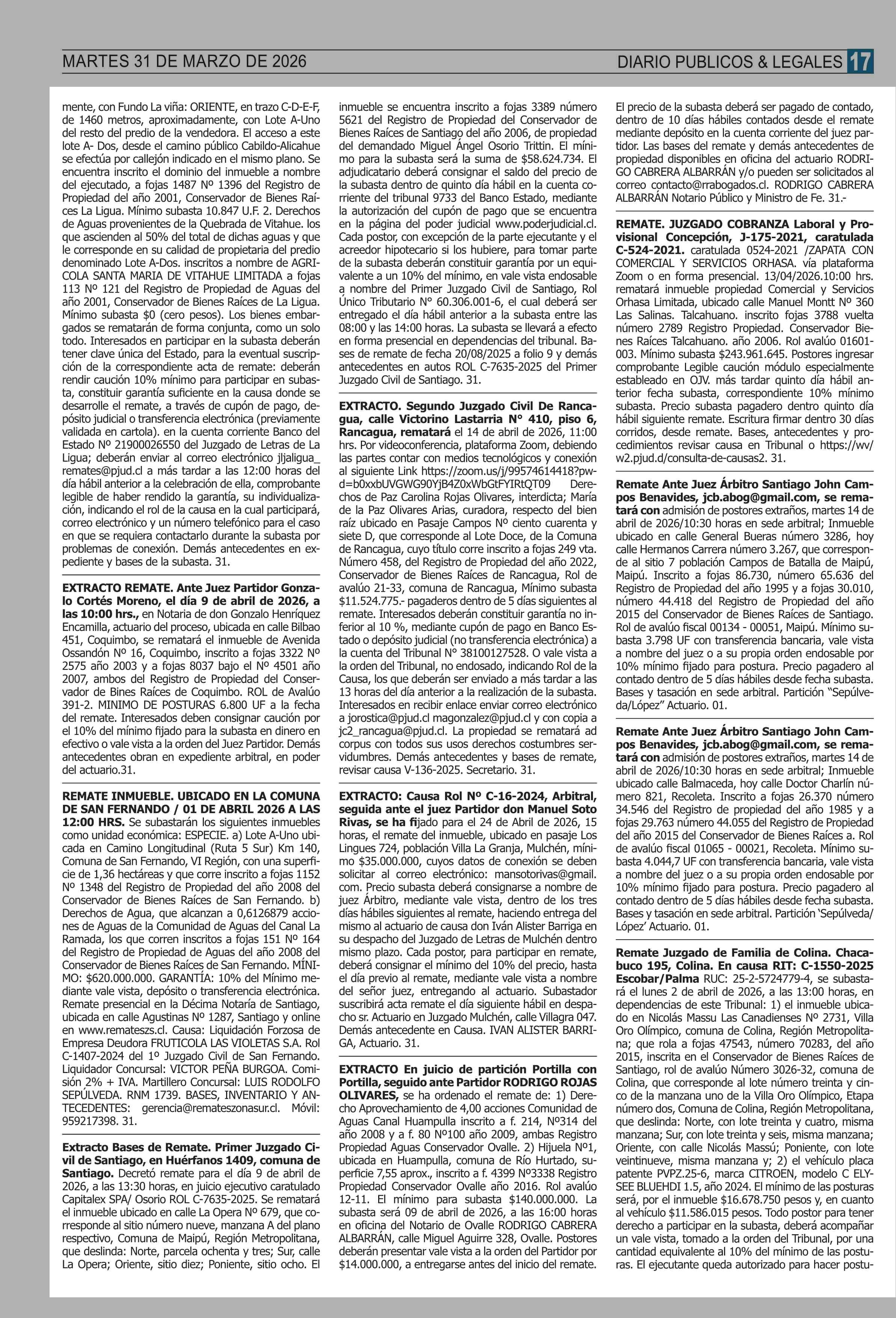 | Fecha: | 31-03-2026 | Sector: | Remates | Región: | Región Metropolitana de Santiago |