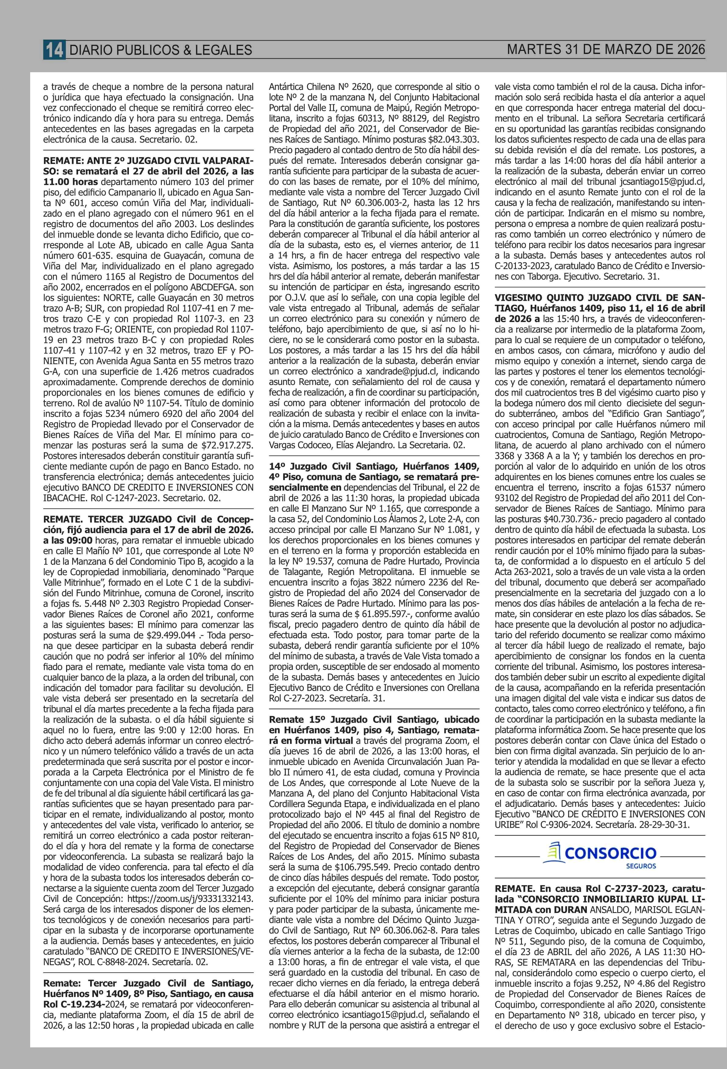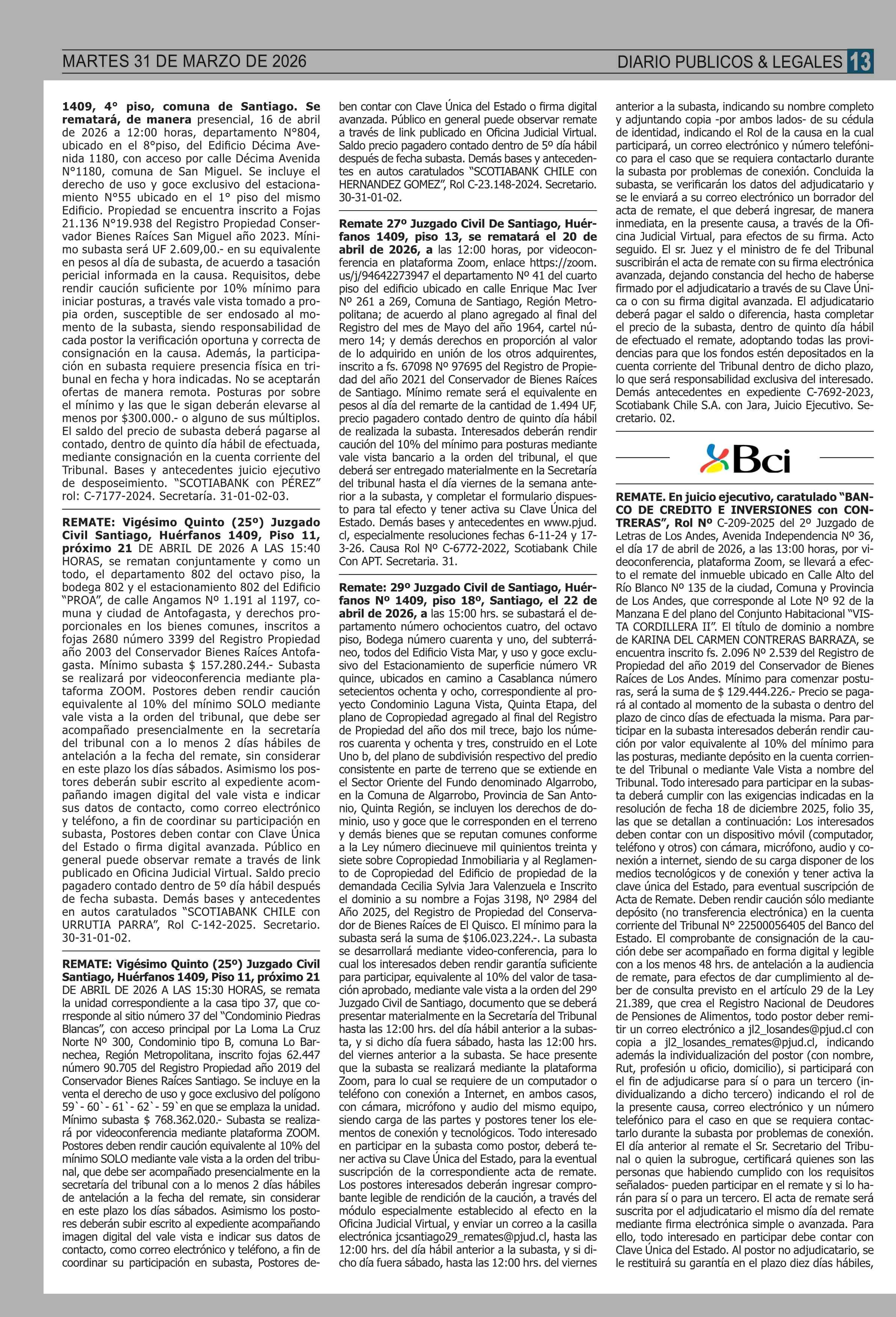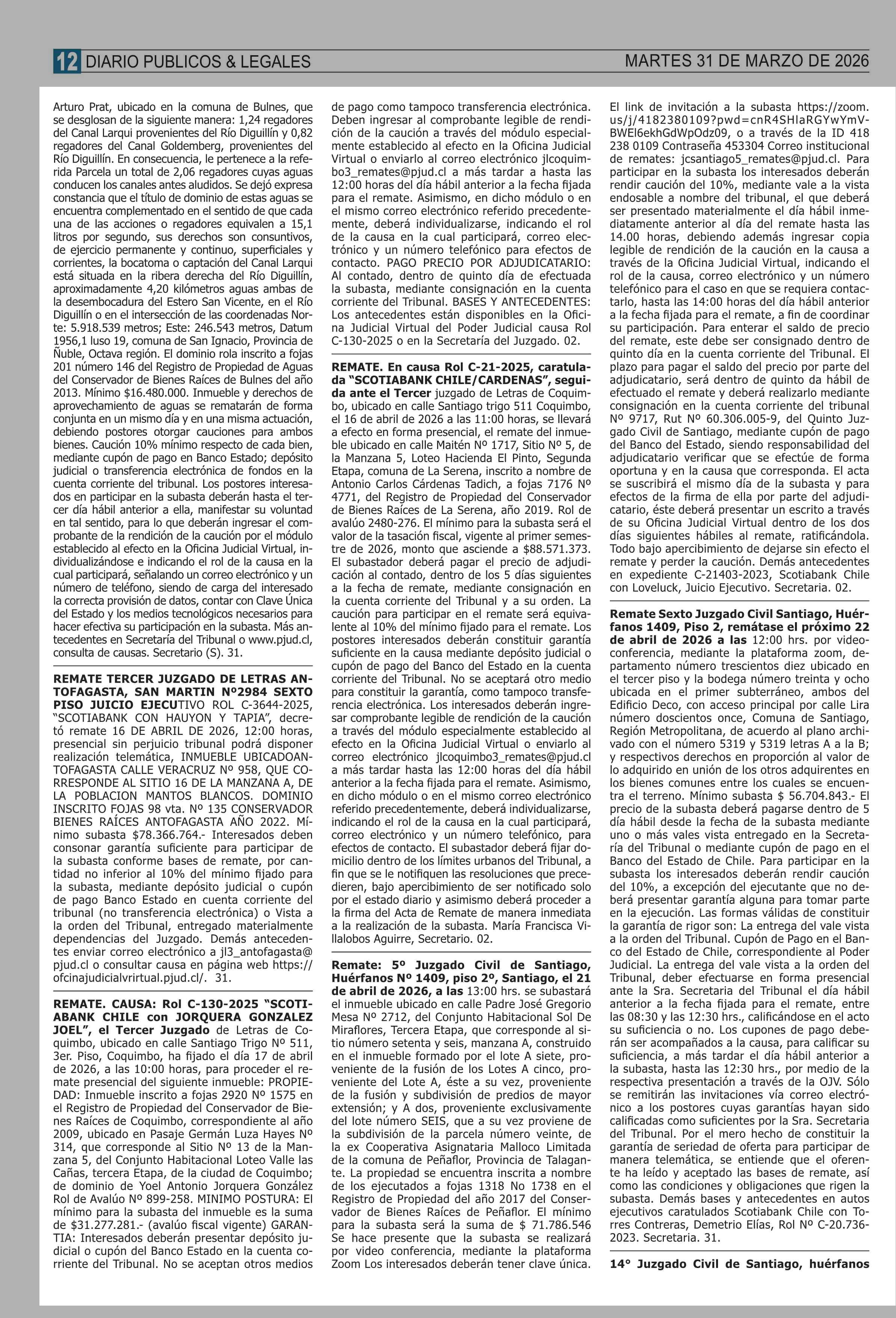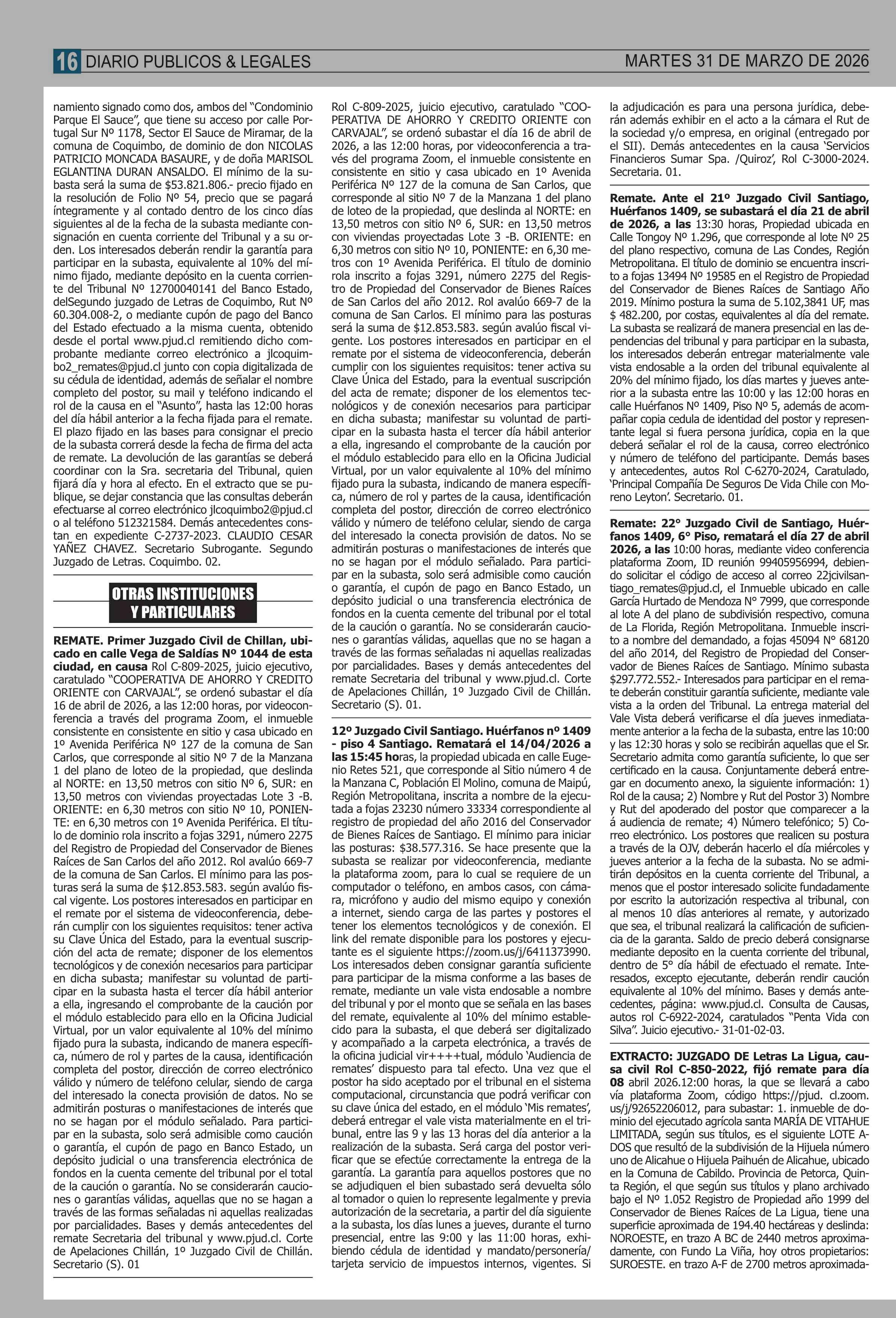| Fecha: | 31-03-2026 | Sector: | Remates | Región: | Región Metropolitana de Santiago |