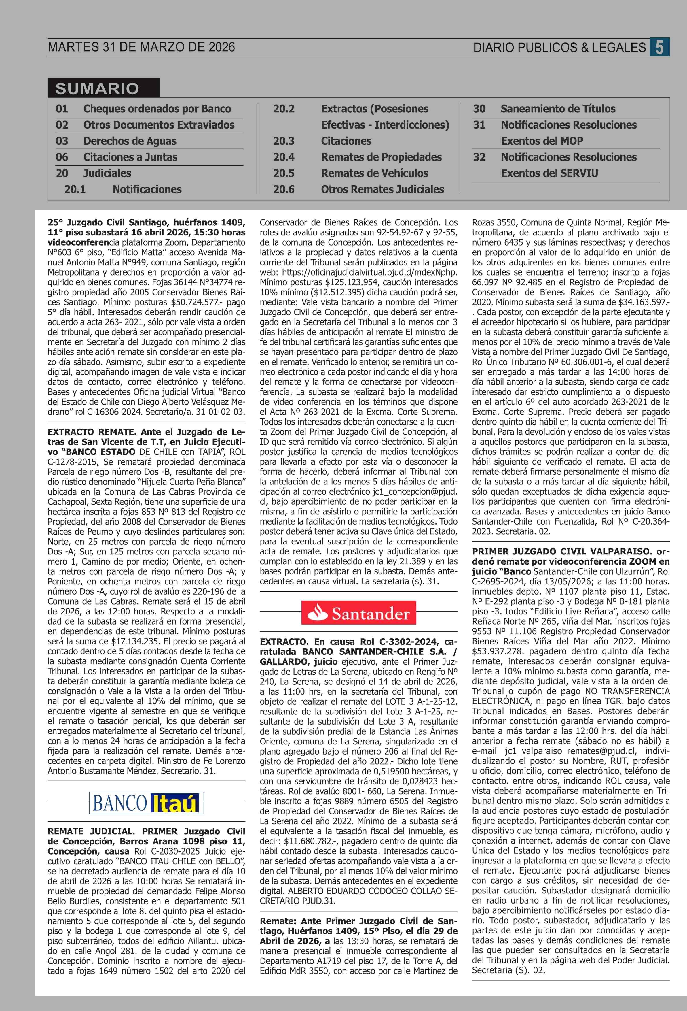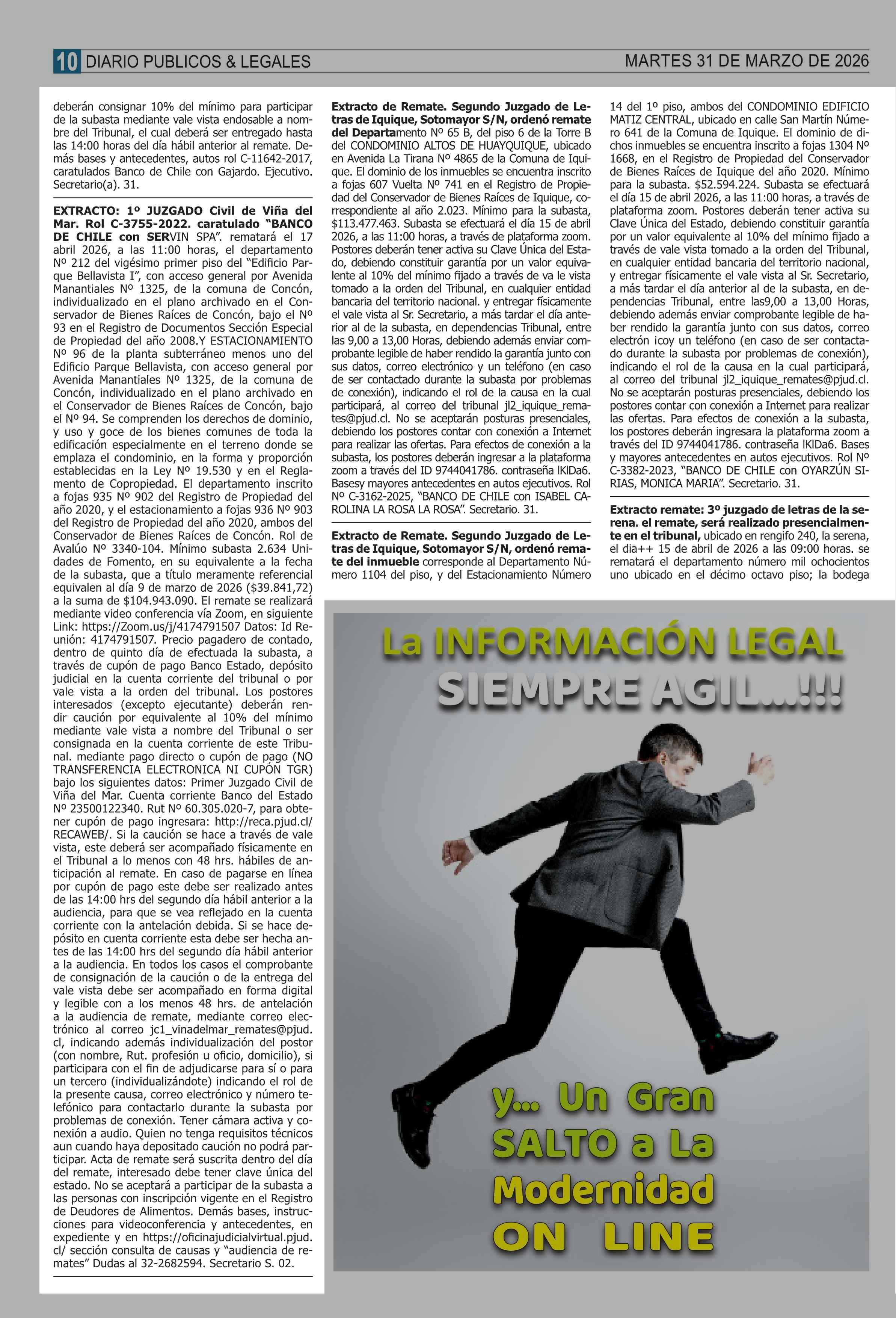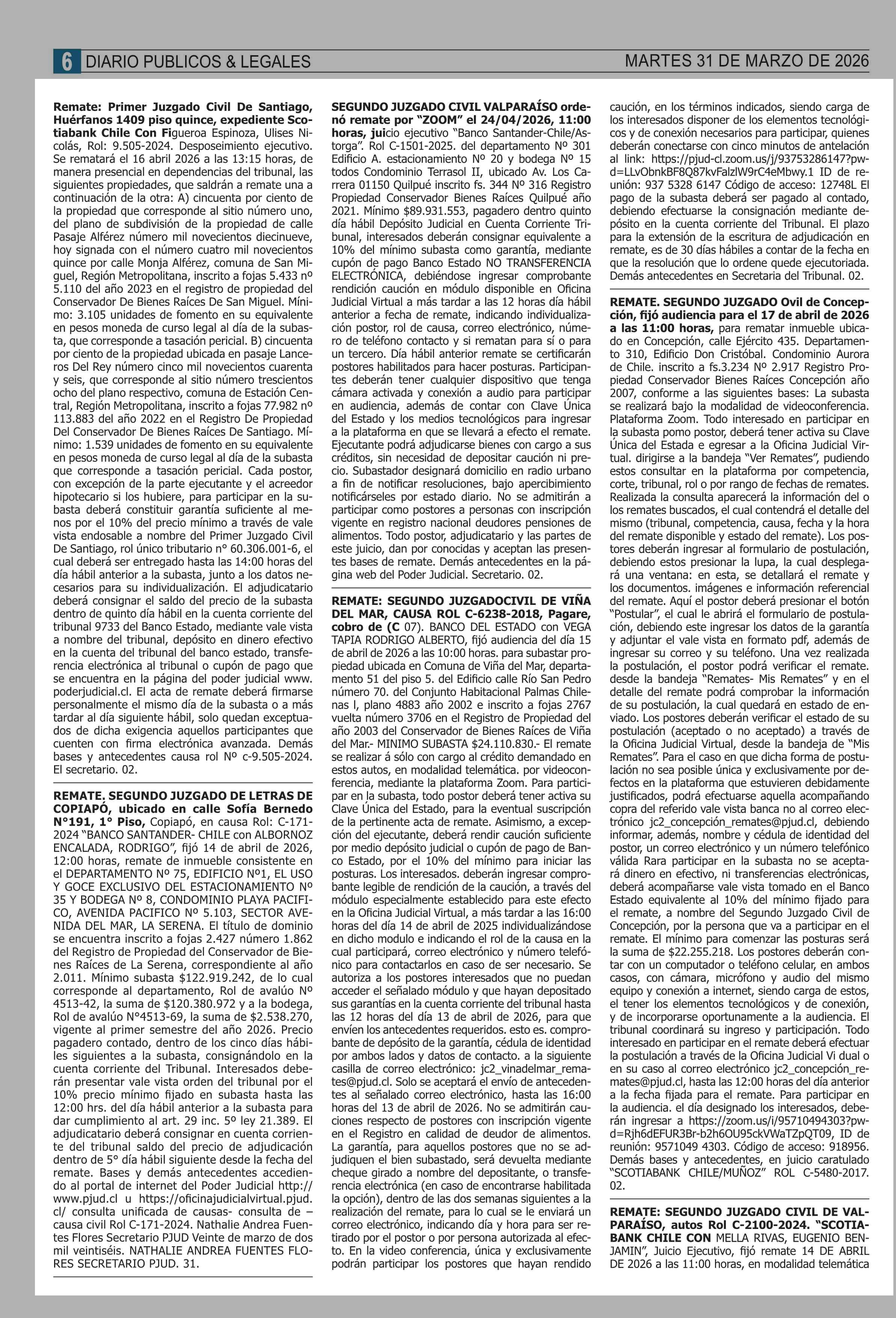 REMATES: COMPENDIO REMATES de PROPIEDADES (NACIONAL 31-03-2026 P&L Públicos y Legales |