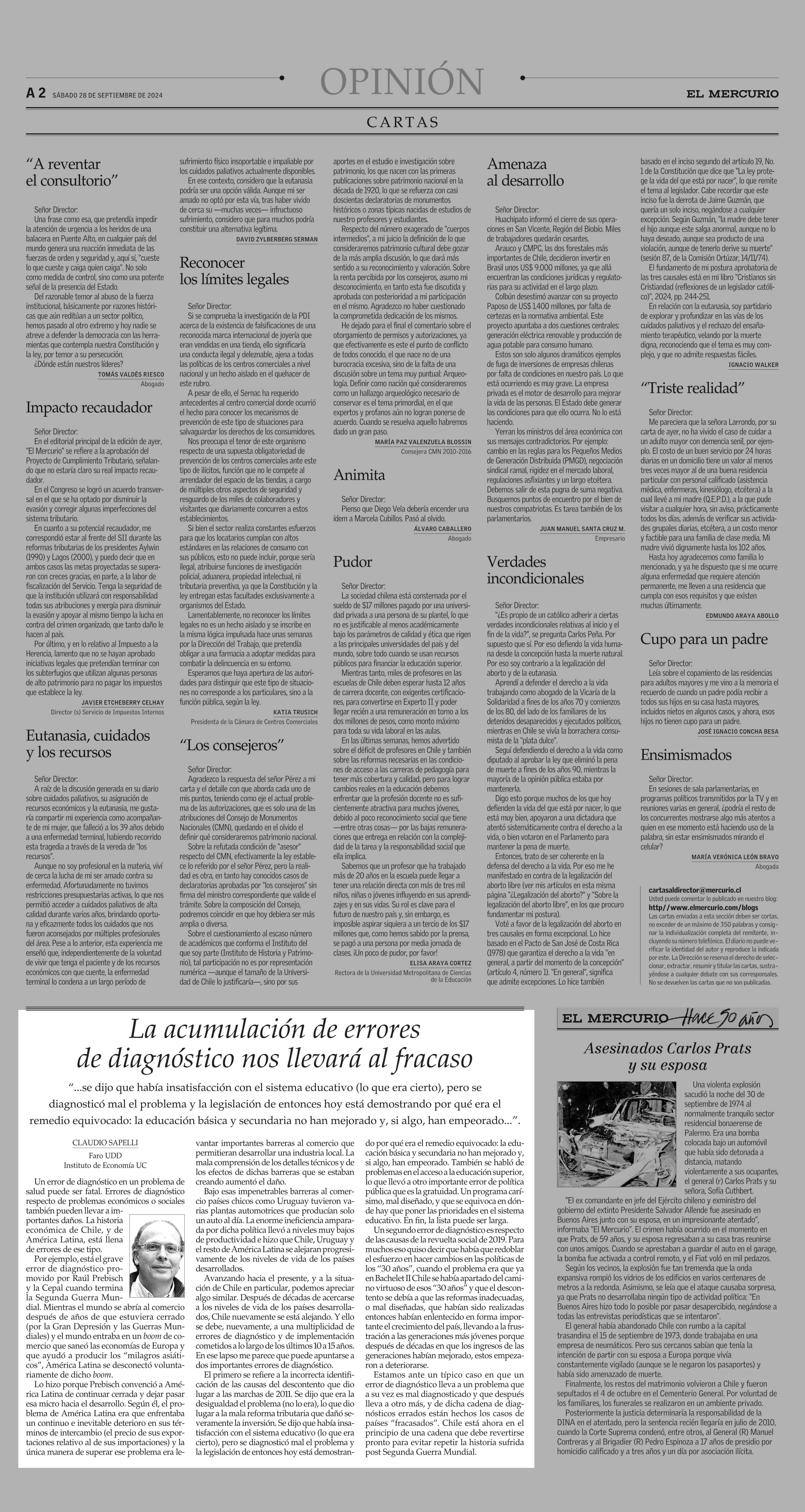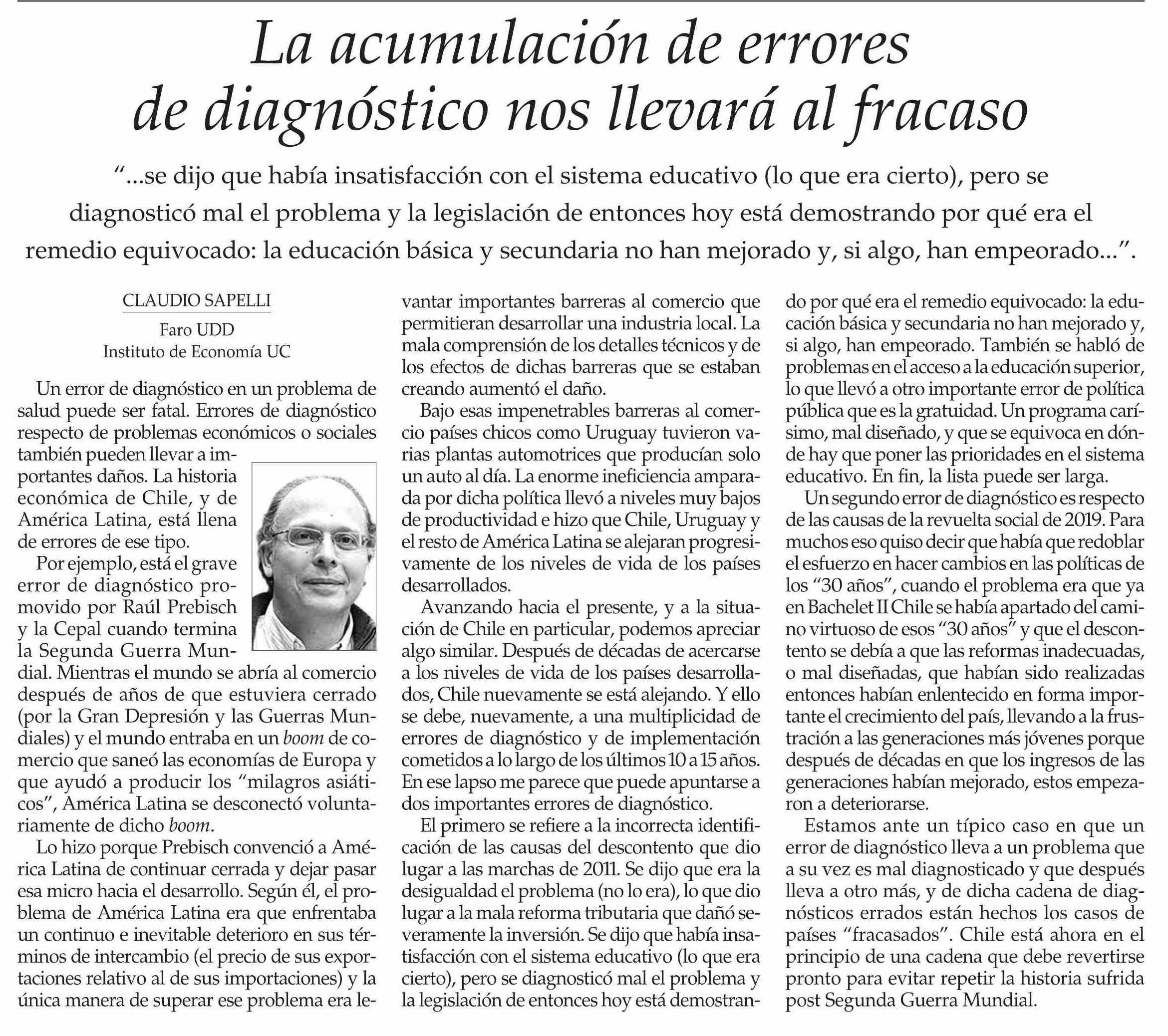 La acumulación de errores de diagnóstico nos llevará al fracaso 28-09-2024 El Mercurio |