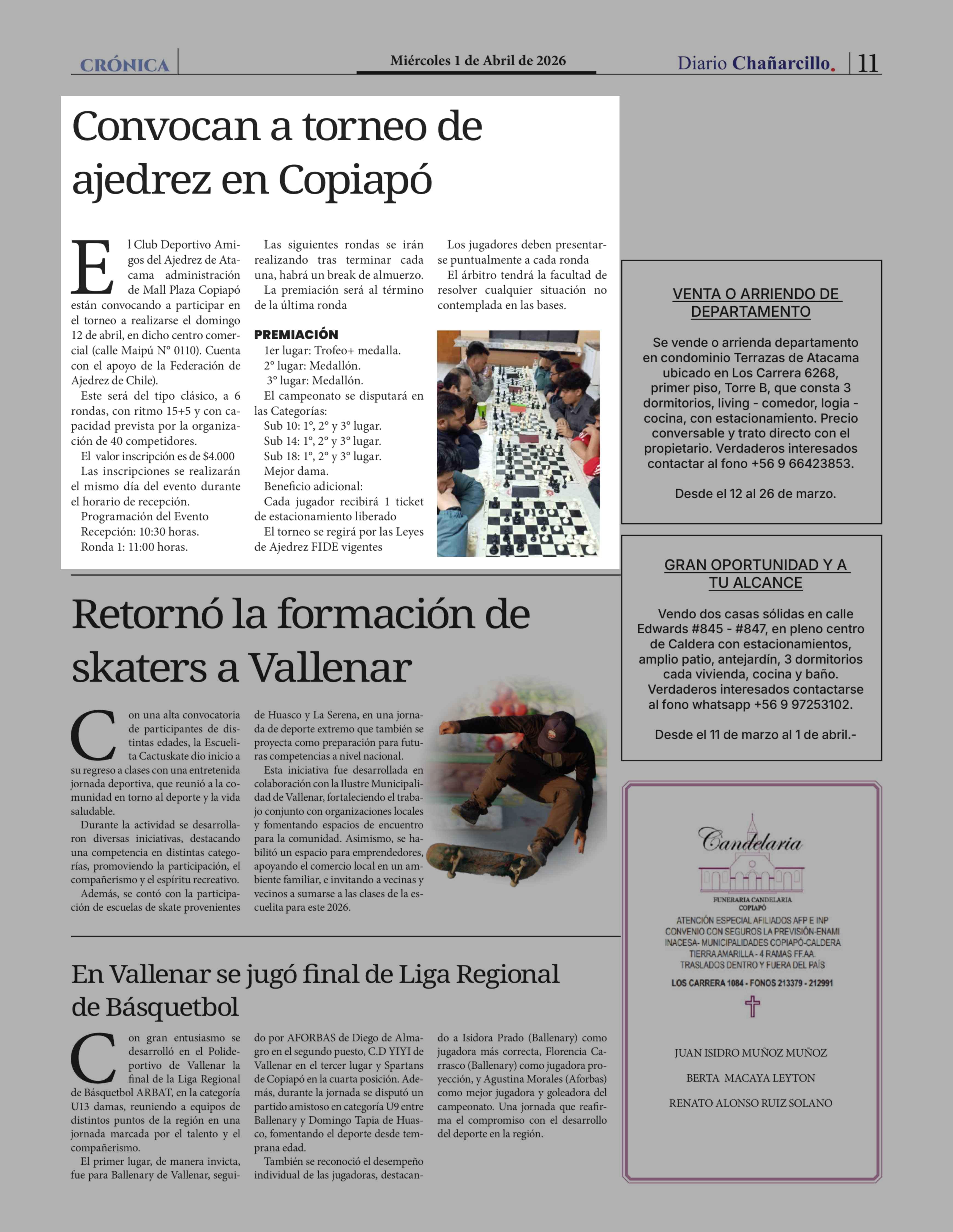 Convocan a torneo de ajedrez en Copiapó 01-04-2026 Diario Chañarcillo |