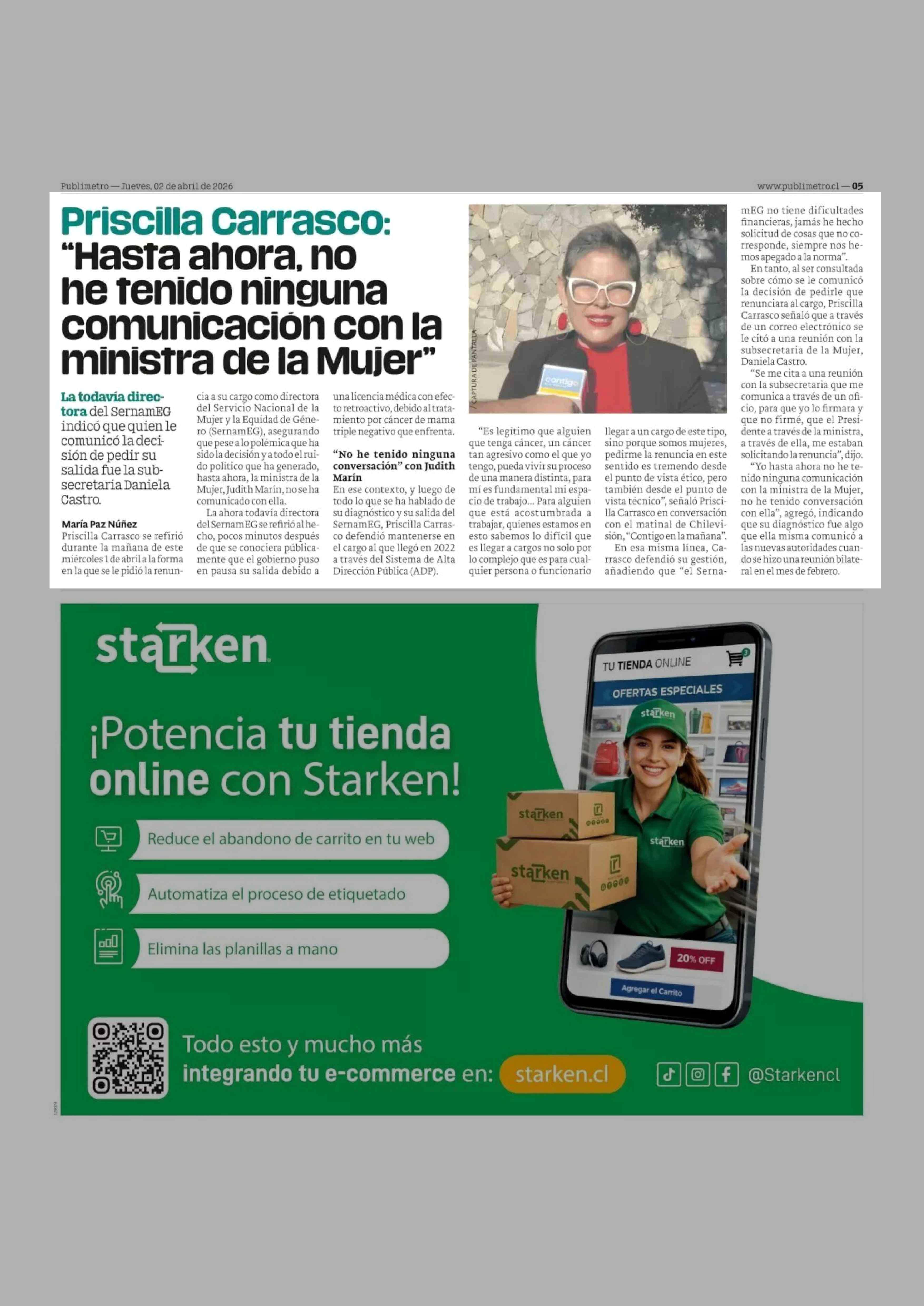 Priscilla Carrasco: "Hasta ahora, no he tenido ninguna comunicación con la ministra de la Mujer" 02-04-2026 Publimetro |