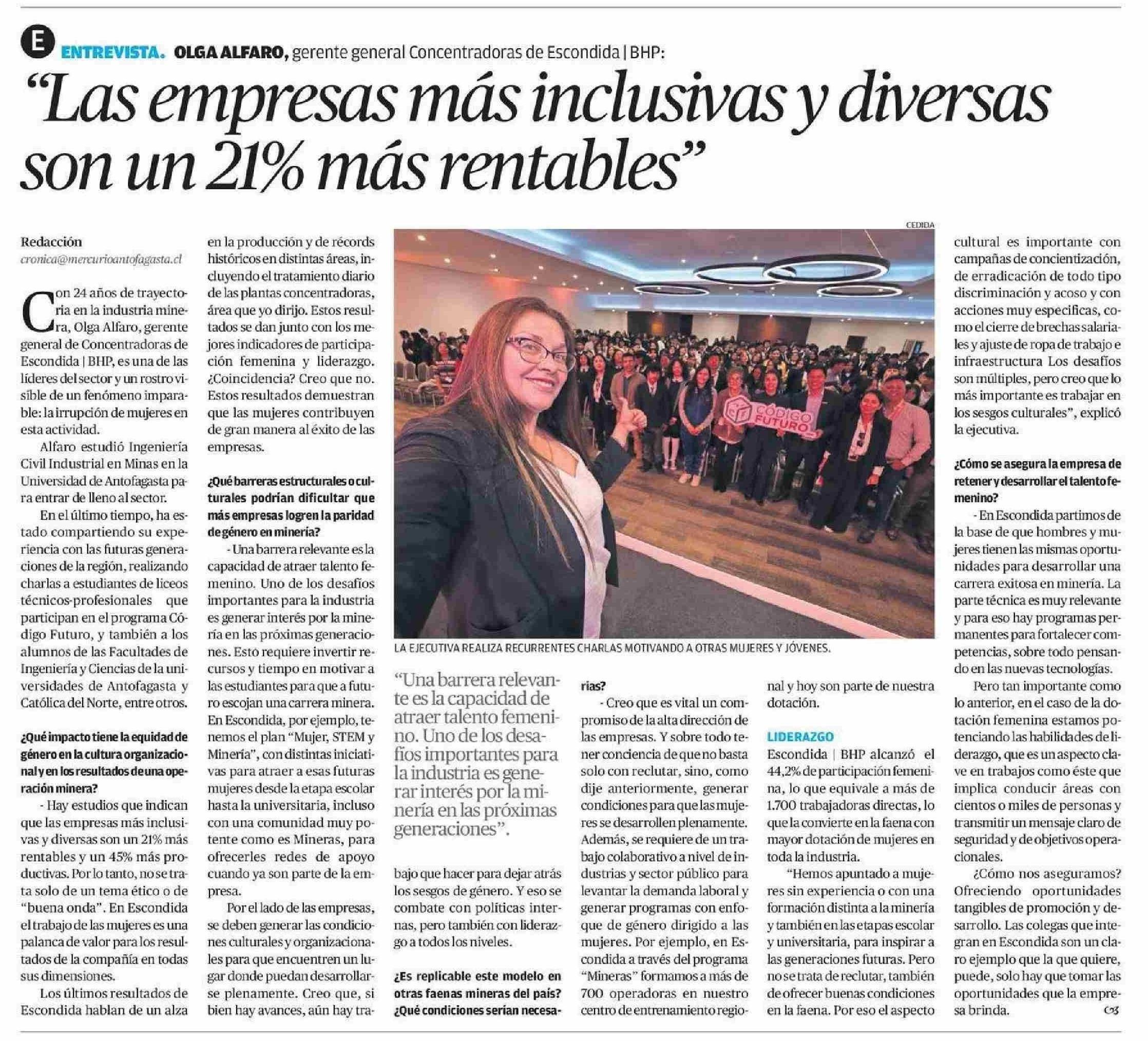 "Las empresas más inclusivas y diversas son un 21% más rentables" 22-06-2025 El Mercurio de Antofagasta |
